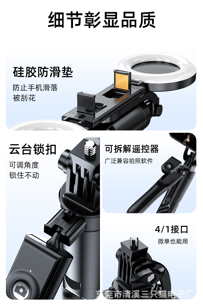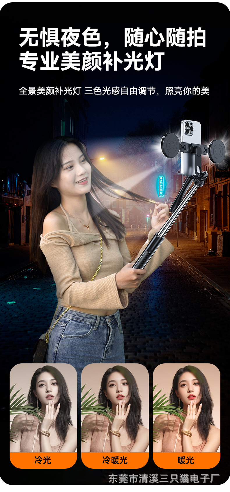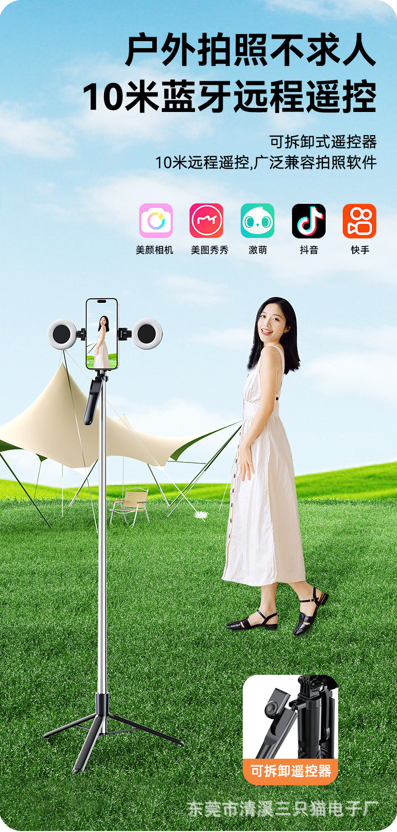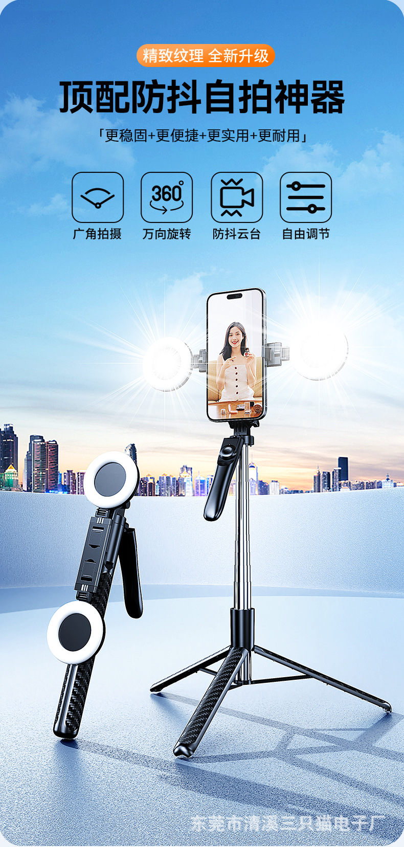 휴대 전화 블루투스 셀카 스틱 흔들림 방지 접이식 휴대용 삼각대 빛 충전 빛 휴대 전화 브래킷 바닥 카메라 유물