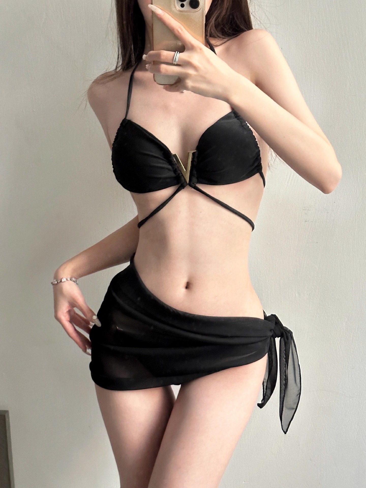수영복 여성의 순수한 욕망 V 버클 섹시 유럽과 미국의 블랙 스플릿 비키니 3 피스 세트 휴가 수영복스토어 가기