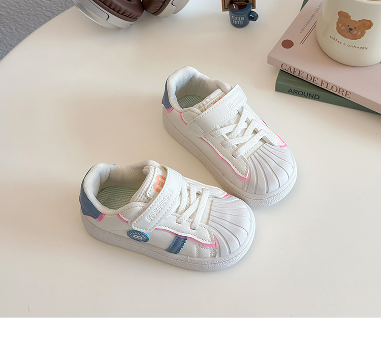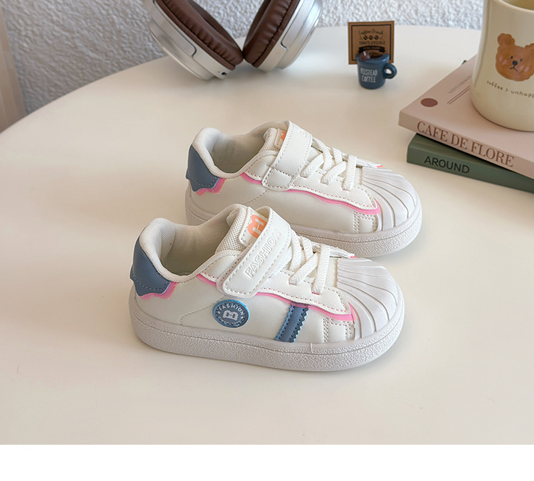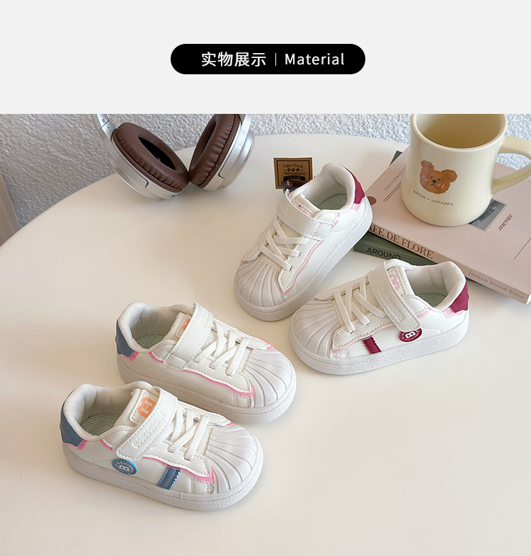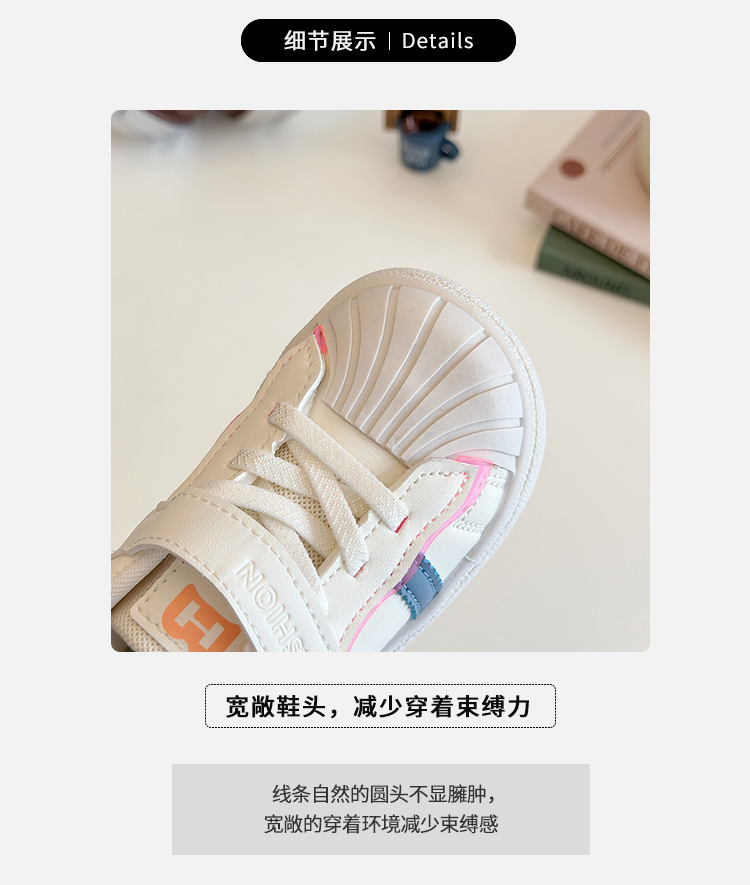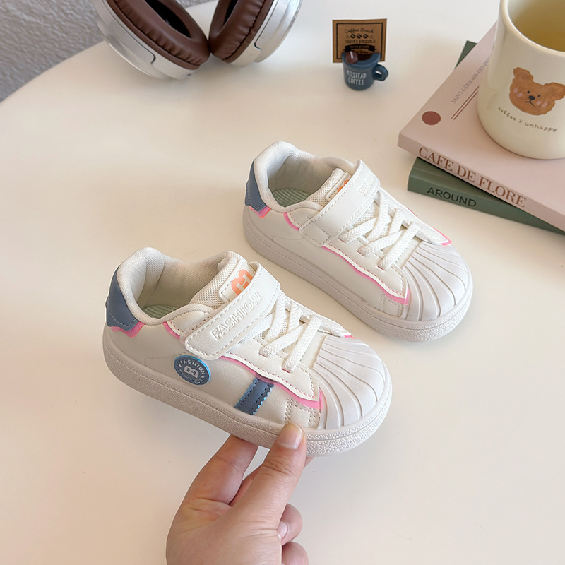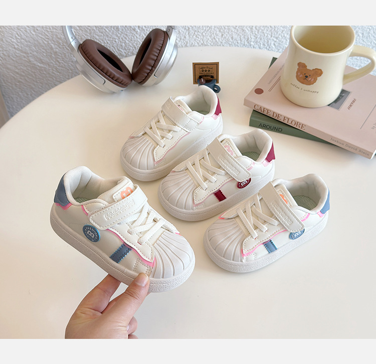 아기의 부드러운 유아 신발 2025 봄 새로운 스타일 보드 신발 소녀 부드러운 바닥 충돌 방지 쉘 머리 흰색 신발 남성 신발스토어 가기