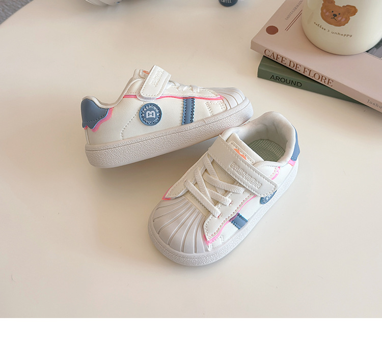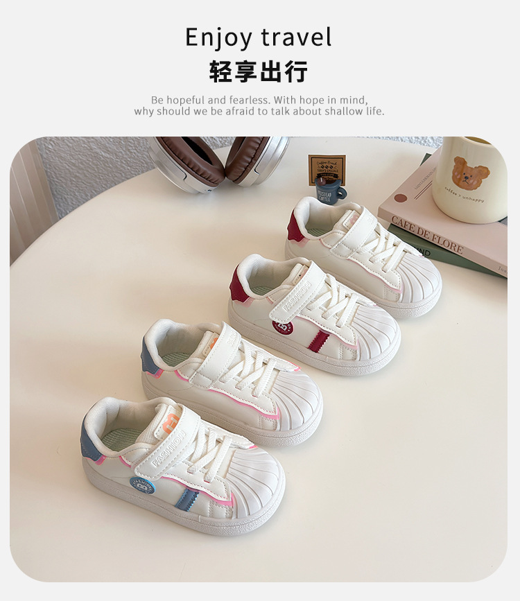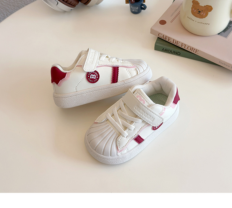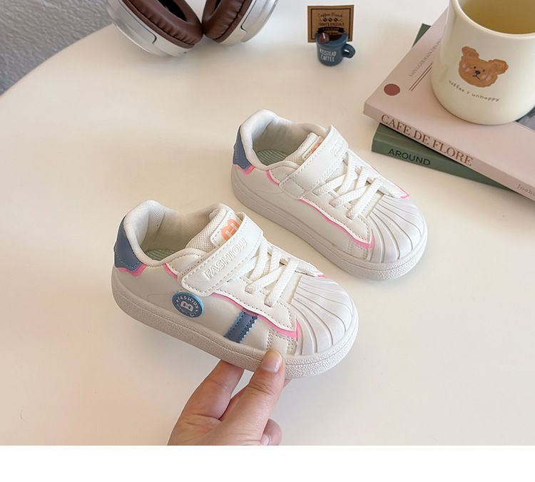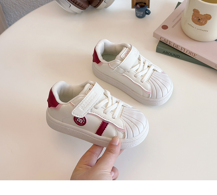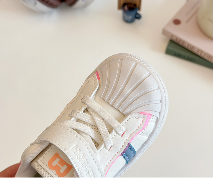 아기의 부드러운 유아 신발 2025 봄 새로운 스타일 보드 신발 소녀 부드러운 바닥 충돌 방지 쉘 머리 흰색 신발 남성 신발스토어 가기