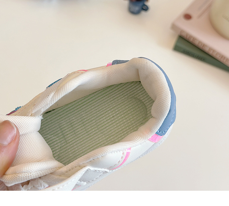 아기의 부드러운 유아 신발 2025 봄 새로운 스타일 보드 신발 소녀 부드러운 바닥 충돌 방지 쉘 머리 흰색 신발 남성 신발