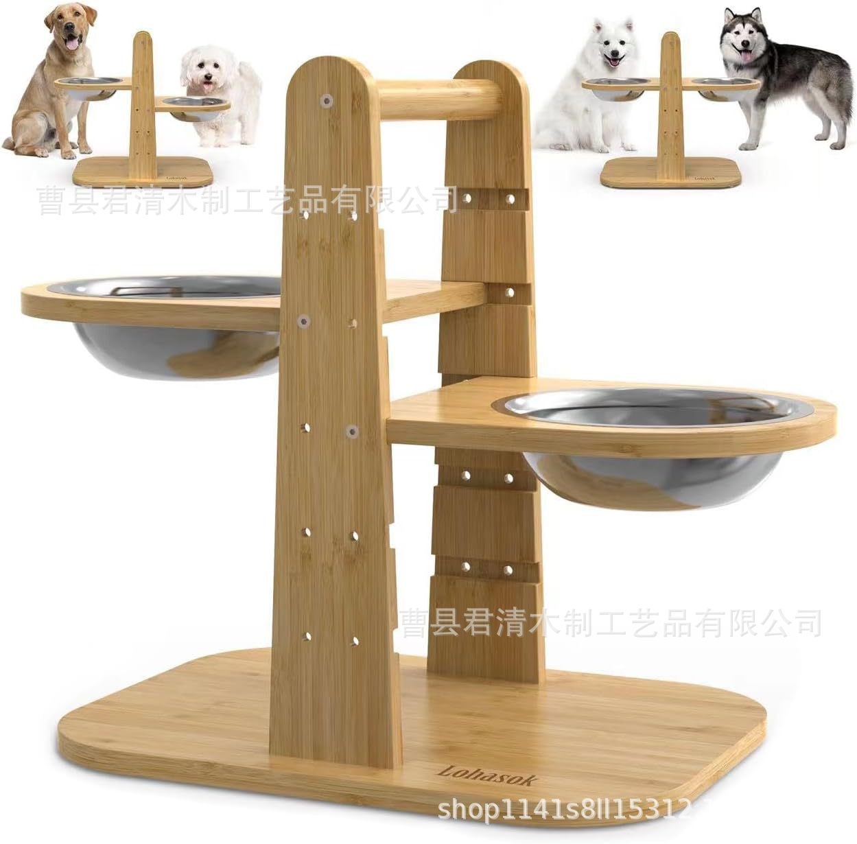 나무 애완 동물 피더 더블 레이어 개 고양이 애완 동물 그릇 더블 그릇 애완 동물 보호 자궁 경부 척추 고양이 그릇 애완 동물 그릇 랙스토어 가기