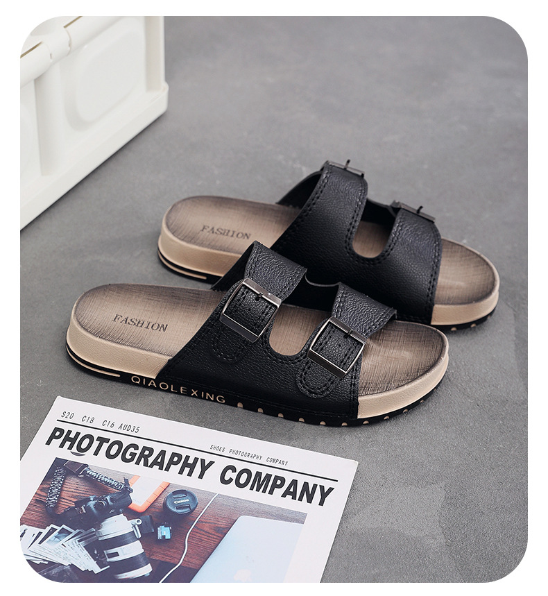 남자 여름 새로운 도착 두꺼운 유일한 미끄럼 방지 더블 브레스트 링 소프트 솔 샌들 및 슬리퍼 학생용 트렌디 비치 슈즈 남성용스토어 가기