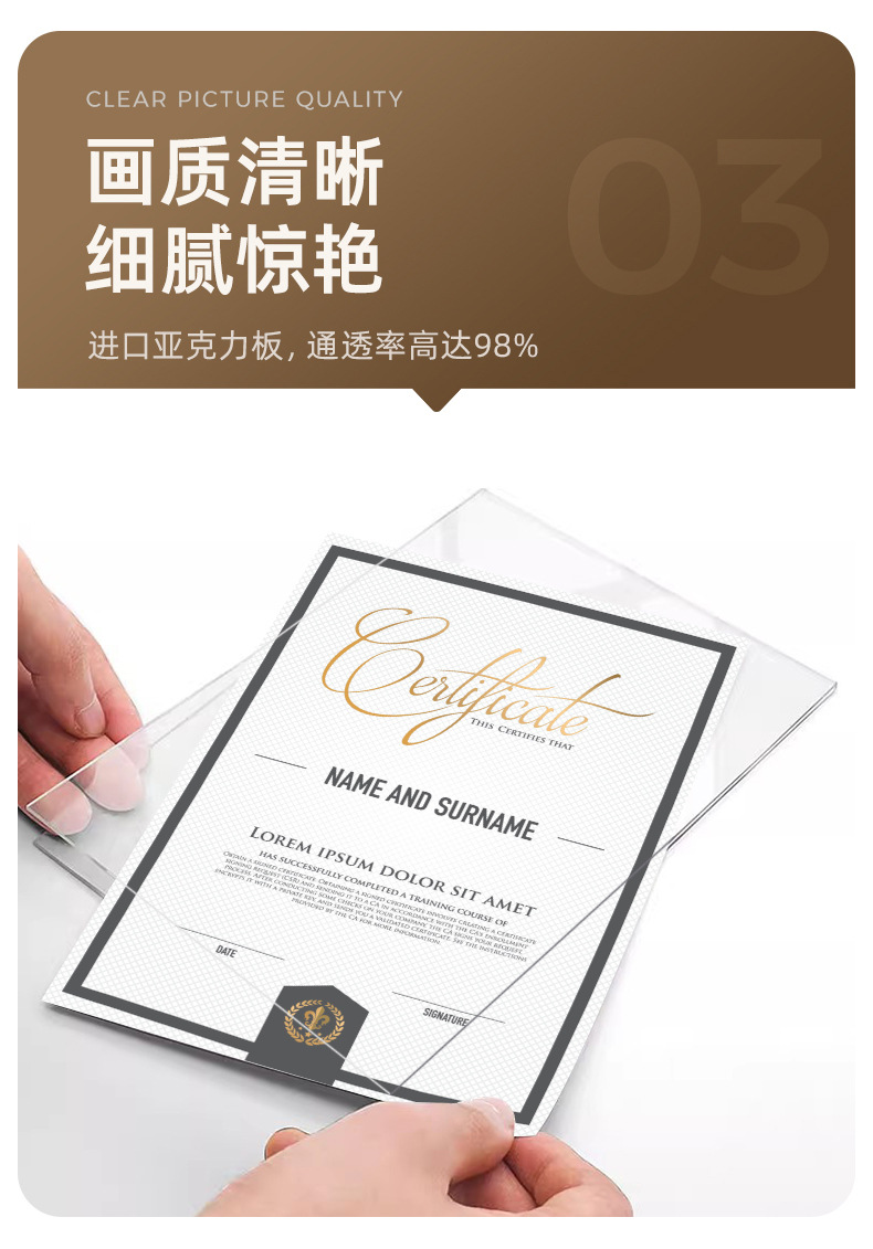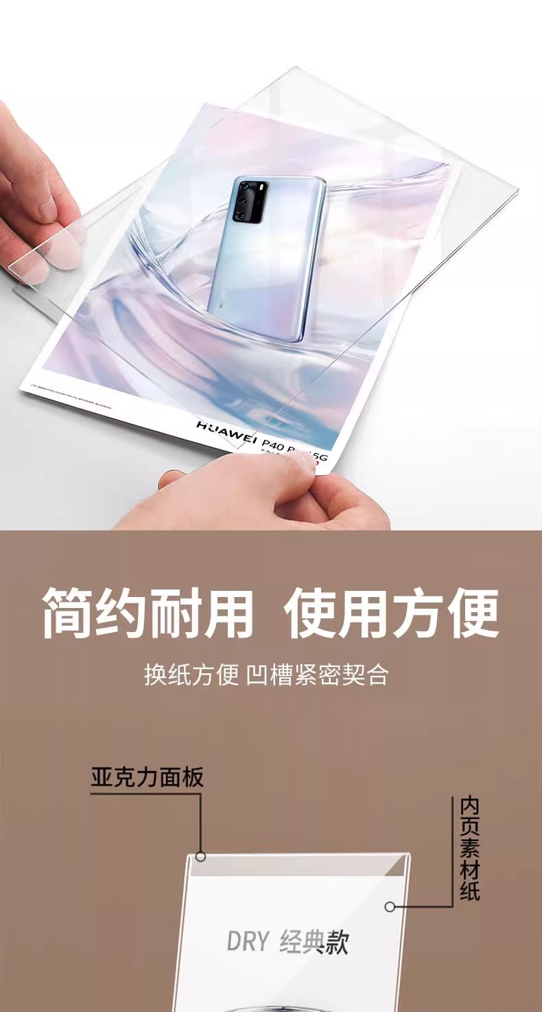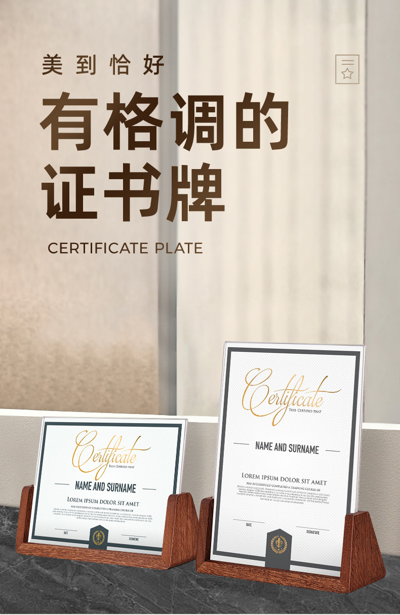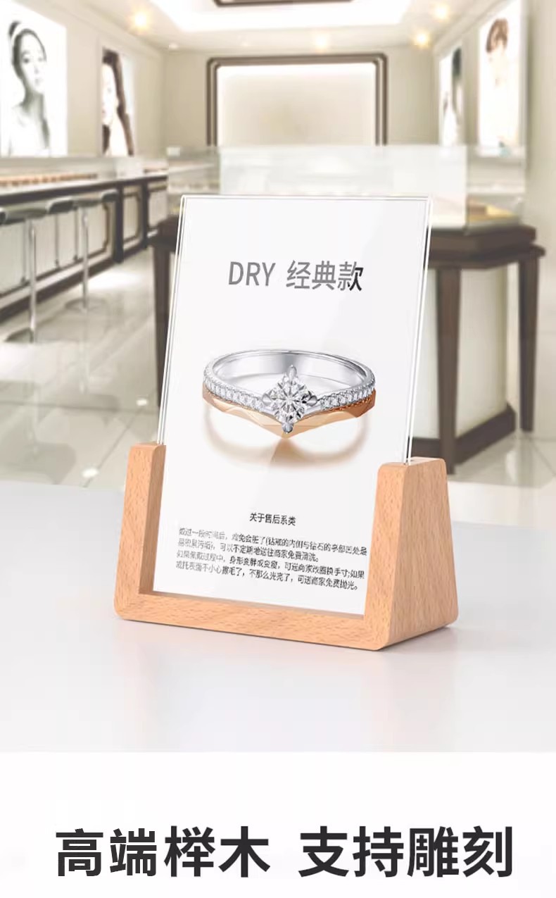 너도밤 나무 U 자형 데스크탑 A4 단계 프레임 물 브랜드 명예 인증서 아크릴 디스플레이 브랜드 나무 광고 브랜드스토어 가기