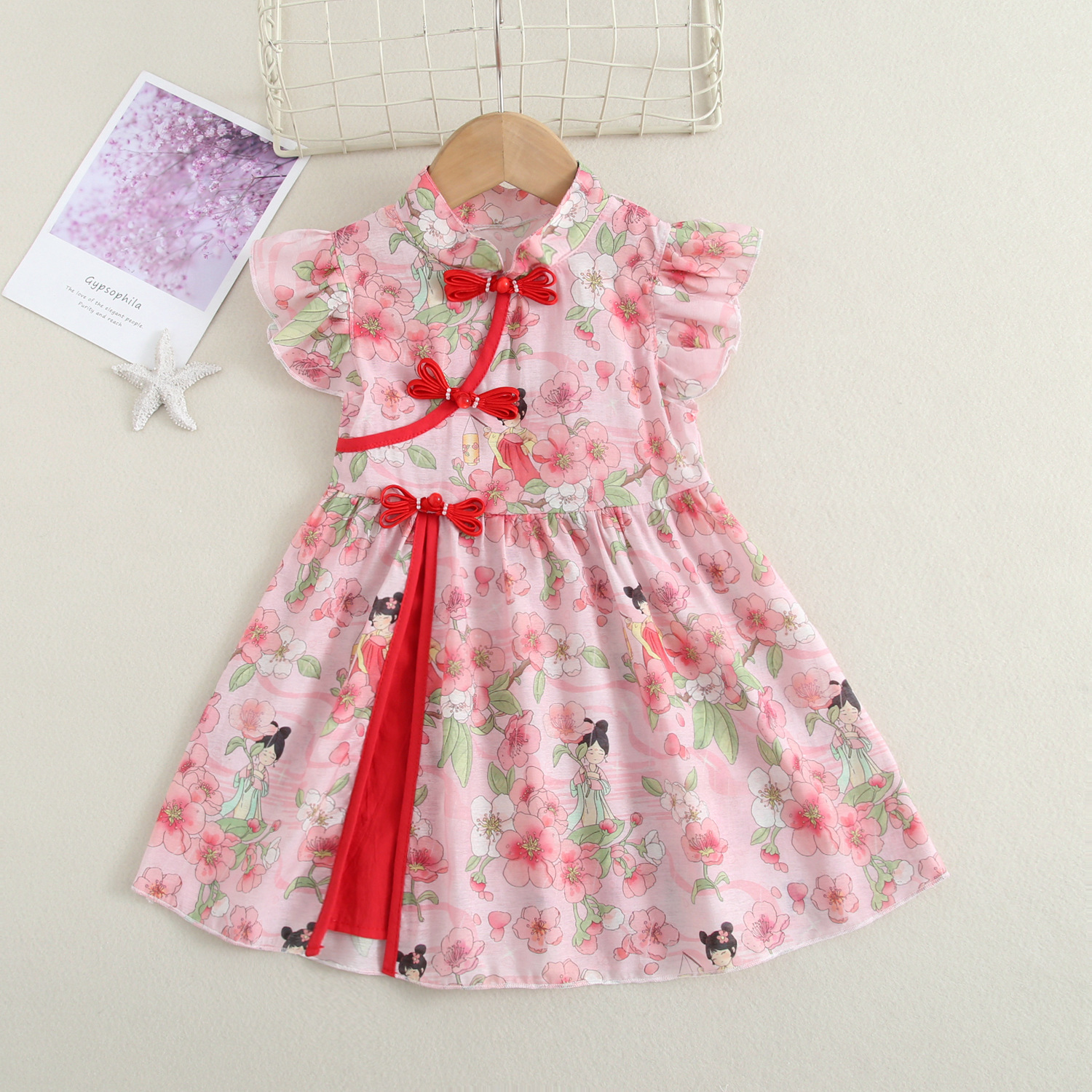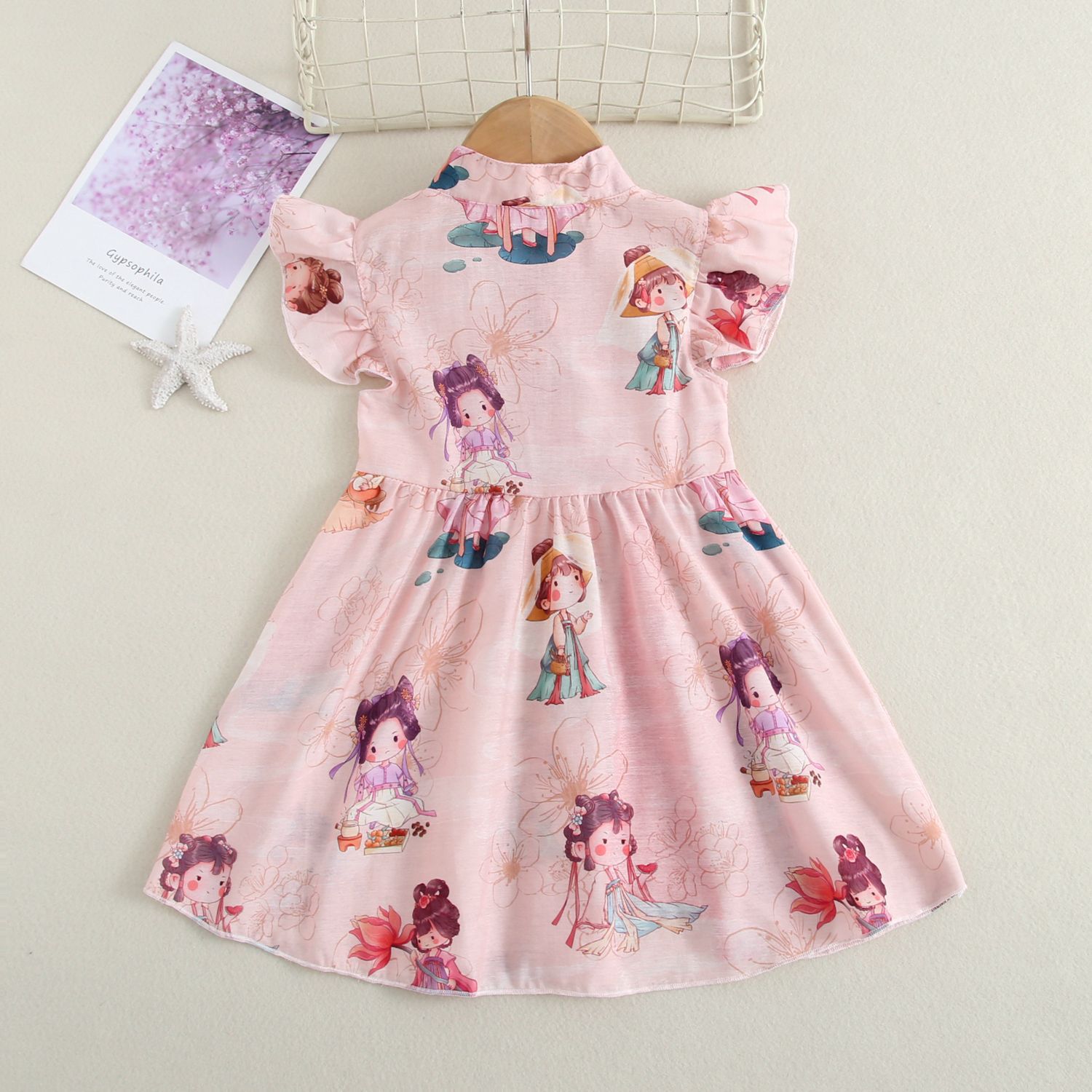 소녀 원피스 2025 년 여름 새 아동복 꽃 만화 공주 원피스 어린이 서양식 비행 소매 청삼 치마스토어 가기