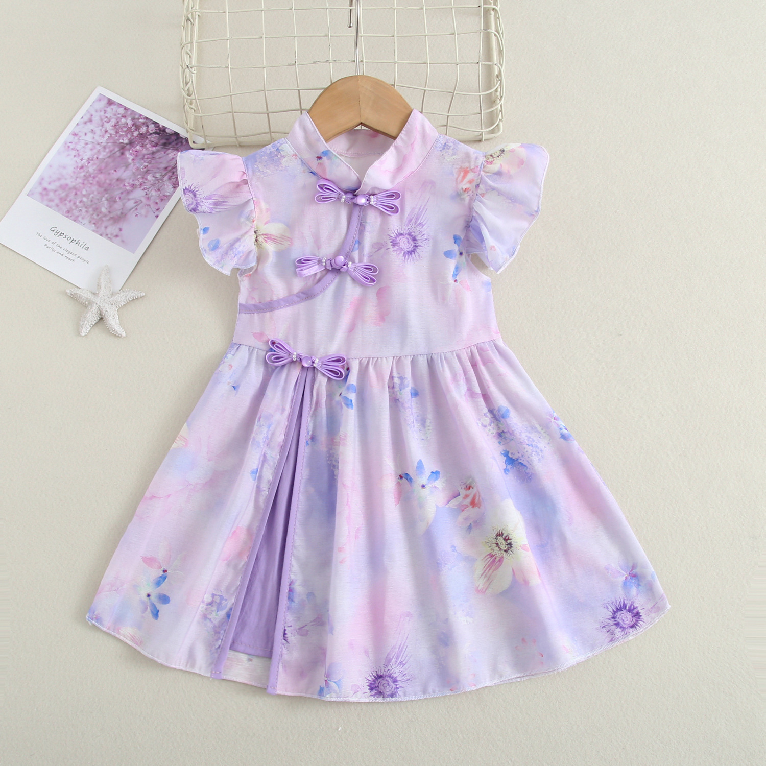 소녀 원피스 2025 년 여름 새 아동복 꽃 만화 공주 원피스 어린이 서양식 비행 소매 청삼 치마