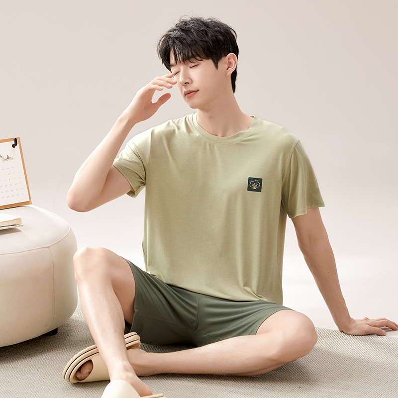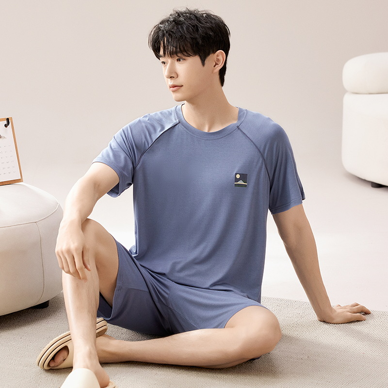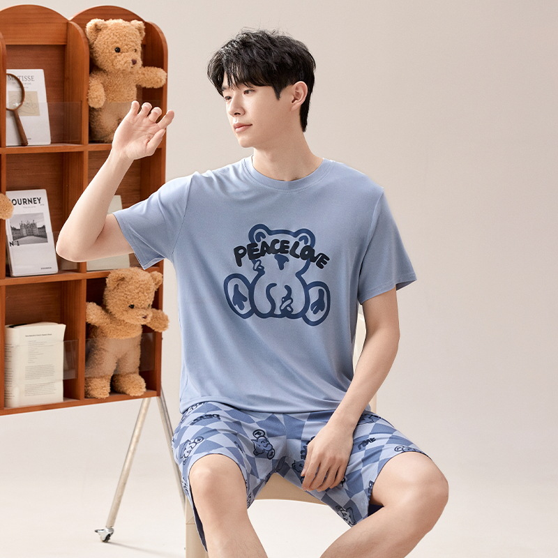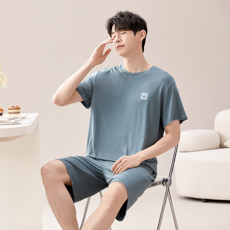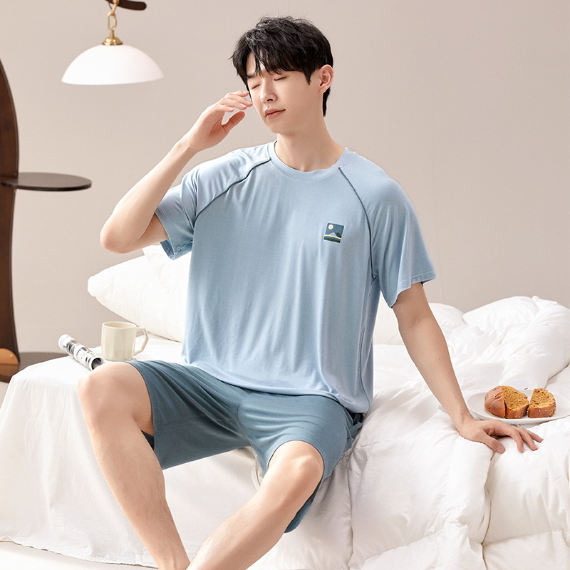 L-4XL 모달 잠옷 남성 여름 반팔 반바지 얇은 여름 플러스 지방 플러스 사이즈 홈웨어 세트스토어 가기