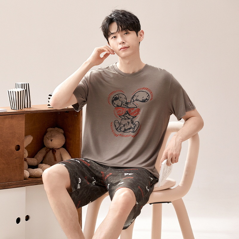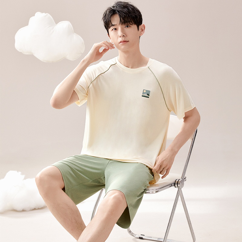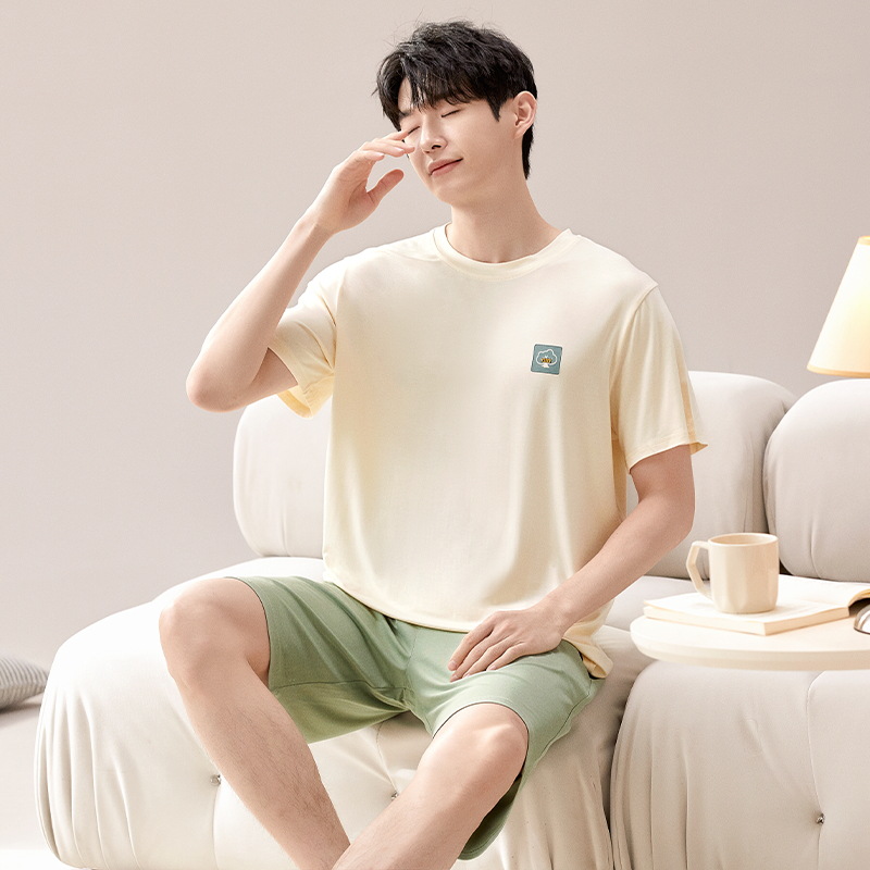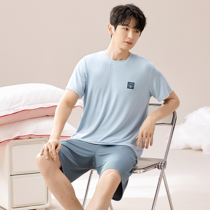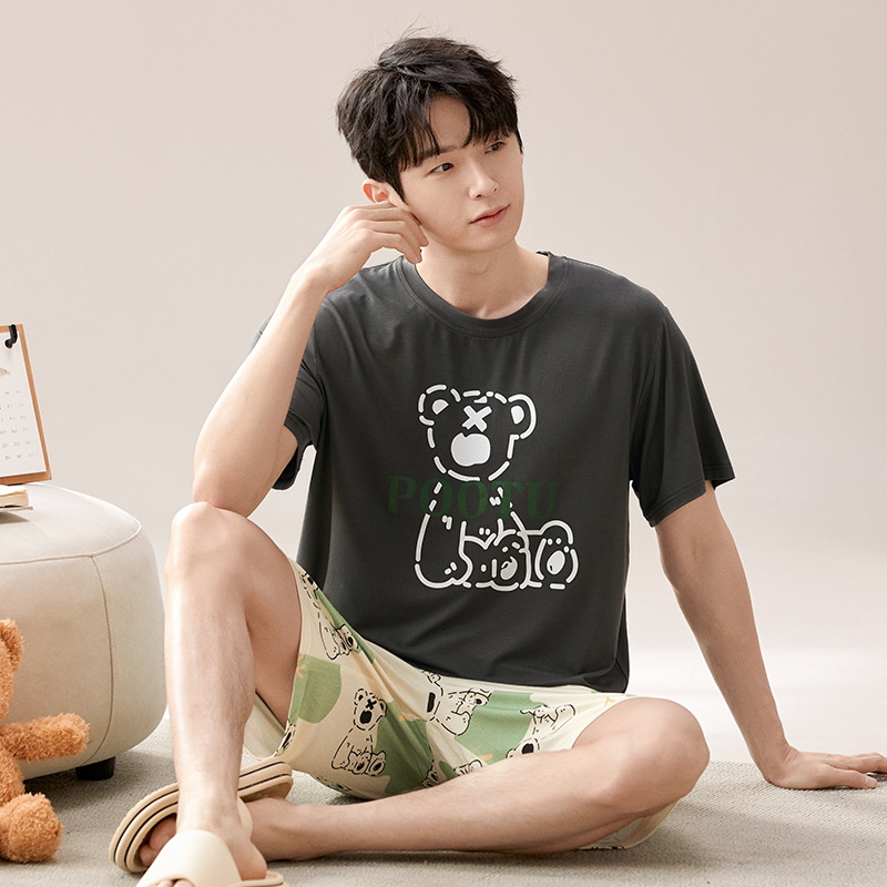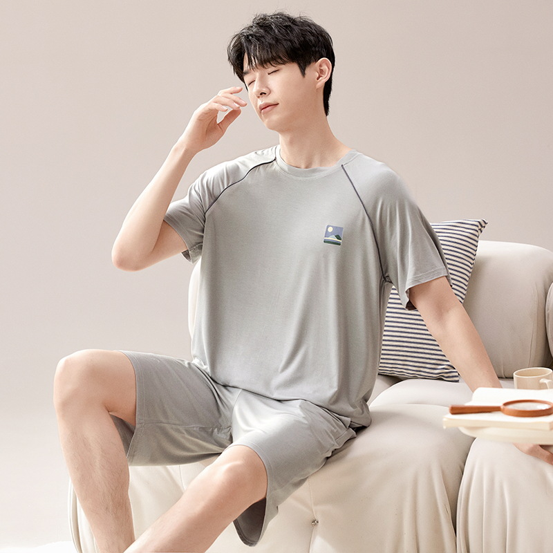 L-4XL 모달 잠옷 남성 여름 반팔 반바지 얇은 여름 플러스 지방 플러스 사이즈 홈웨어 세트스토어 가기