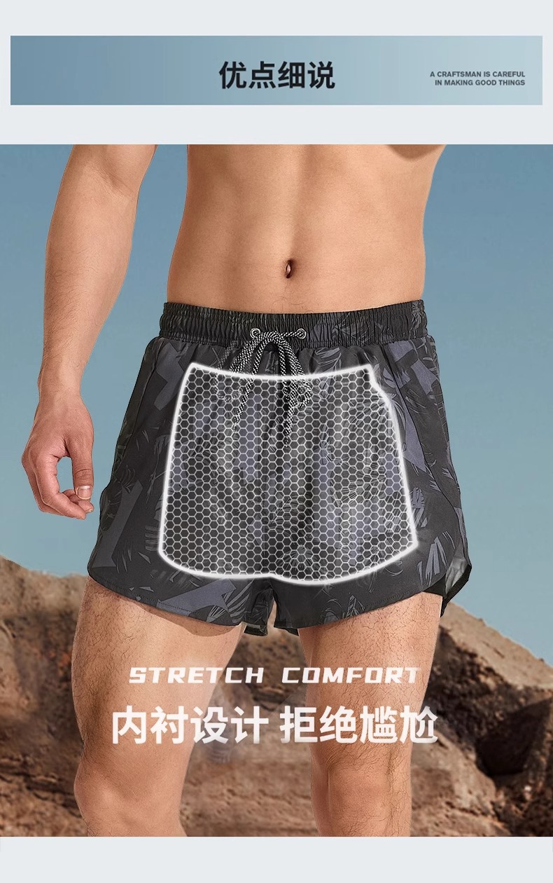 수영 트렁크 남성 안티 당혹감 2025 새로운 빠른 건조 플러스 사이즈 복서 수영복 전문 온천 더블 레이어 수영 트렁크 도매스토어 가기