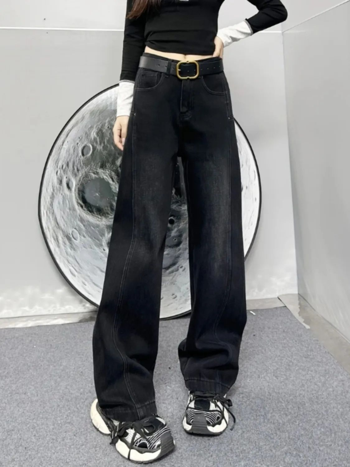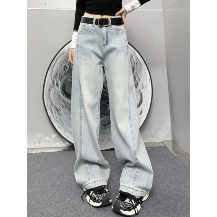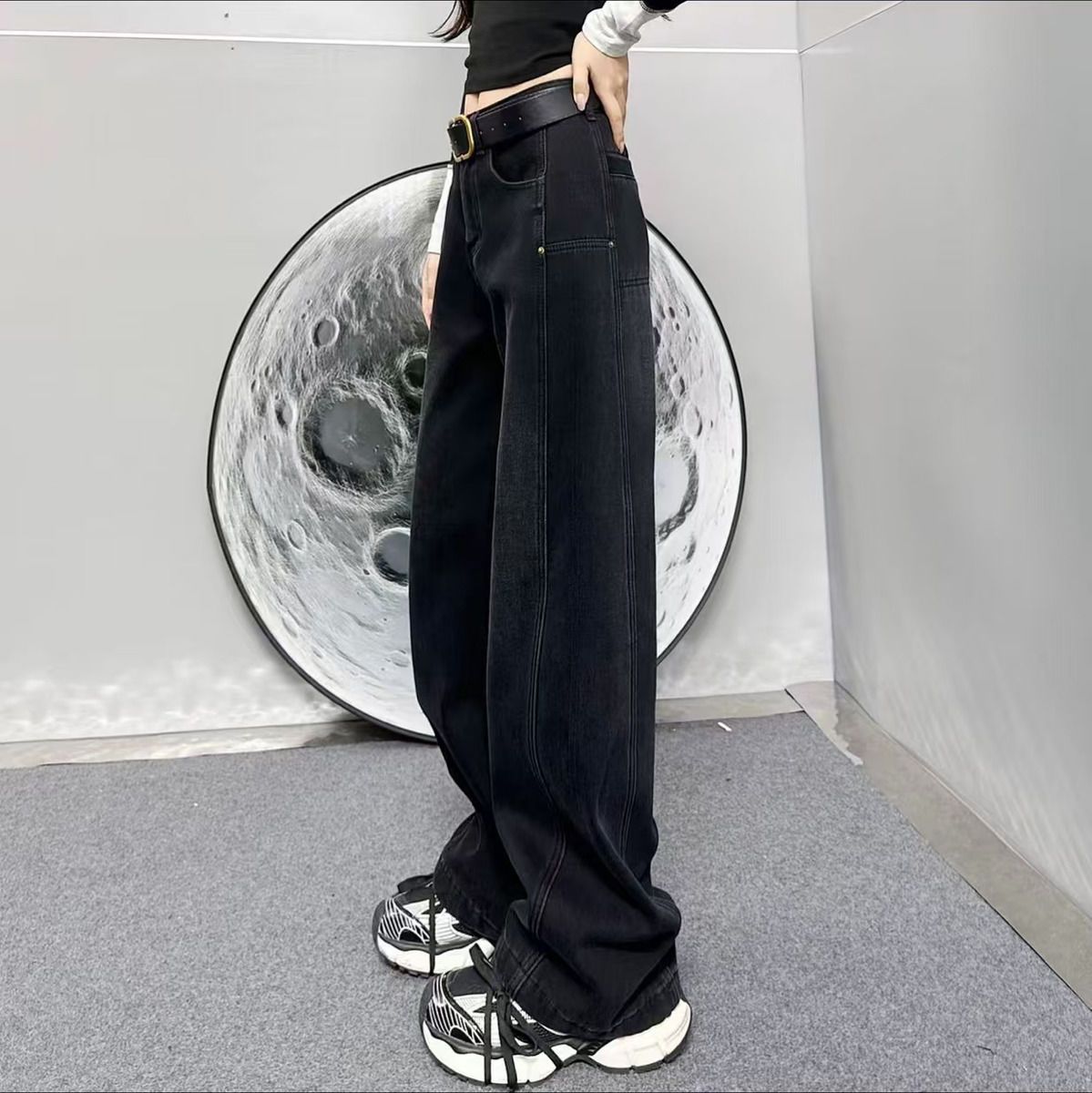 솔리드 컬러 캐주얼 청바지 여성의 2025 년 봄과 여름 새로운 딥 슬림 룩 넓은 다리 바지 느슨한 덤프 청바지스토어 가기