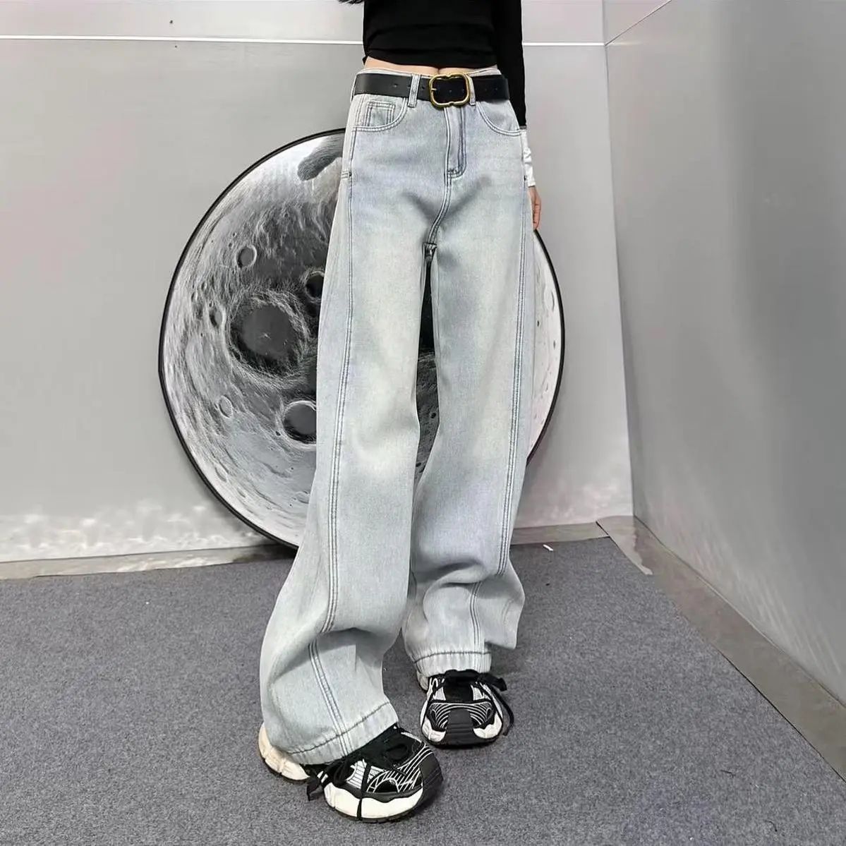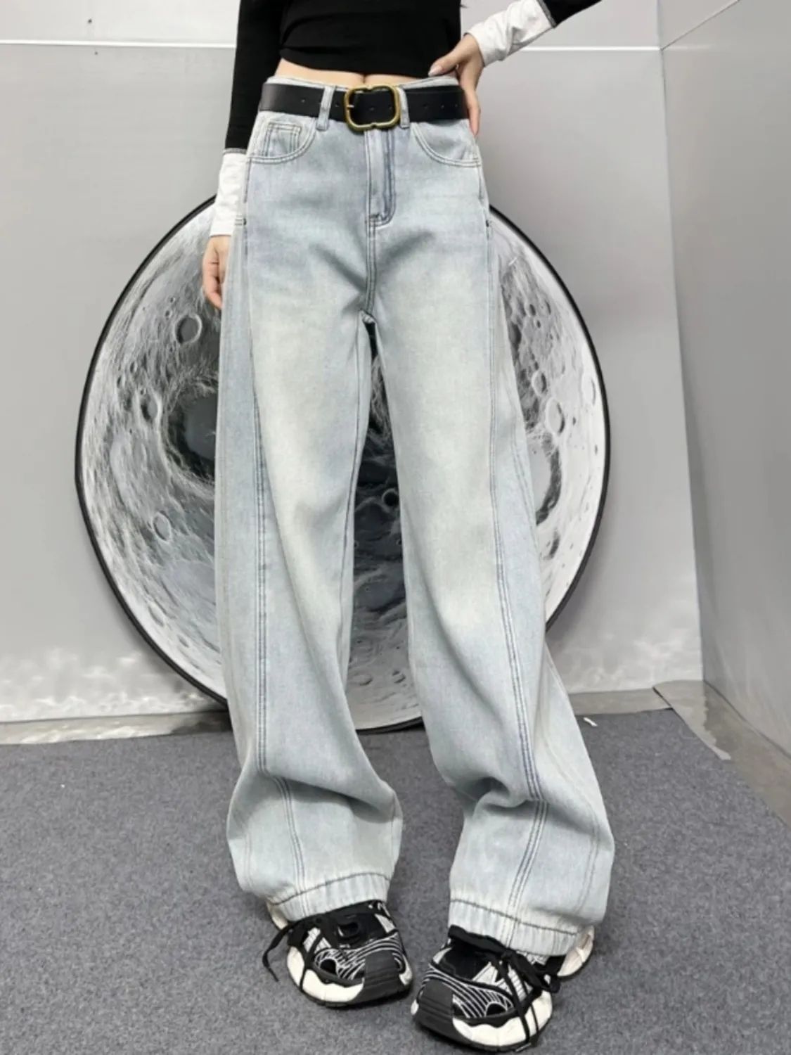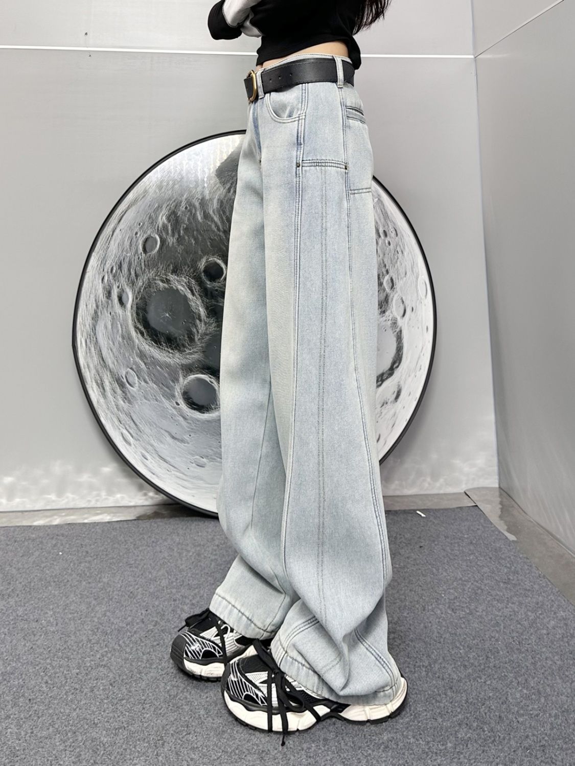 솔리드 컬러 캐주얼 청바지 여성의 2025 년 봄과 여름 새로운 딥 슬림 룩 넓은 다리 바지 느슨한 덤프 청바지스토어 가기