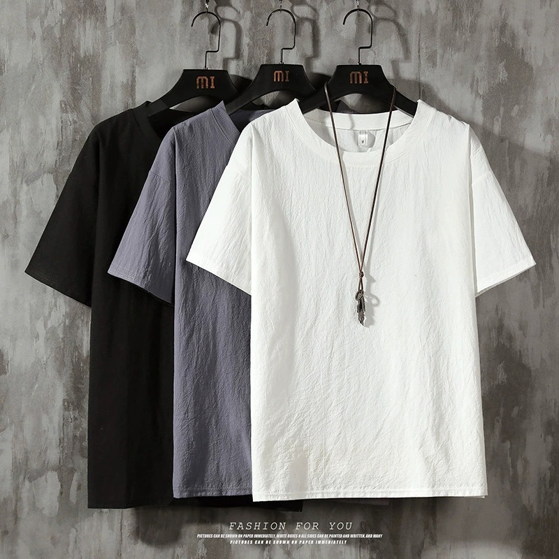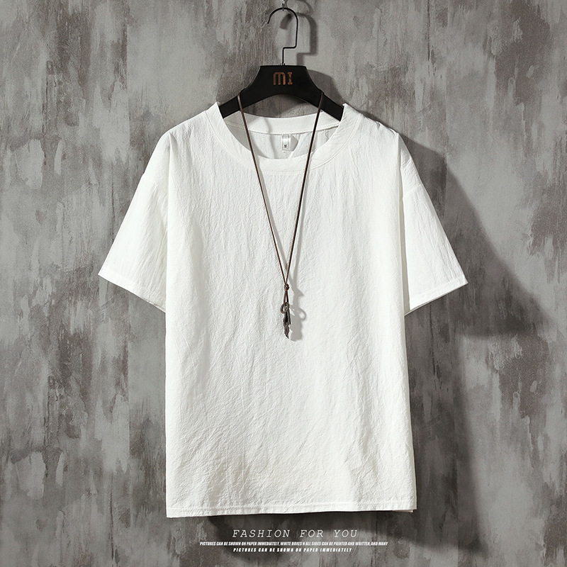 여름 플러스 사이즈 반소매 남성용 중국 스타일 단색 느슨한 플러스 사이즈 반팔 티셔츠 일본식 반소매 트렌디 브랜드 티셔츠스토어 가기