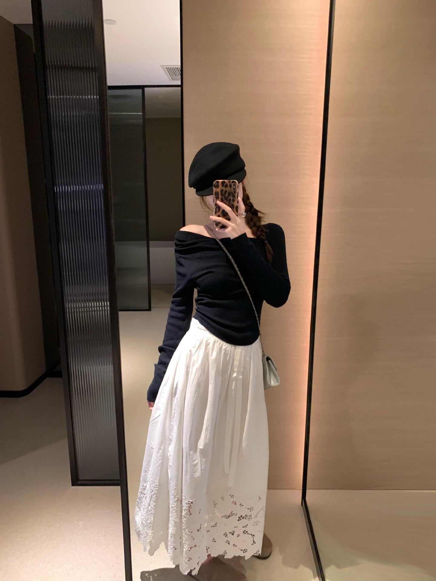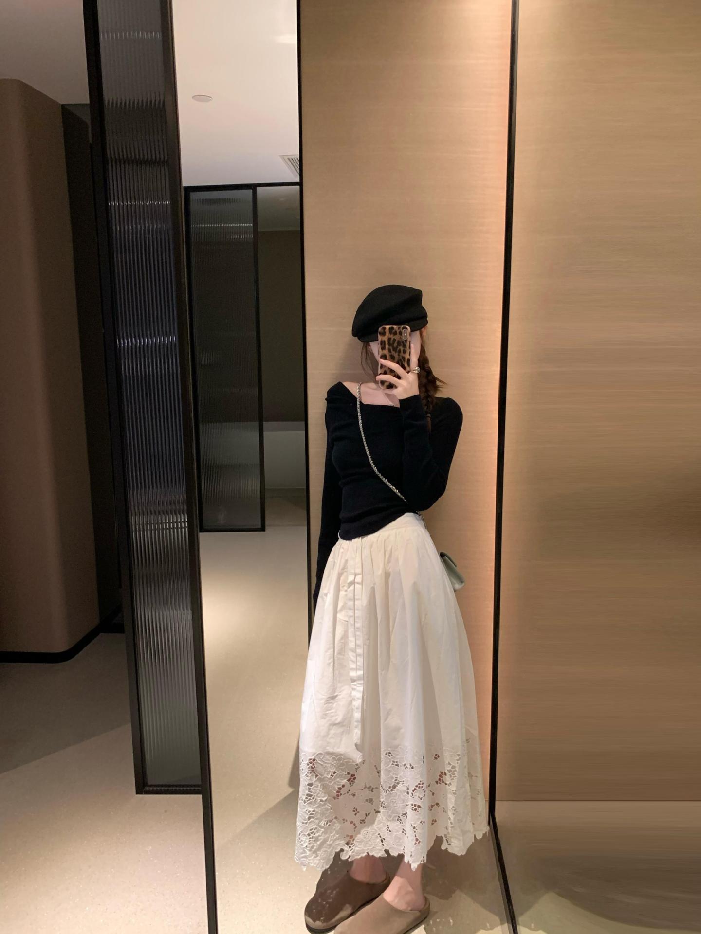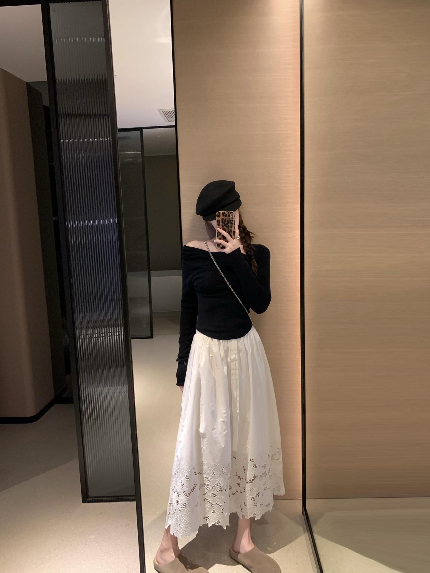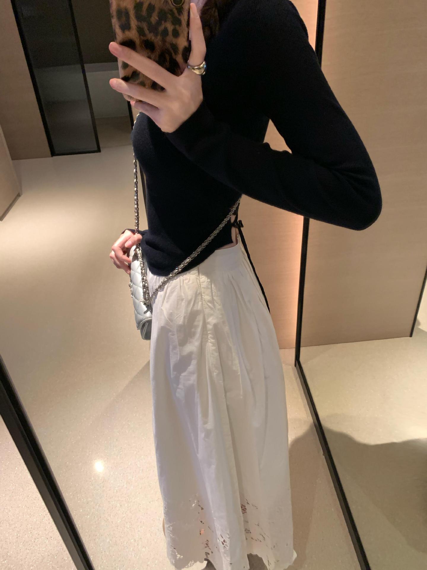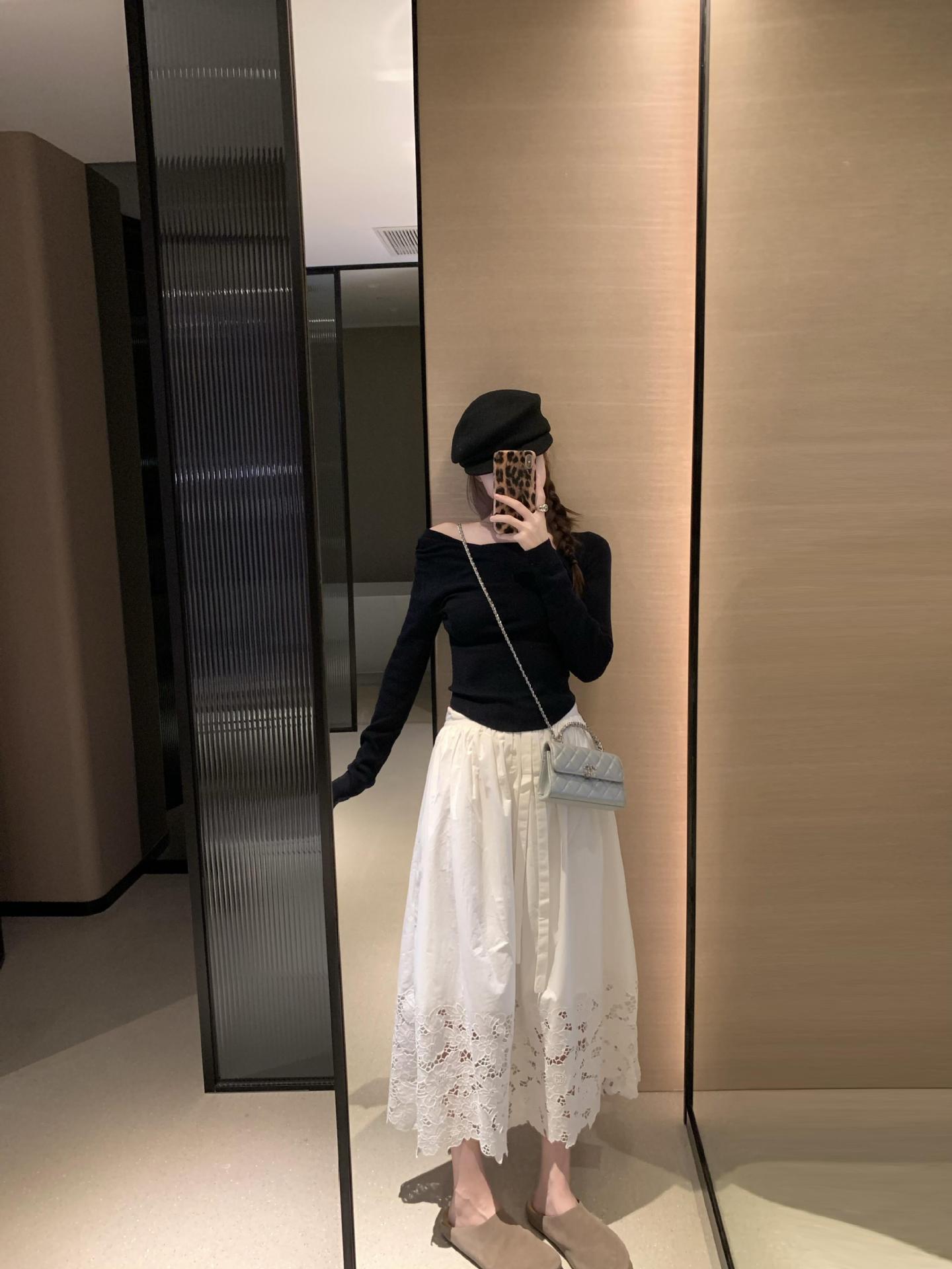 프랑스 젠틀 스타일 패션 세트 여성 2025 년 초 봄 새로운 핫 걸 스타일 탑 할로우 아웃 스커트 투피스 세트스토어 가기