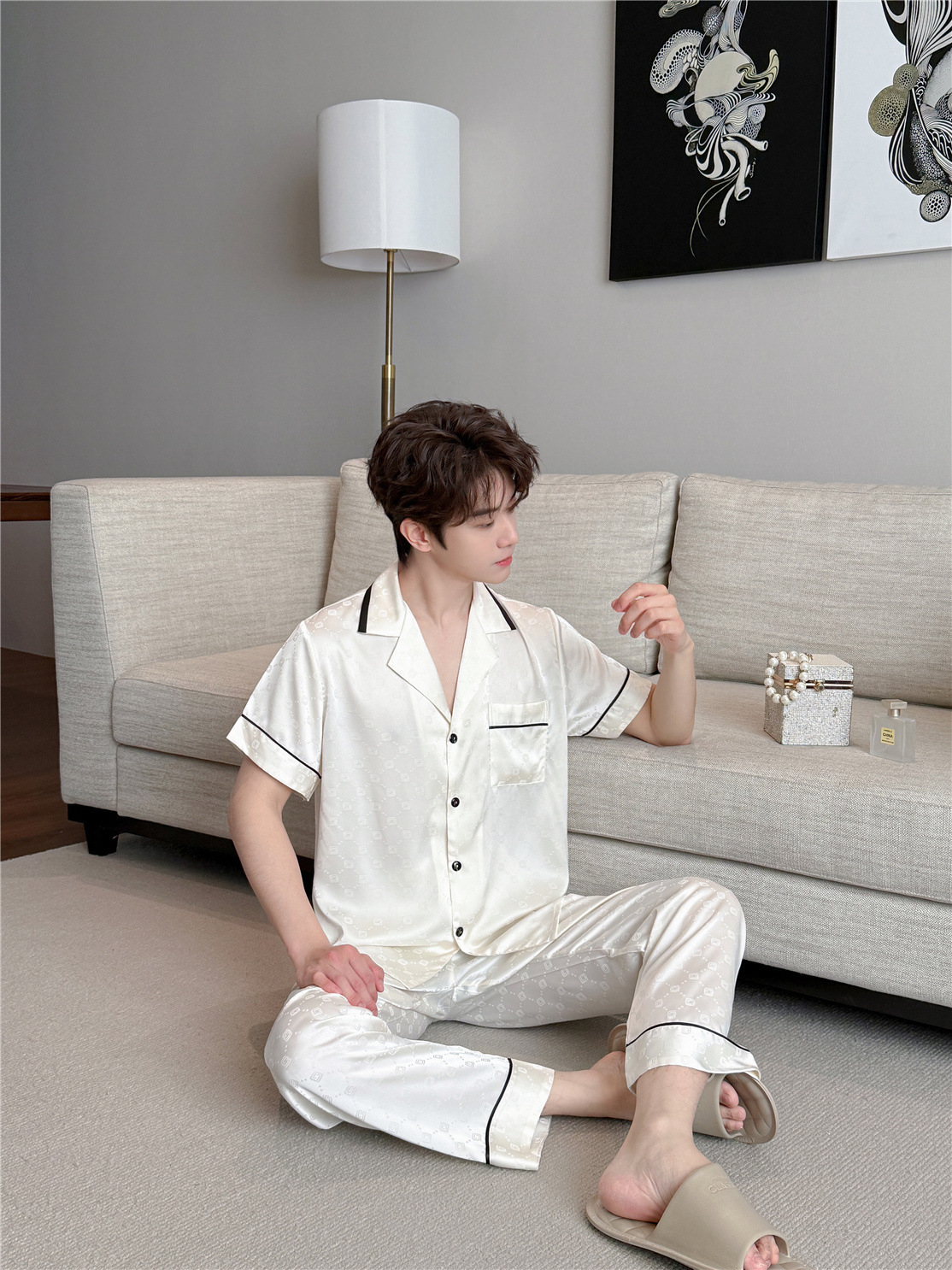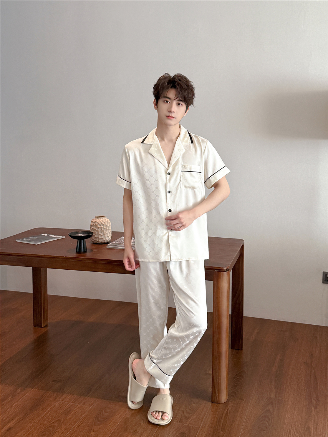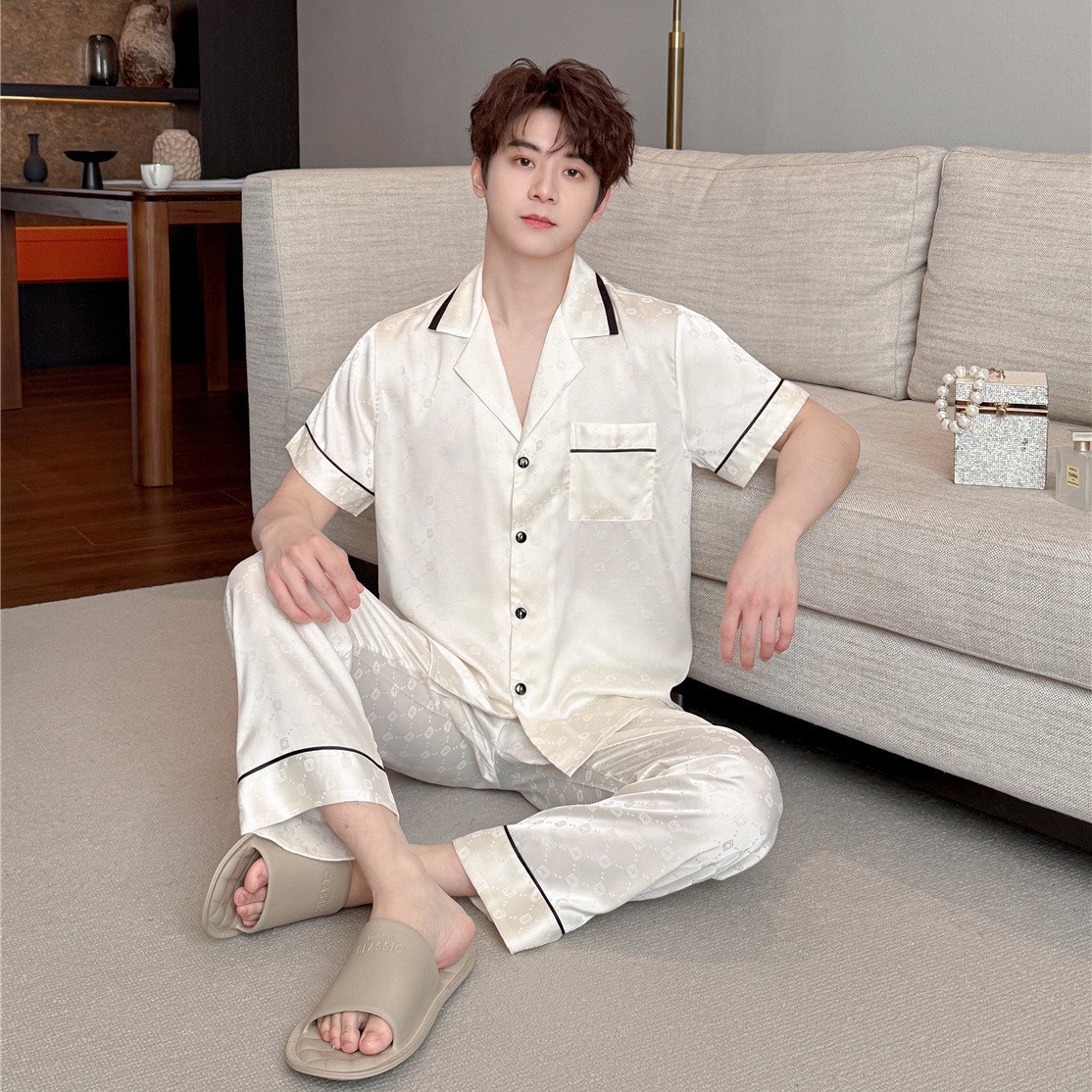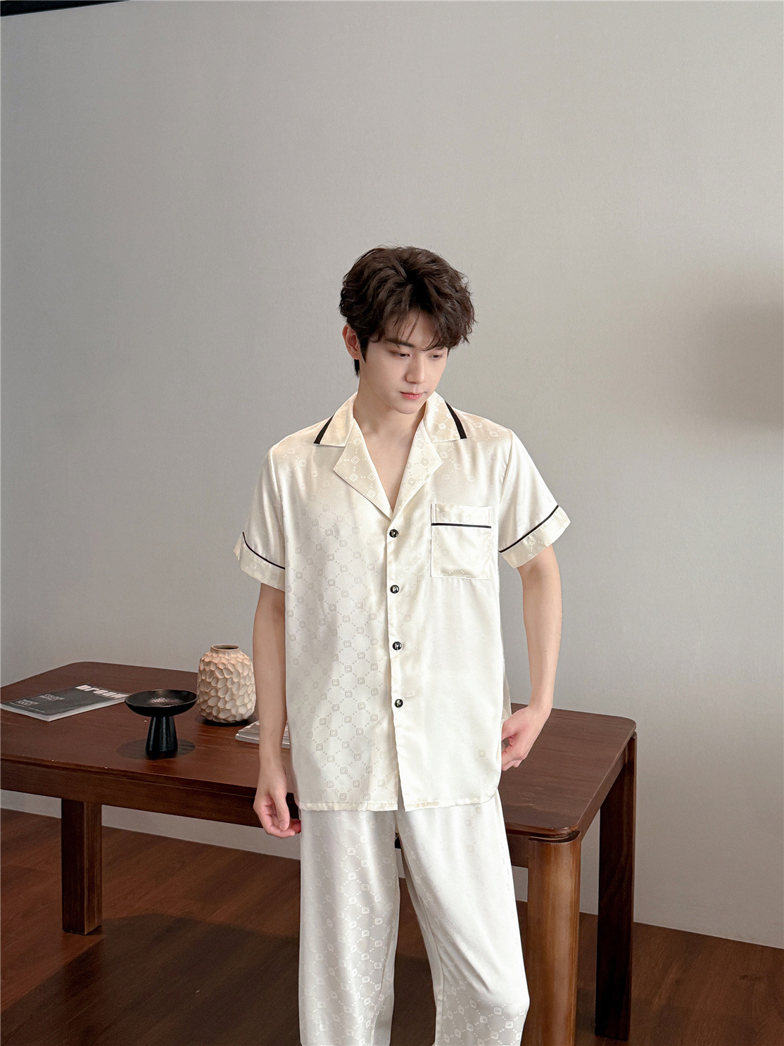 커플 잠옷 여성의 여름 아이스 실크 얇은 2025 새로운 높은 감각 짧은 소매 바지 남성용 홈 웨어