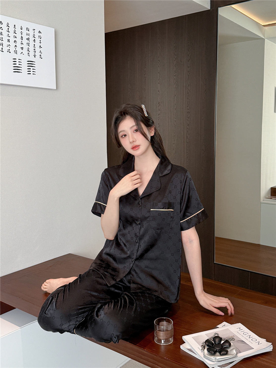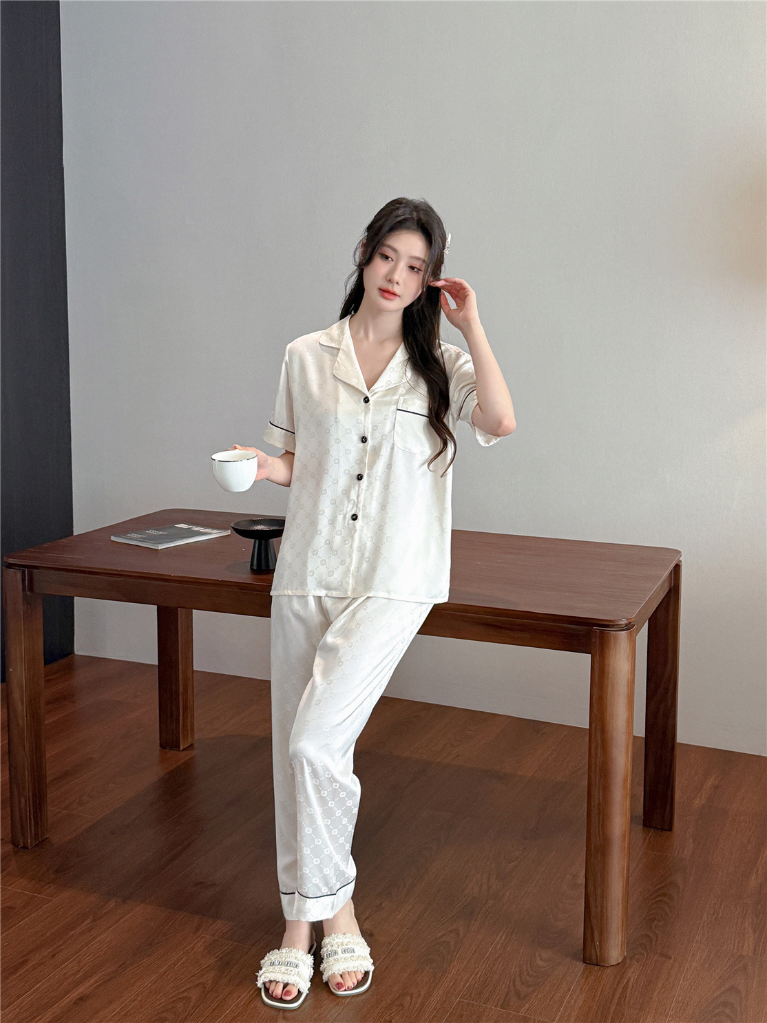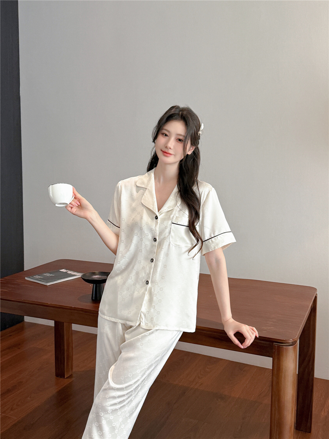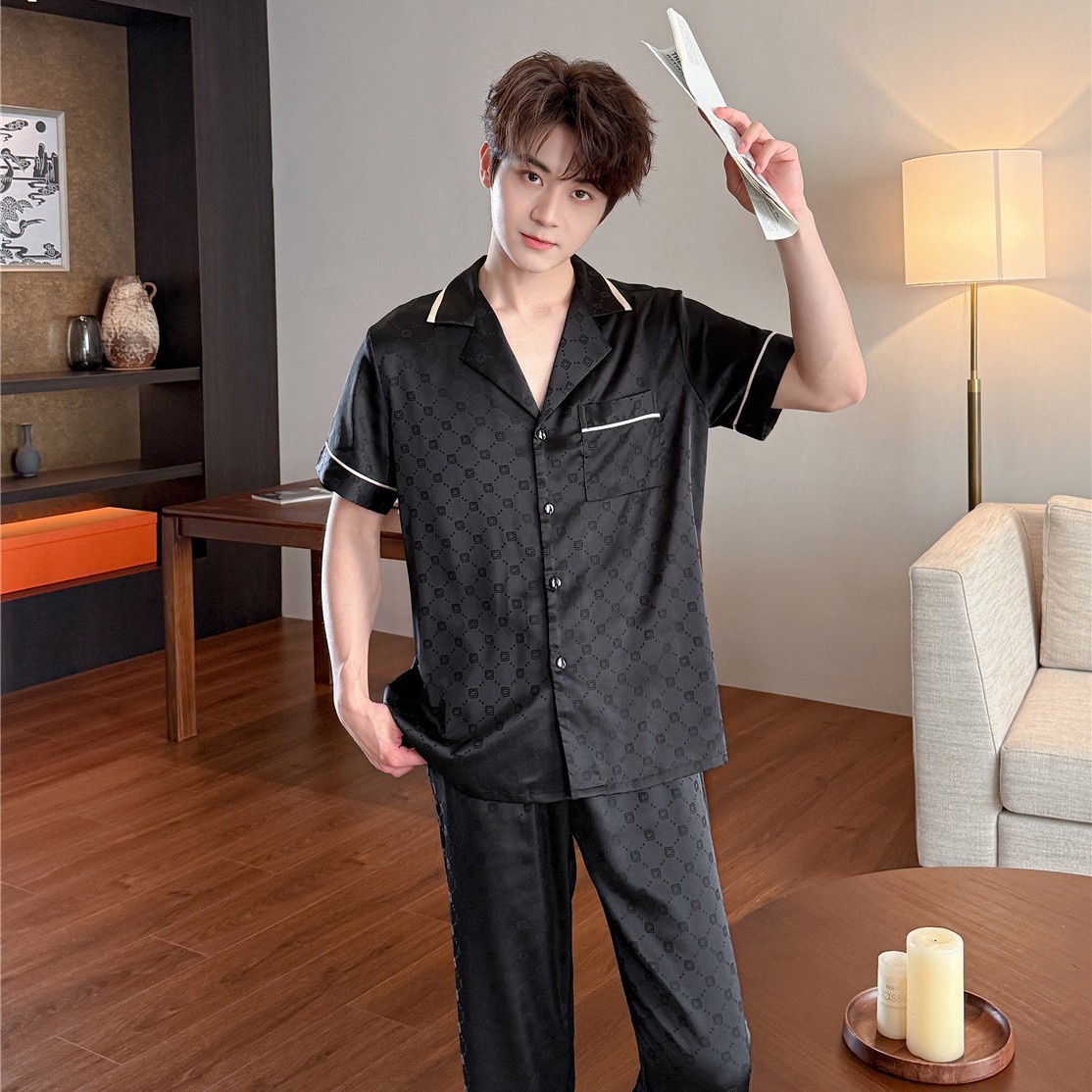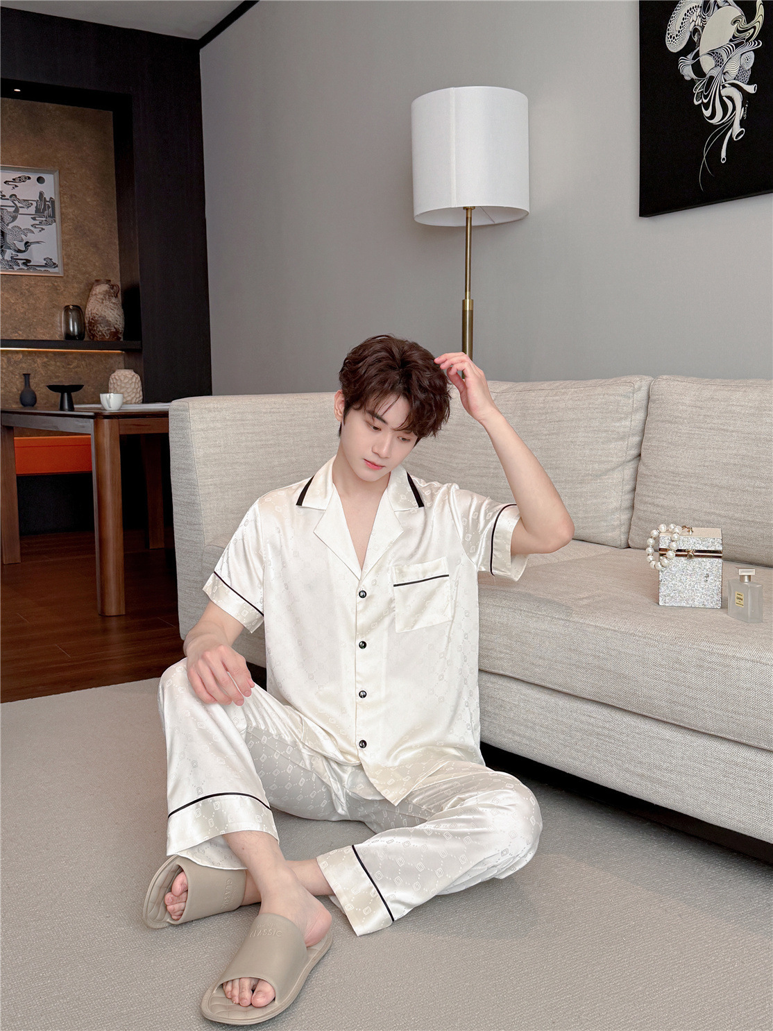 커플 잠옷 여성의 여름 아이스 실크 얇은 2025 새로운 높은 감각 짧은 소매 바지 남성용 홈 웨어