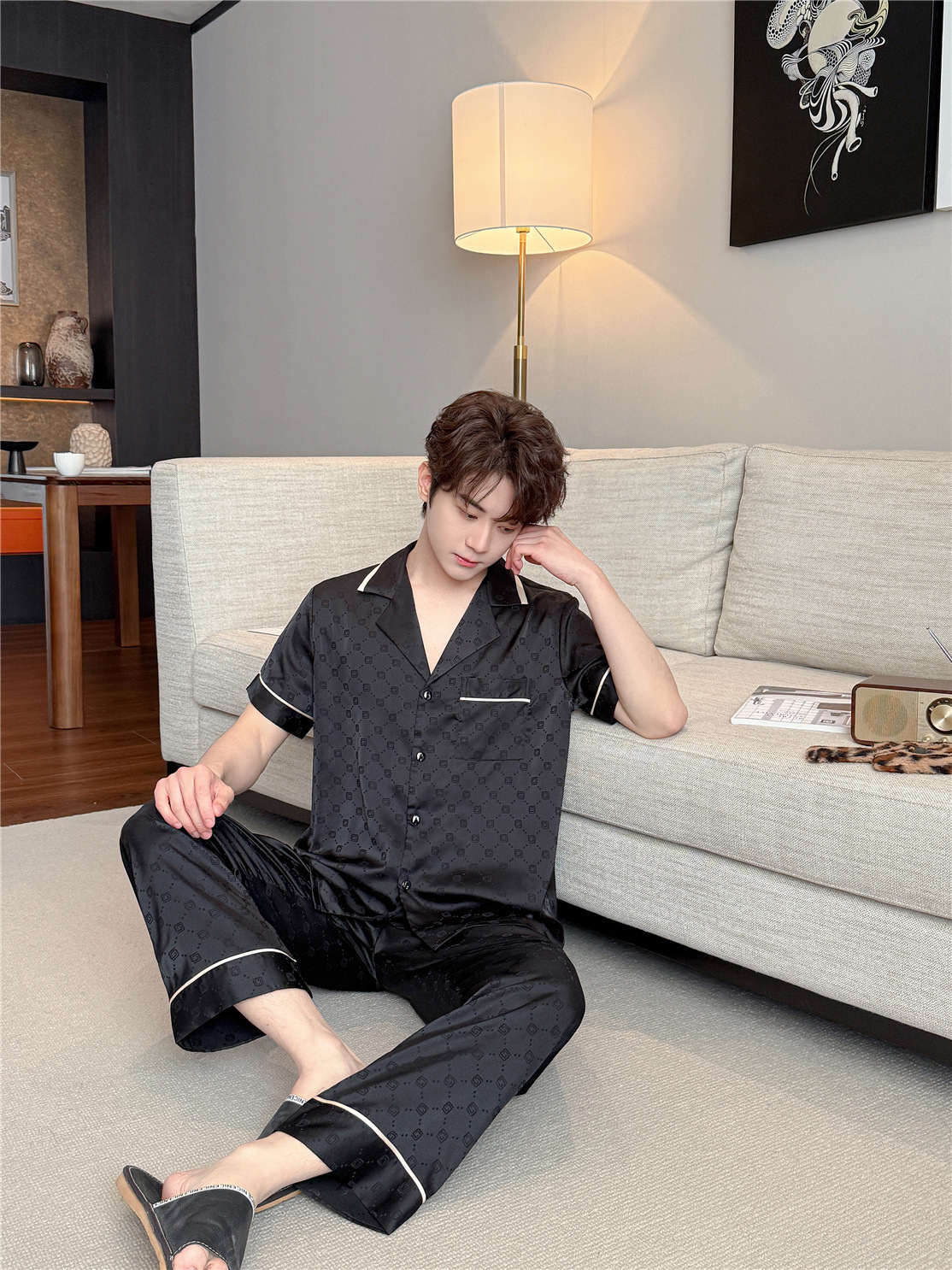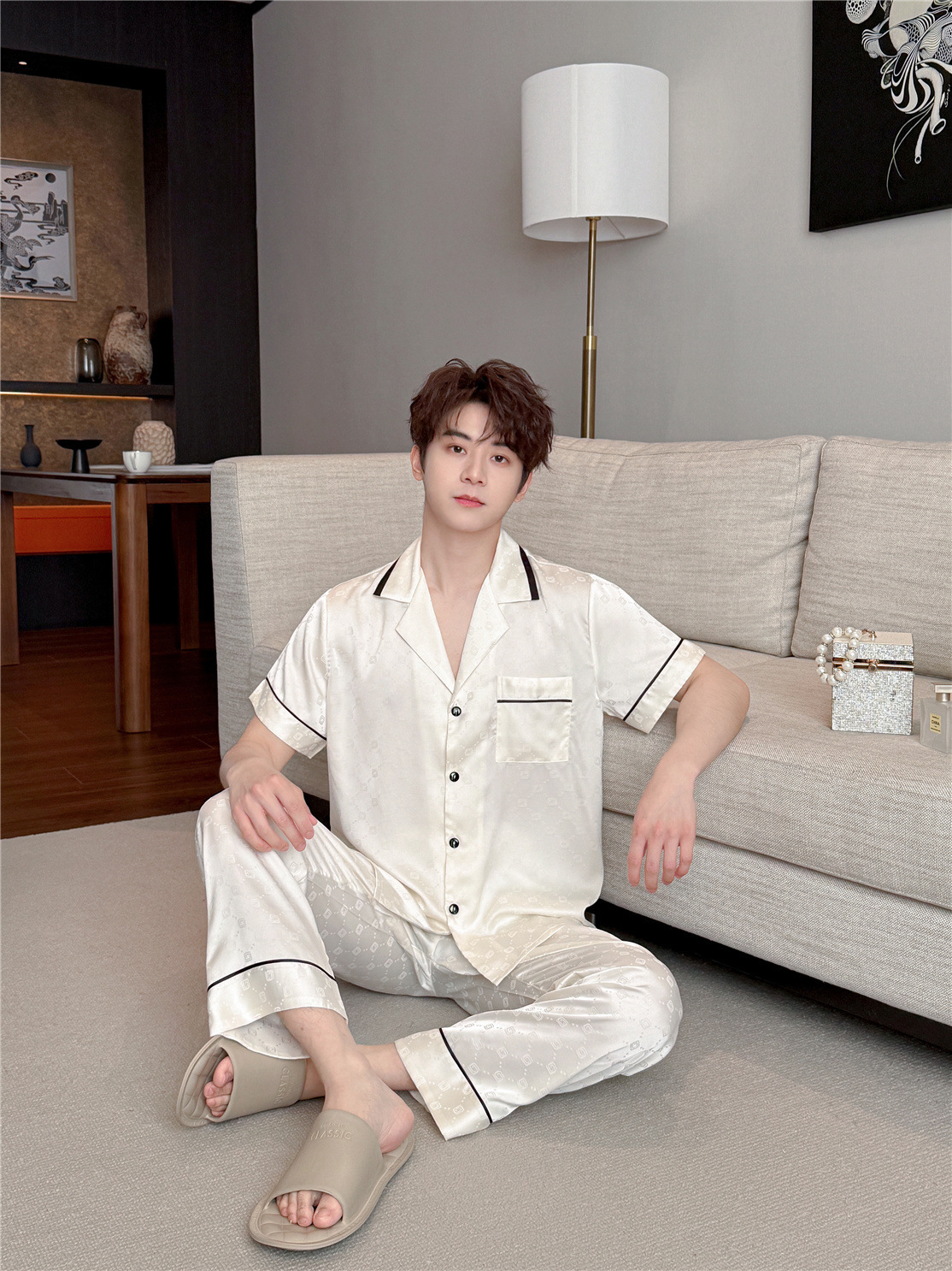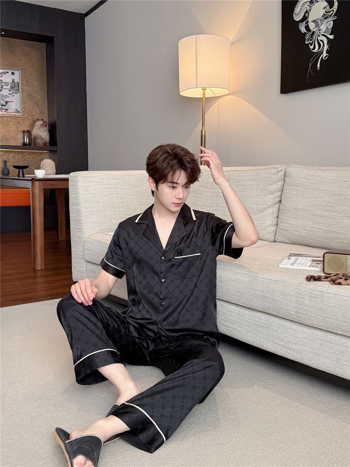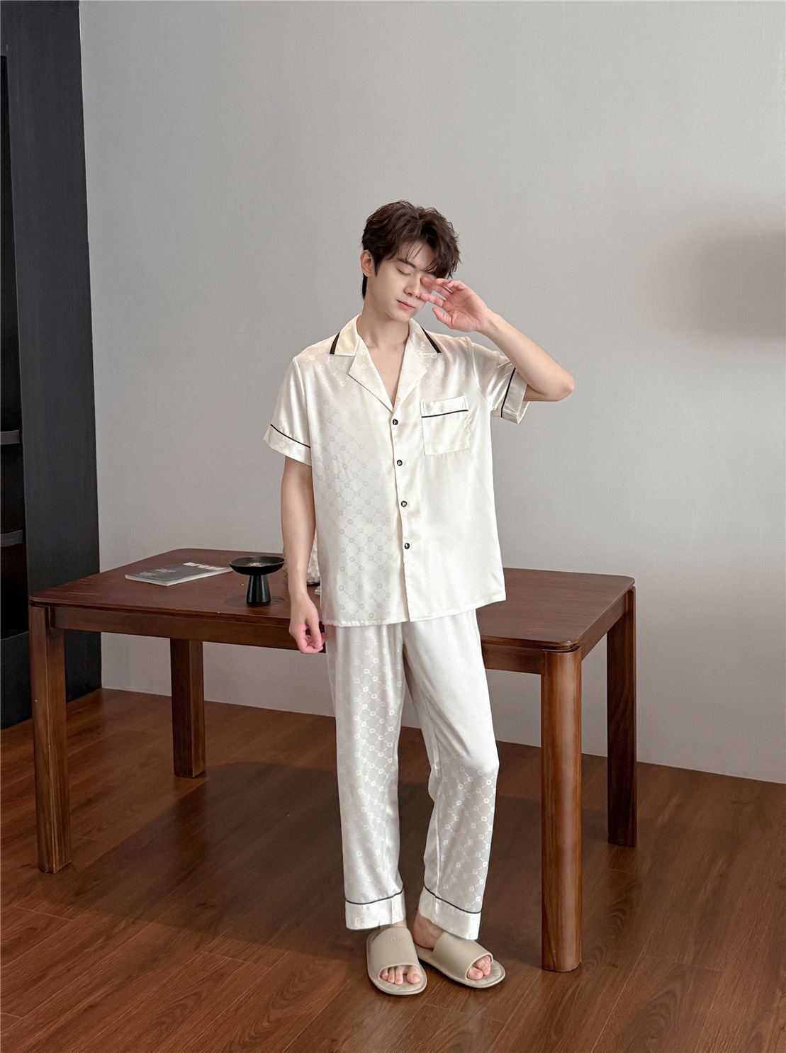 커플 잠옷 여성의 여름 아이스 실크 얇은 2025 새로운 높은 감각 짧은 소매 바지 남성용 홈 웨어
