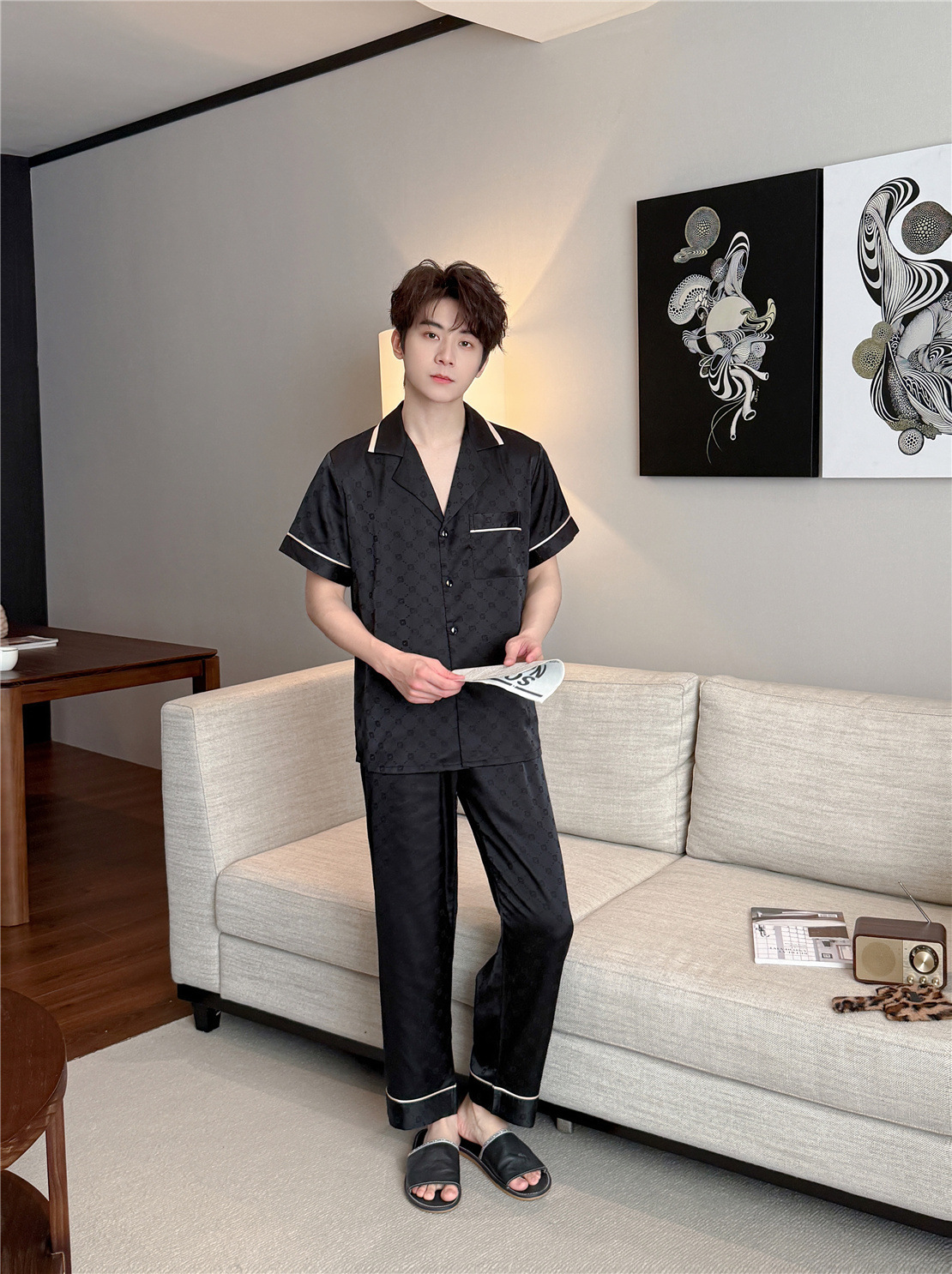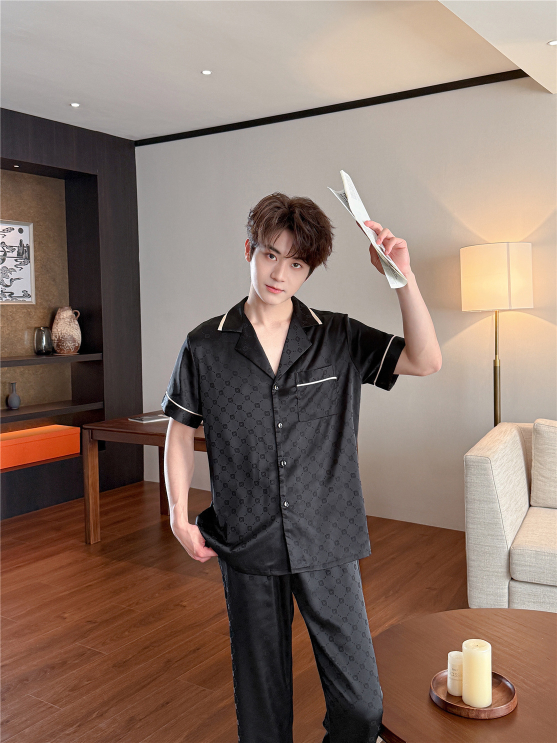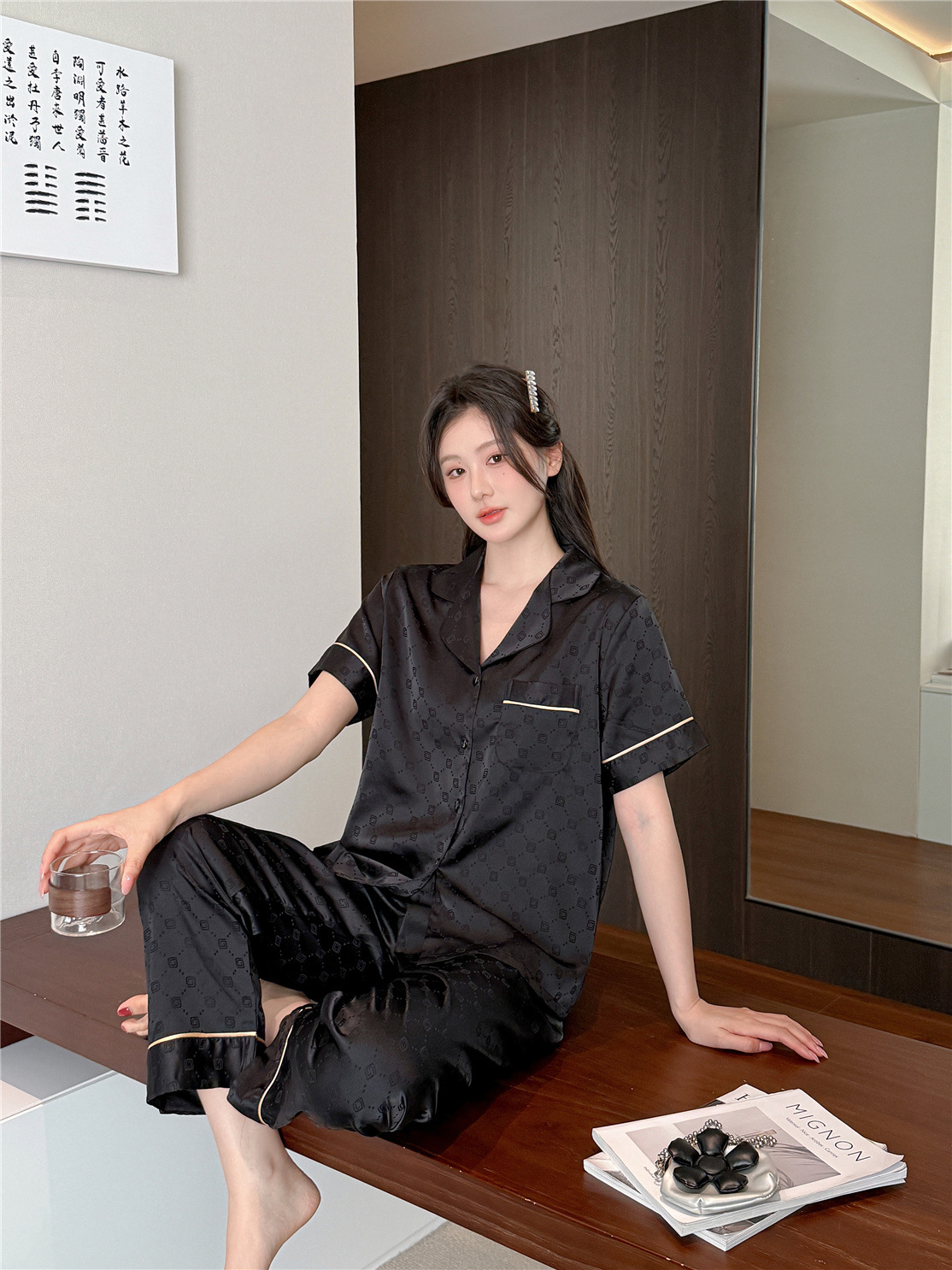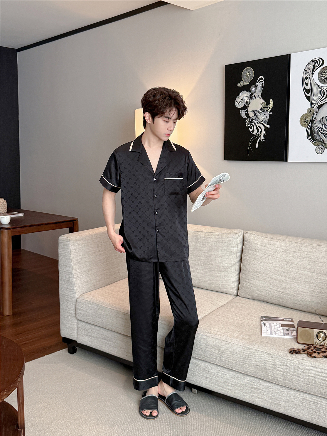 커플 잠옷 여성의 여름 아이스 실크 얇은 2025 새로운 높은 감각 짧은 소매 바지 남성용 홈 웨어
