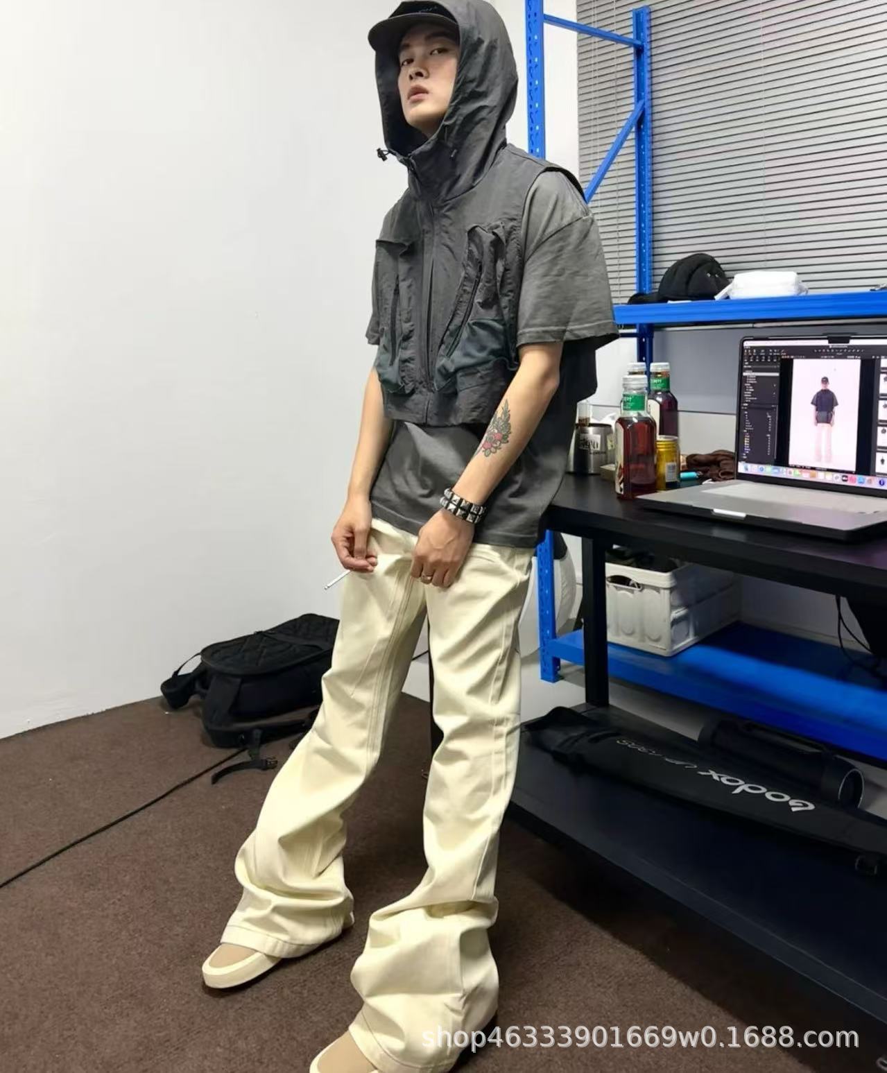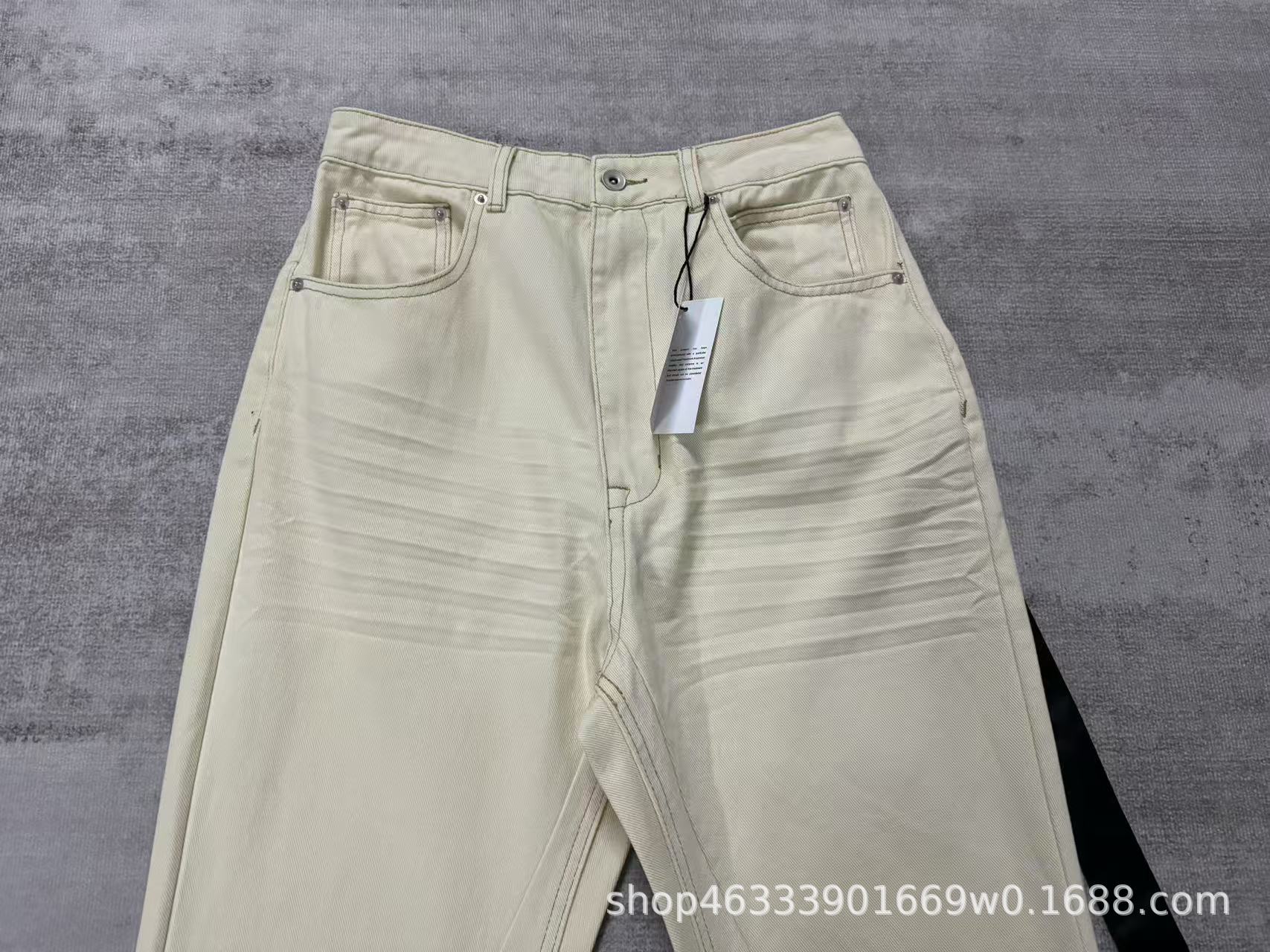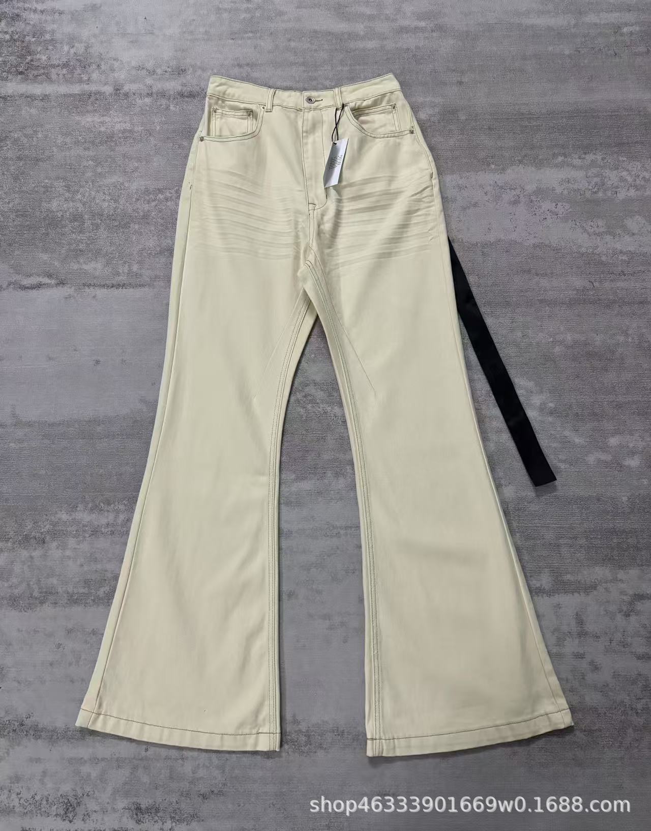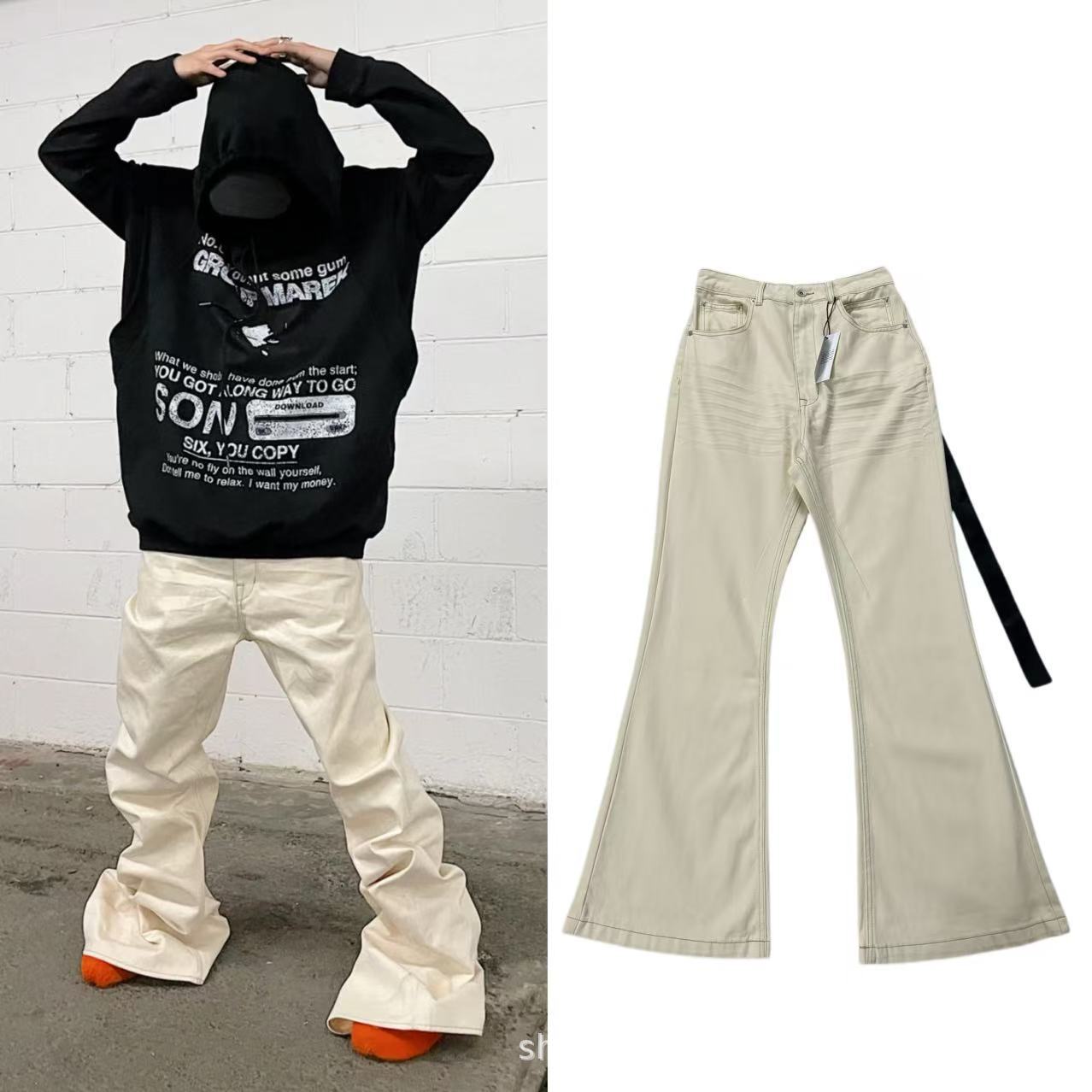오리지널 RO 스타일 틈새 다크 하이 탄성 아이보리 스크럽 혼 청바지 남성용 슬림 와이드 다리 바지
