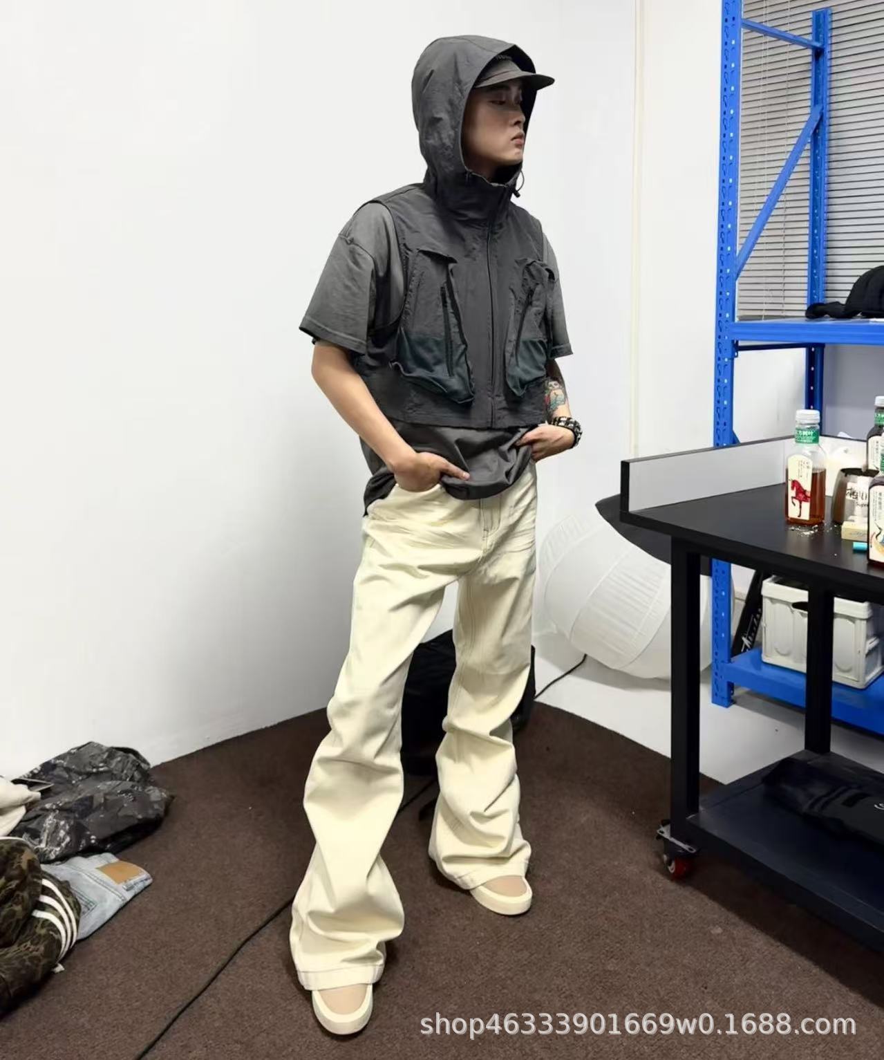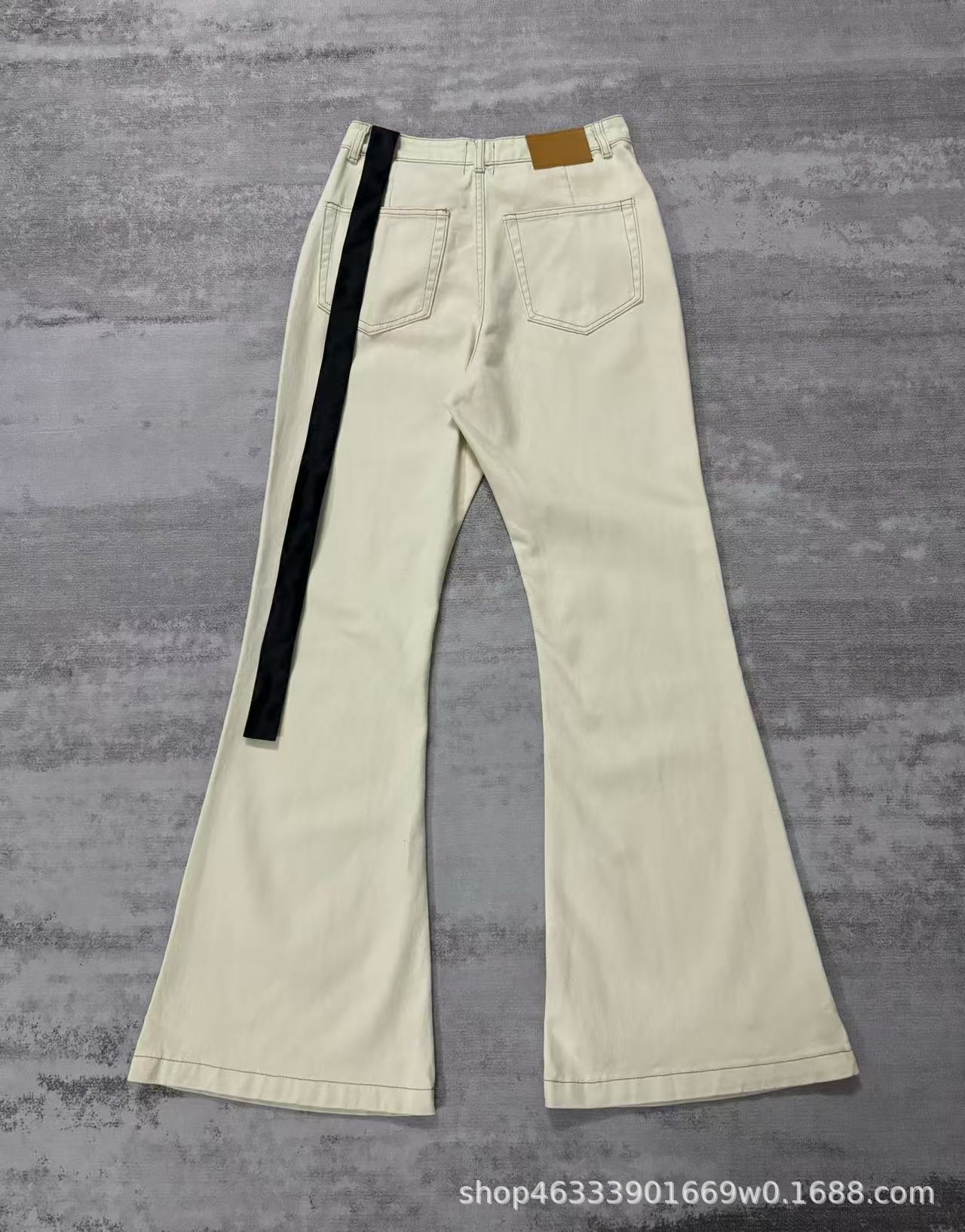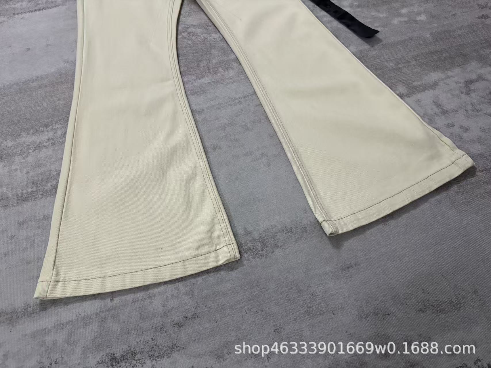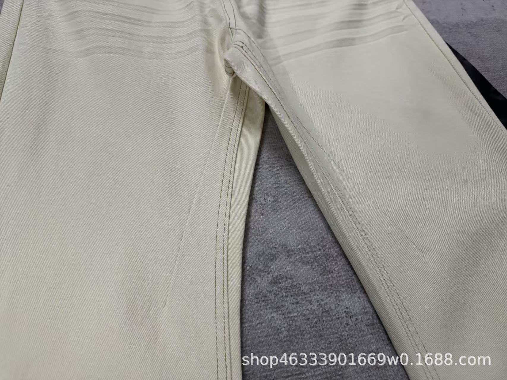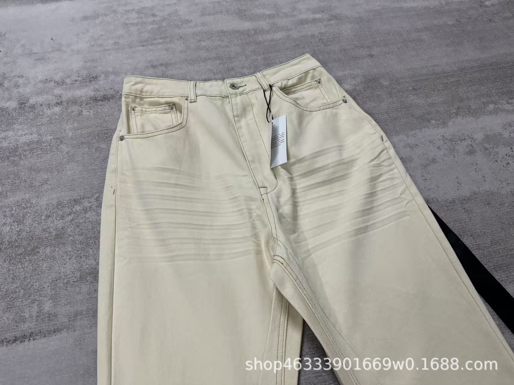 오리지널 RO 스타일 틈새 다크 하이 탄성 아이보리 스크럽 혼 청바지 남성용 슬림 와이드 다리 바지