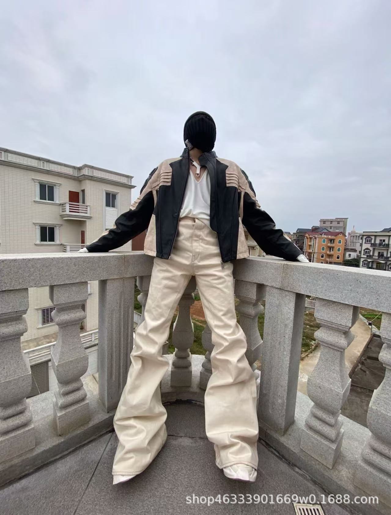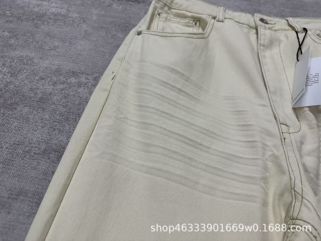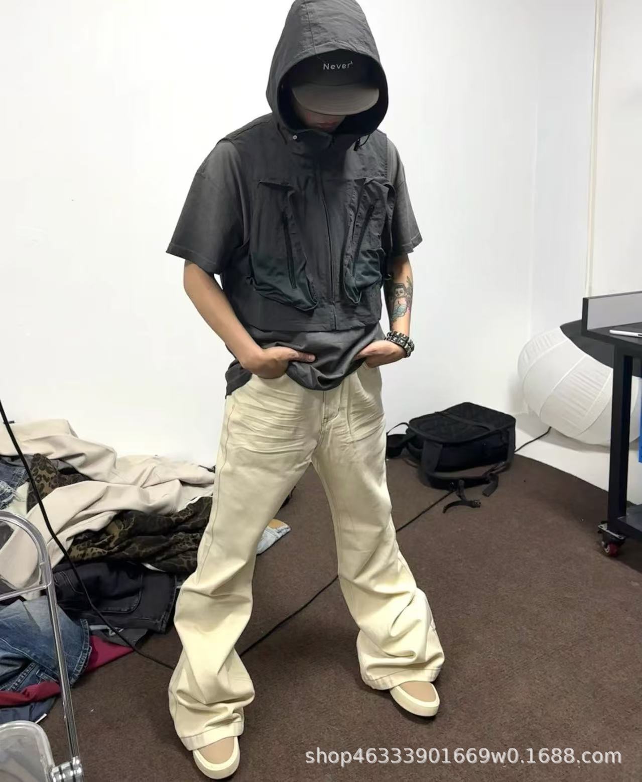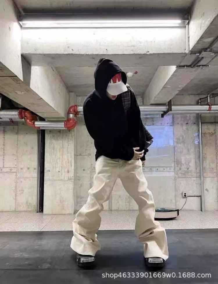 오리지널 RO 스타일 틈새 다크 하이 탄성 아이보리 스크럽 혼 청바지 남성용 슬림 와이드 다리 바지스토어 가기