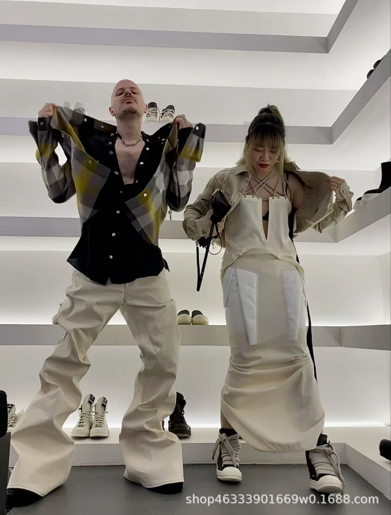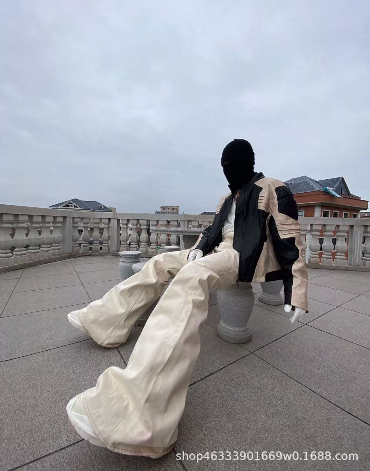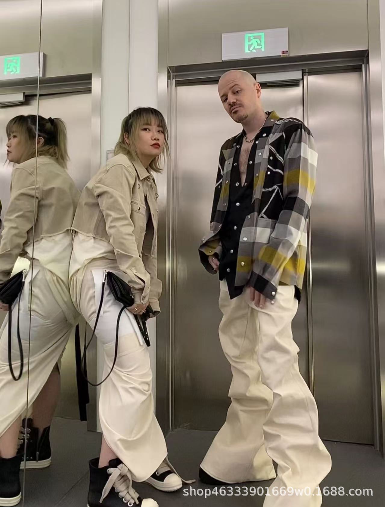 오리지널 RO 스타일 틈새 다크 하이 탄성 아이보리 스크럽 혼 청바지 남성용 슬림 와이드 다리 바지스토어 가기