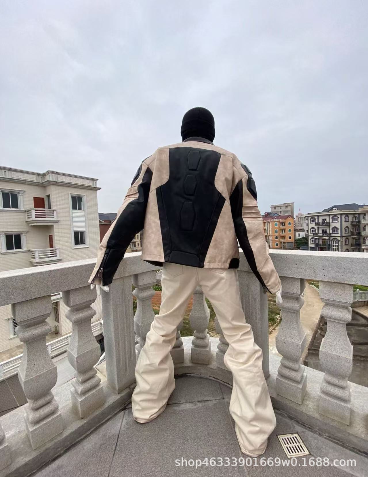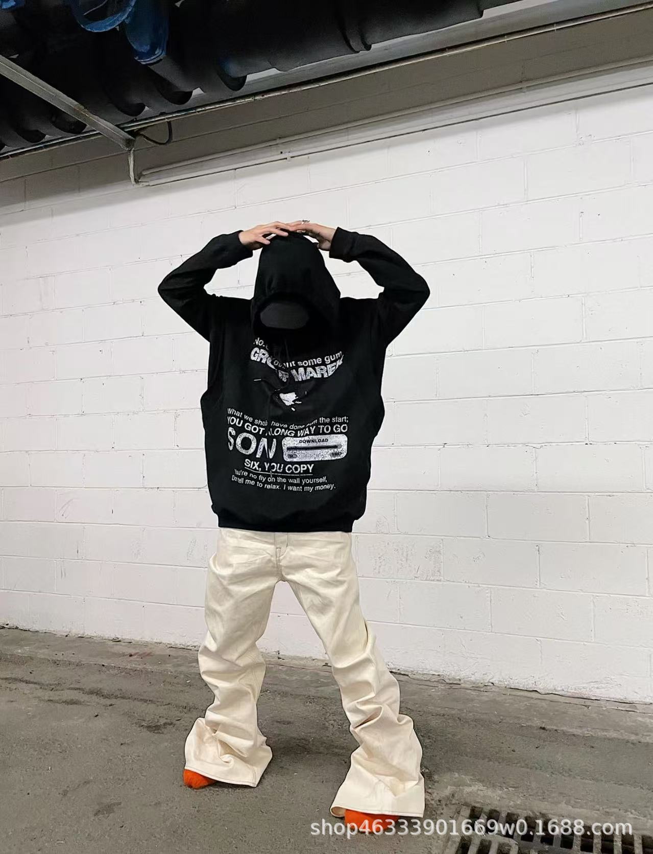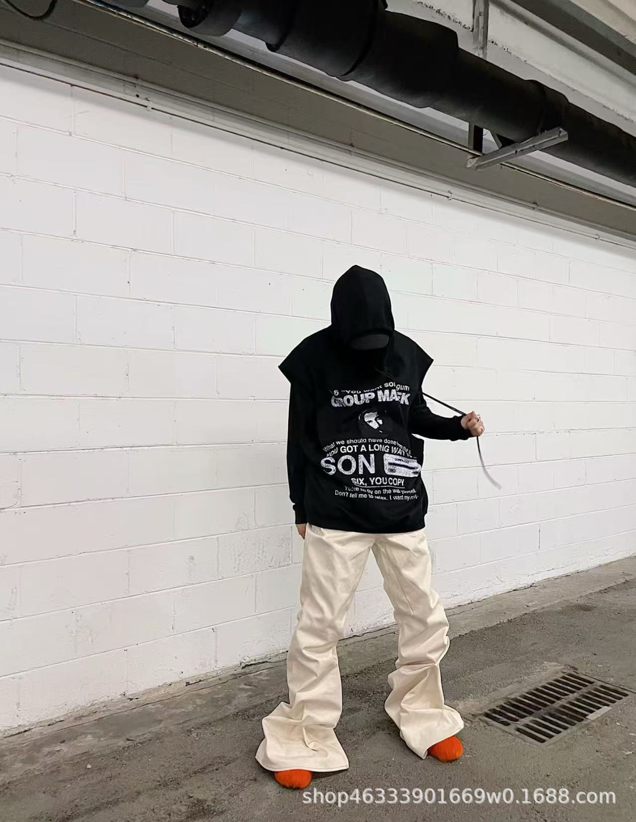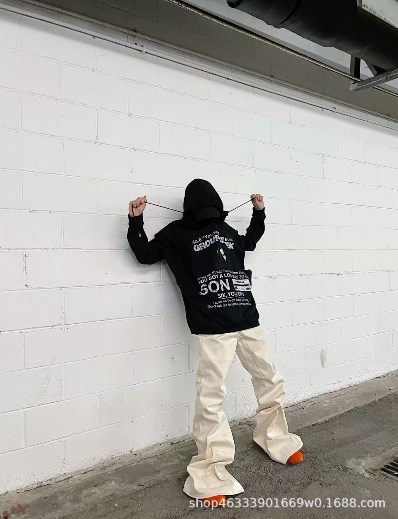오리지널 RO 스타일 틈새 다크 하이 탄성 아이보리 스크럽 혼 청바지 남성용 슬림 와이드 다리 바지스토어 가기