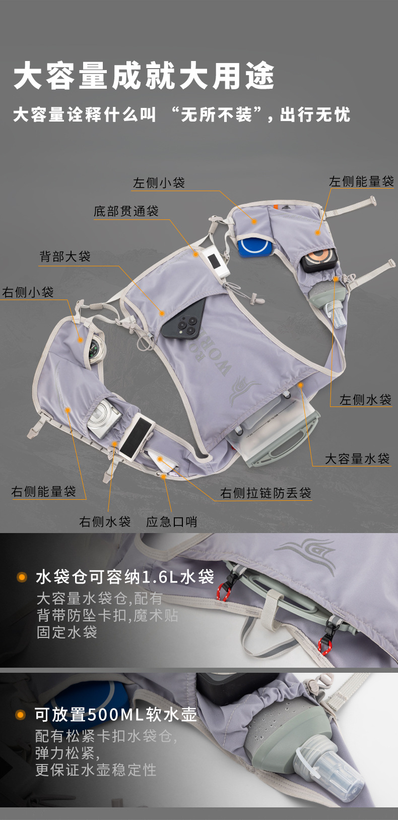 야외 스포츠 다기능 남녀 베일 스타일 경량 마라톤 하이킹 크로스 컨트리 러닝 워터 백 배낭스토어 가기