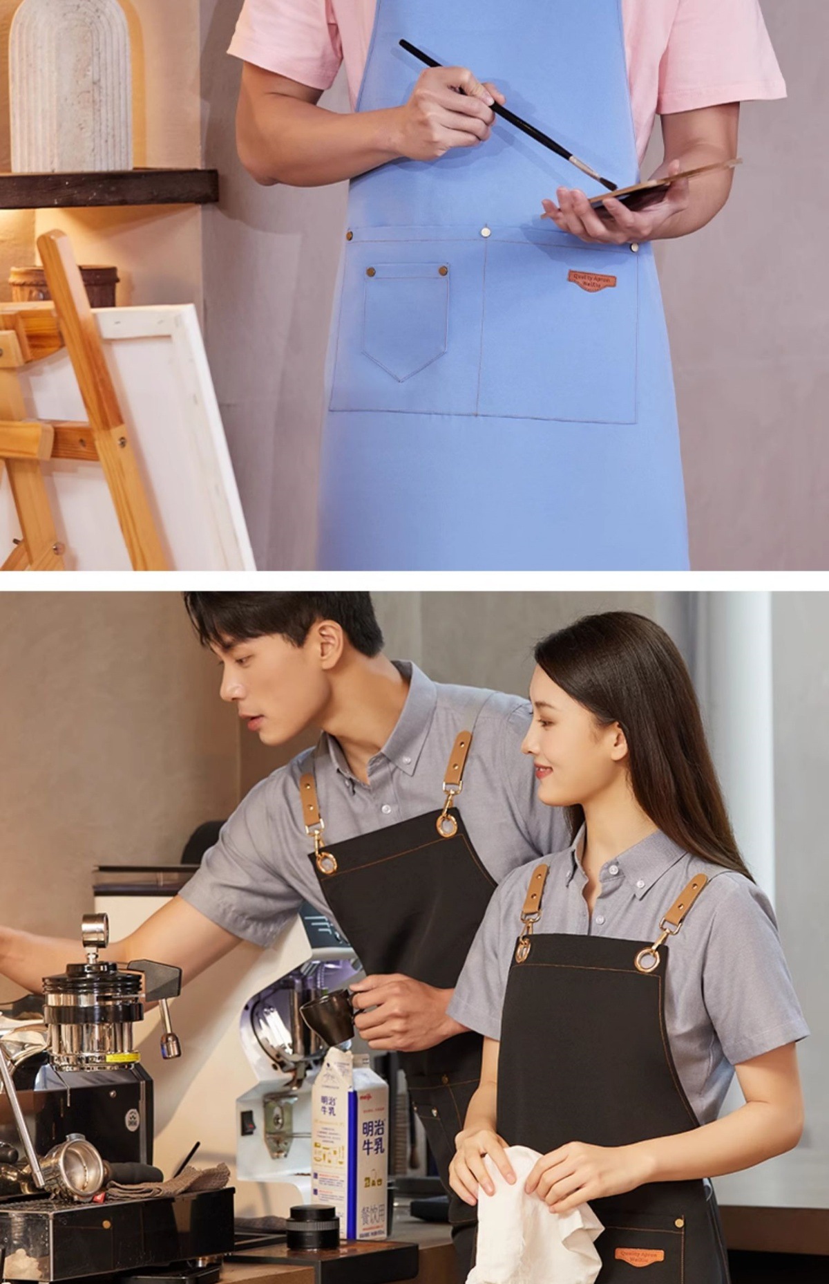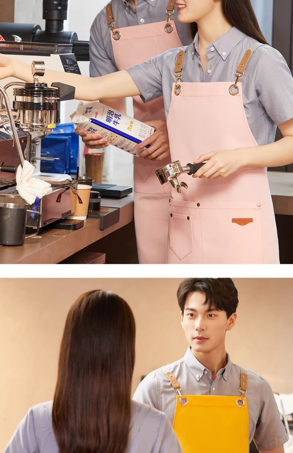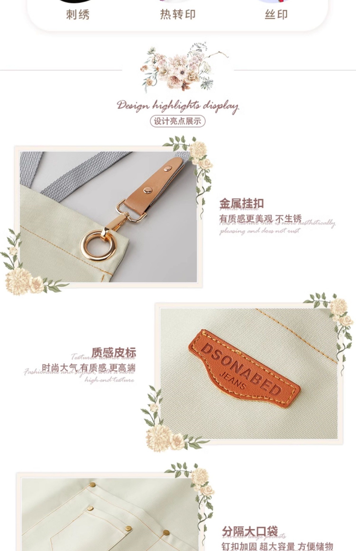 캔버스 방수 앞치마 로고 인쇄 케이터링 우유 차 가게 커피 웨이터 특수 모자 세트 허리스토어 가기