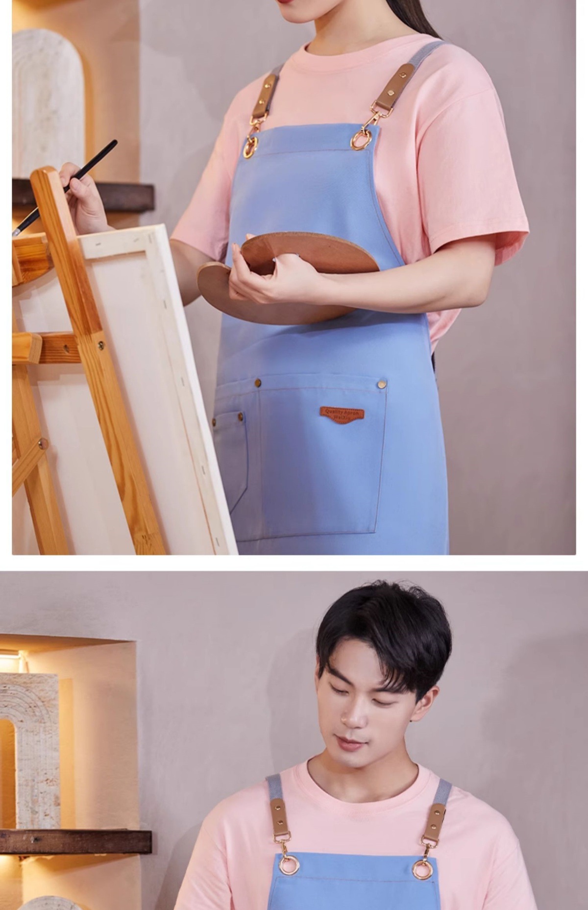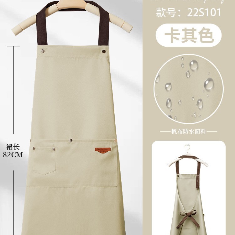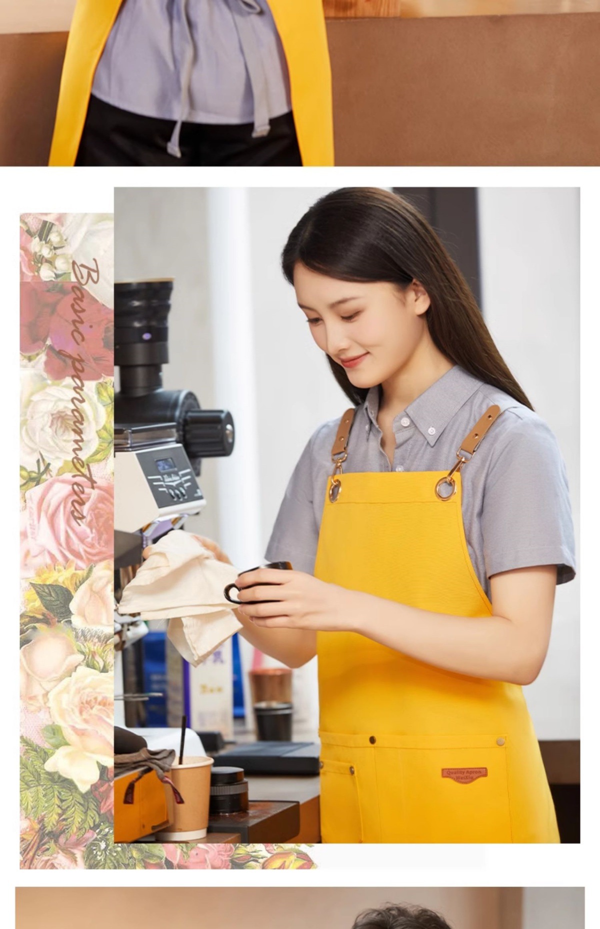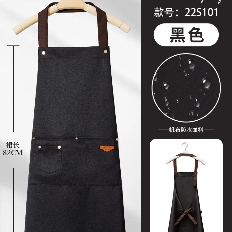 캔버스 방수 앞치마 로고 인쇄 케이터링 우유 차 가게 커피 웨이터 특수 모자 세트 허리스토어 가기