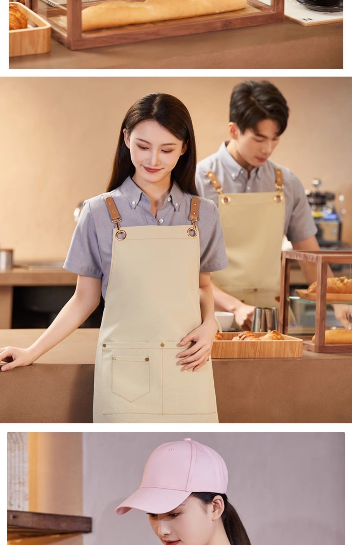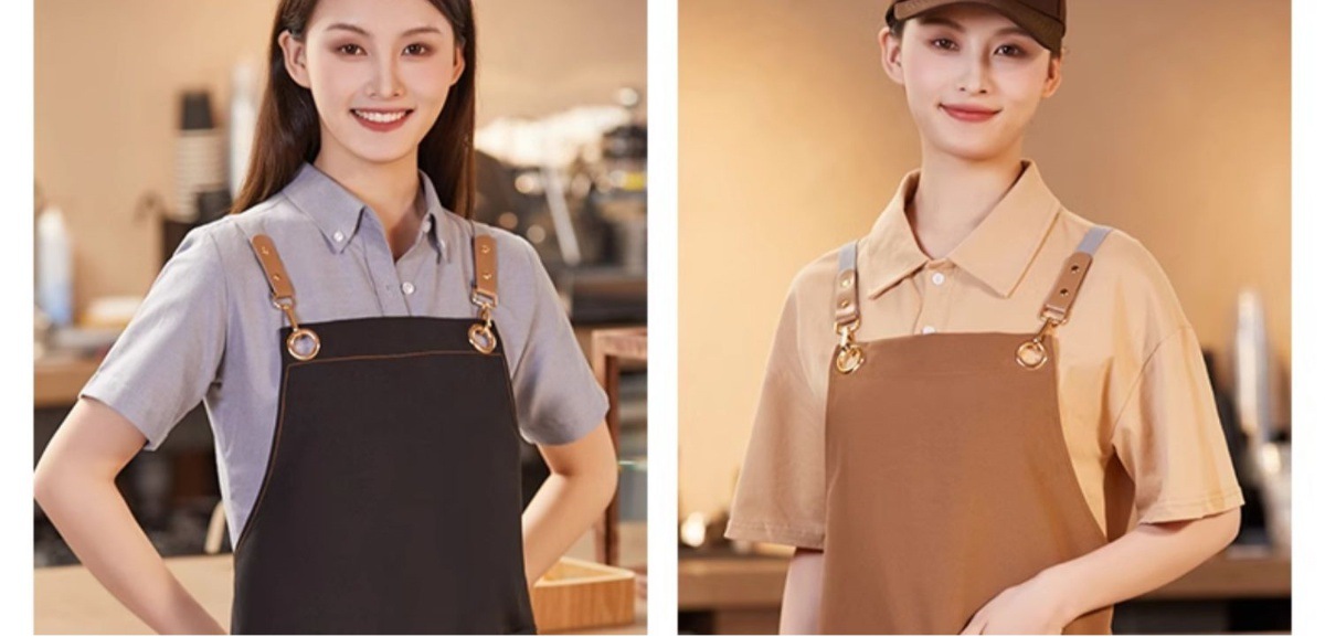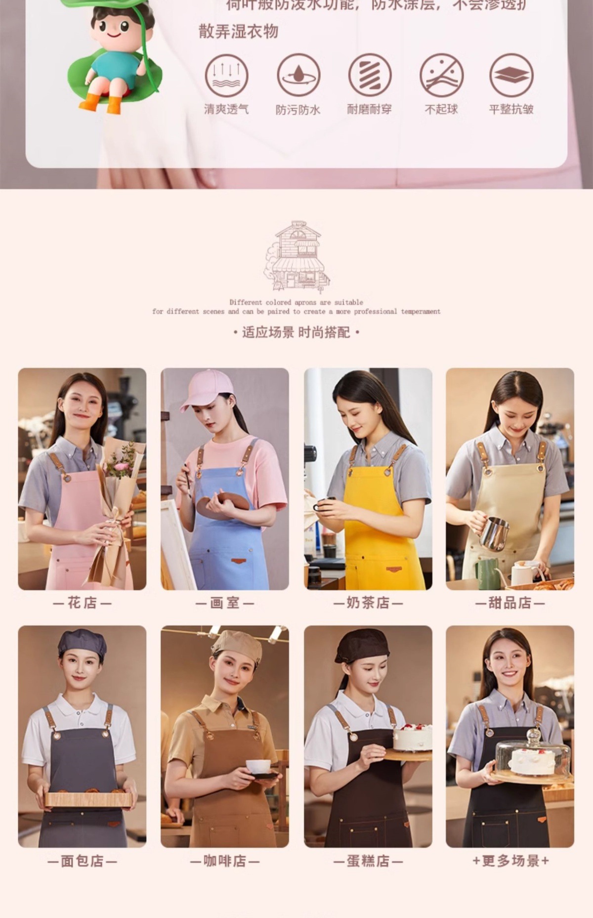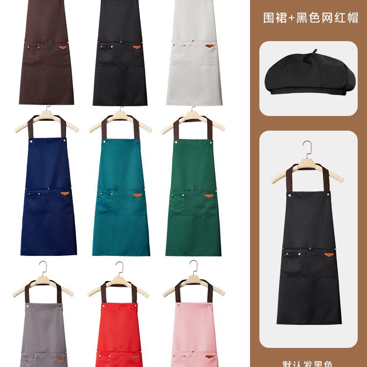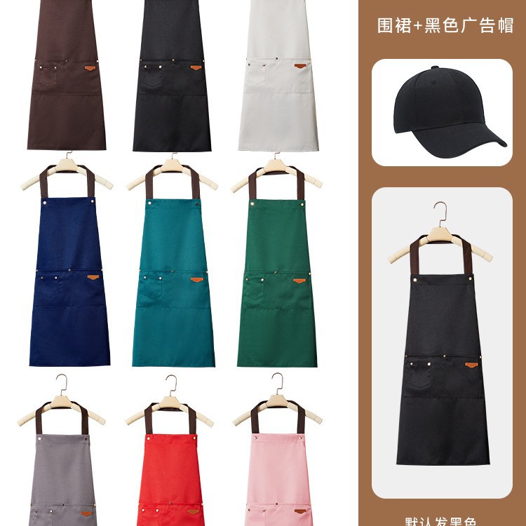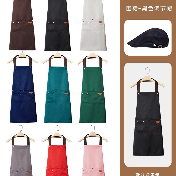 캔버스 방수 앞치마 로고 인쇄 케이터링 우유 차 가게 커피 웨이터 특수 모자 세트 허리
