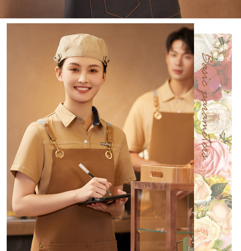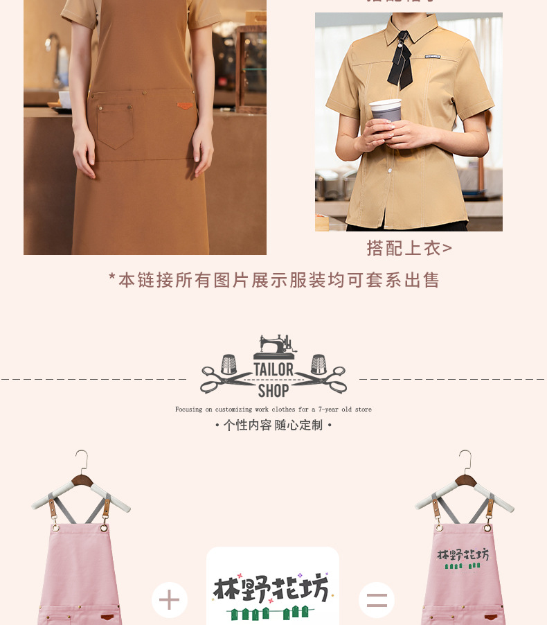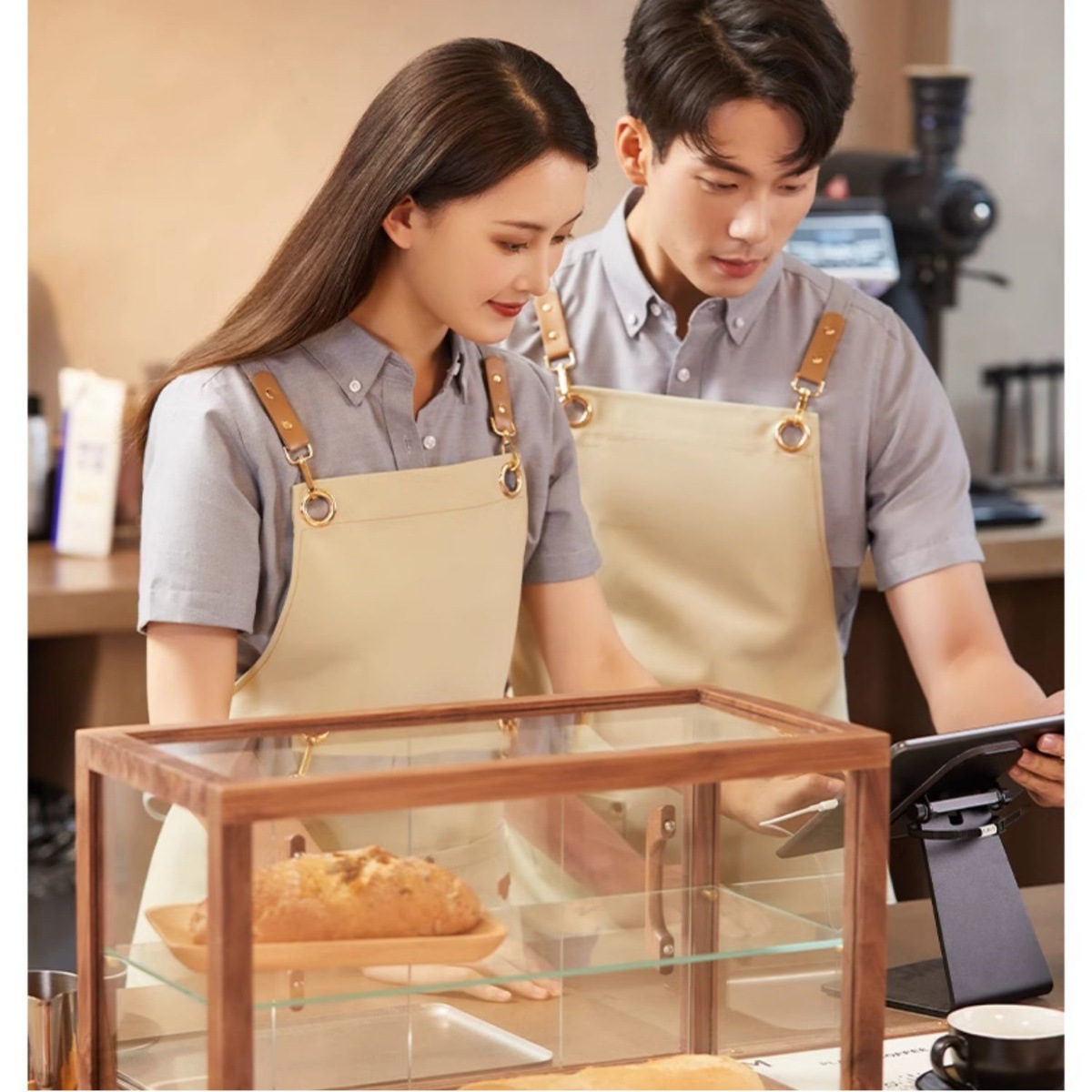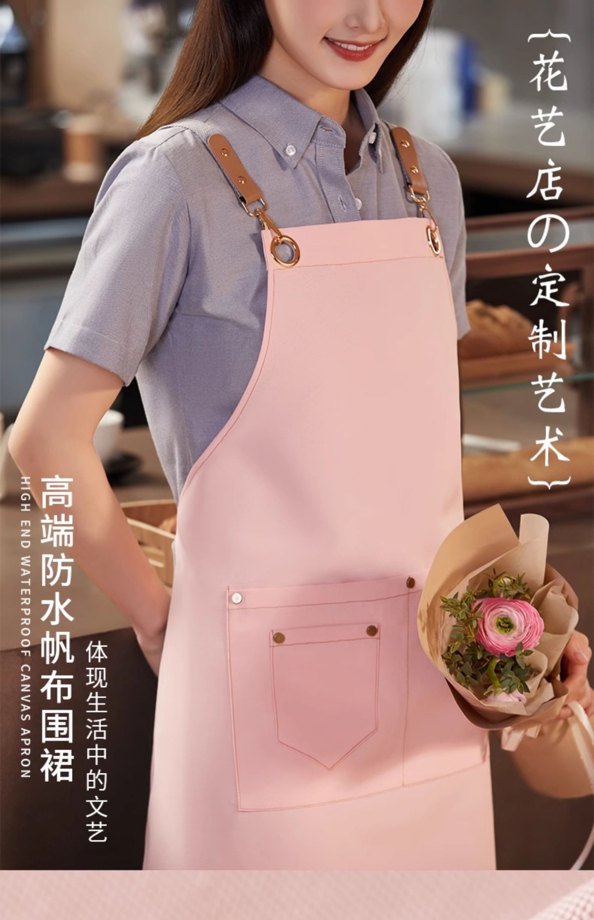 캔버스 방수 앞치마 로고 인쇄 케이터링 우유 차 가게 커피 웨이터 특수 모자 세트 허리