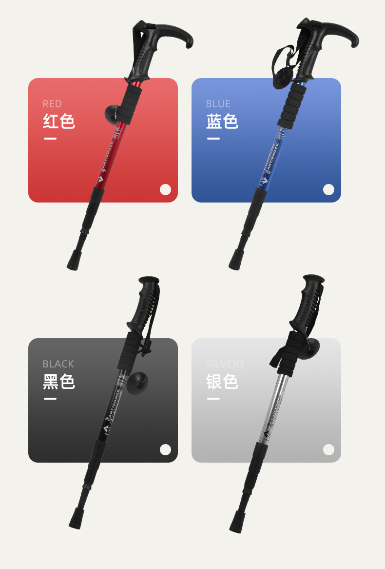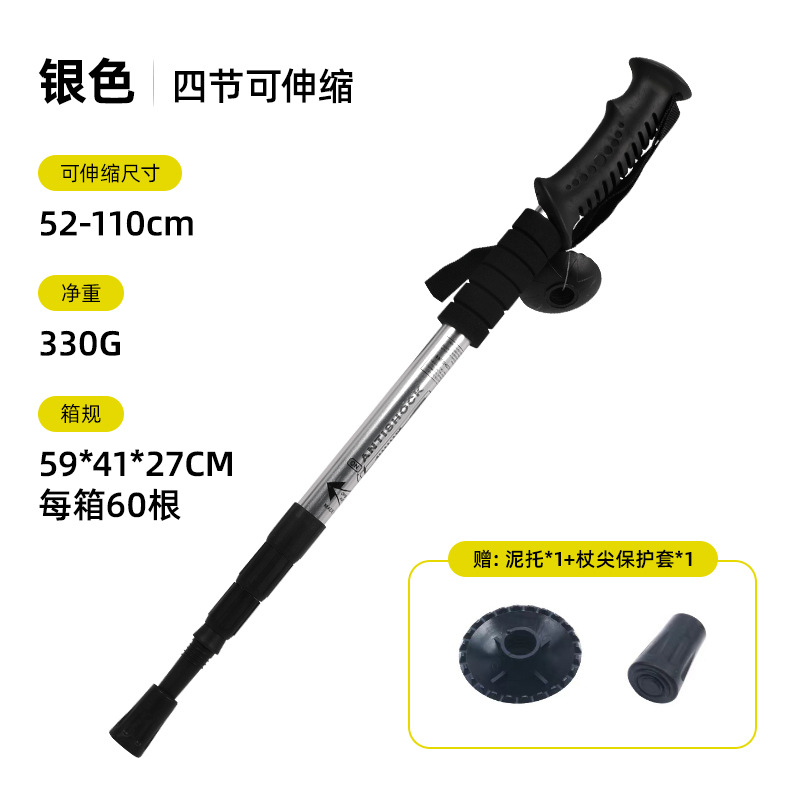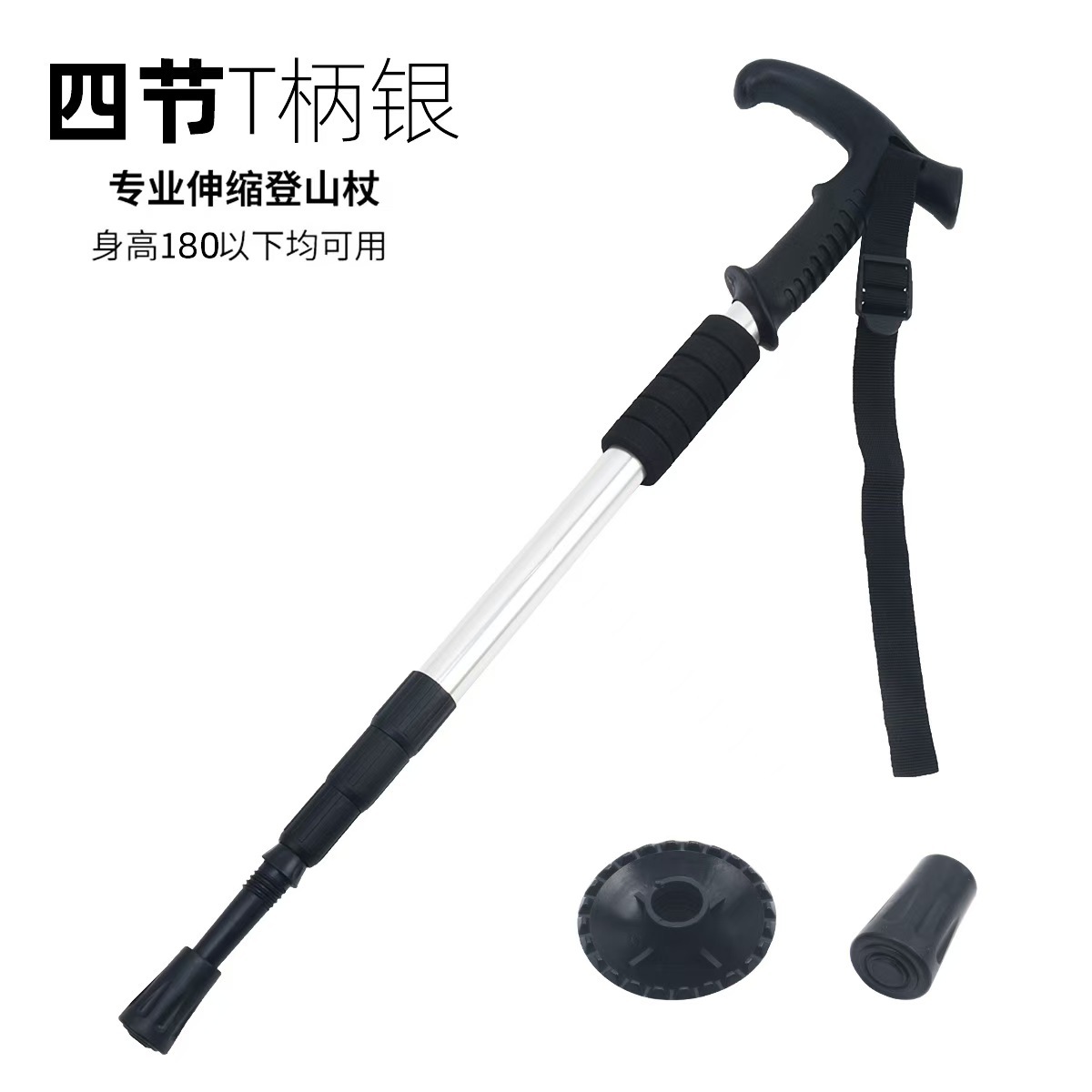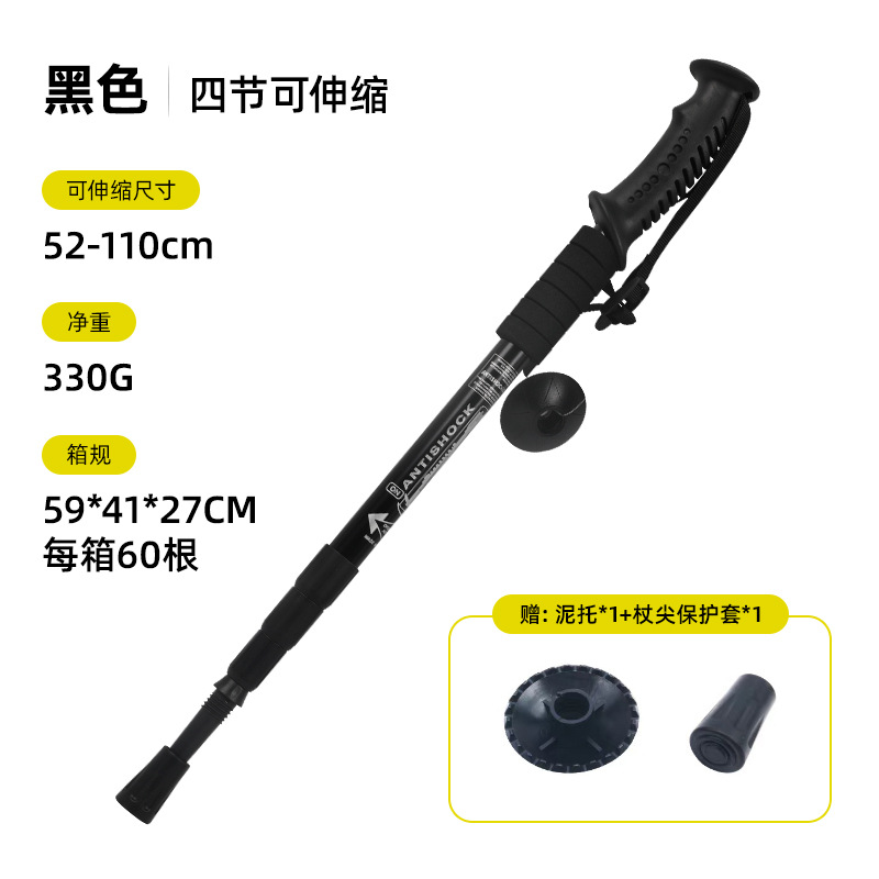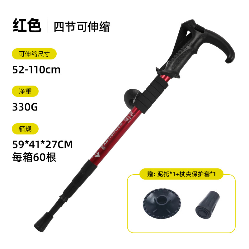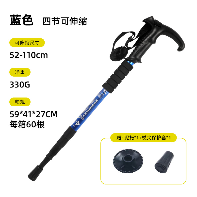 야외 하이킹 스틱 알루미늄 합금 T 자형 스트레이트 핸들 4 섹션 텔레스코픽 폴딩 워킹 스틱 초경량 하이킹 마운틴 클라이밍 미끄럼 방지 워킹 스틱