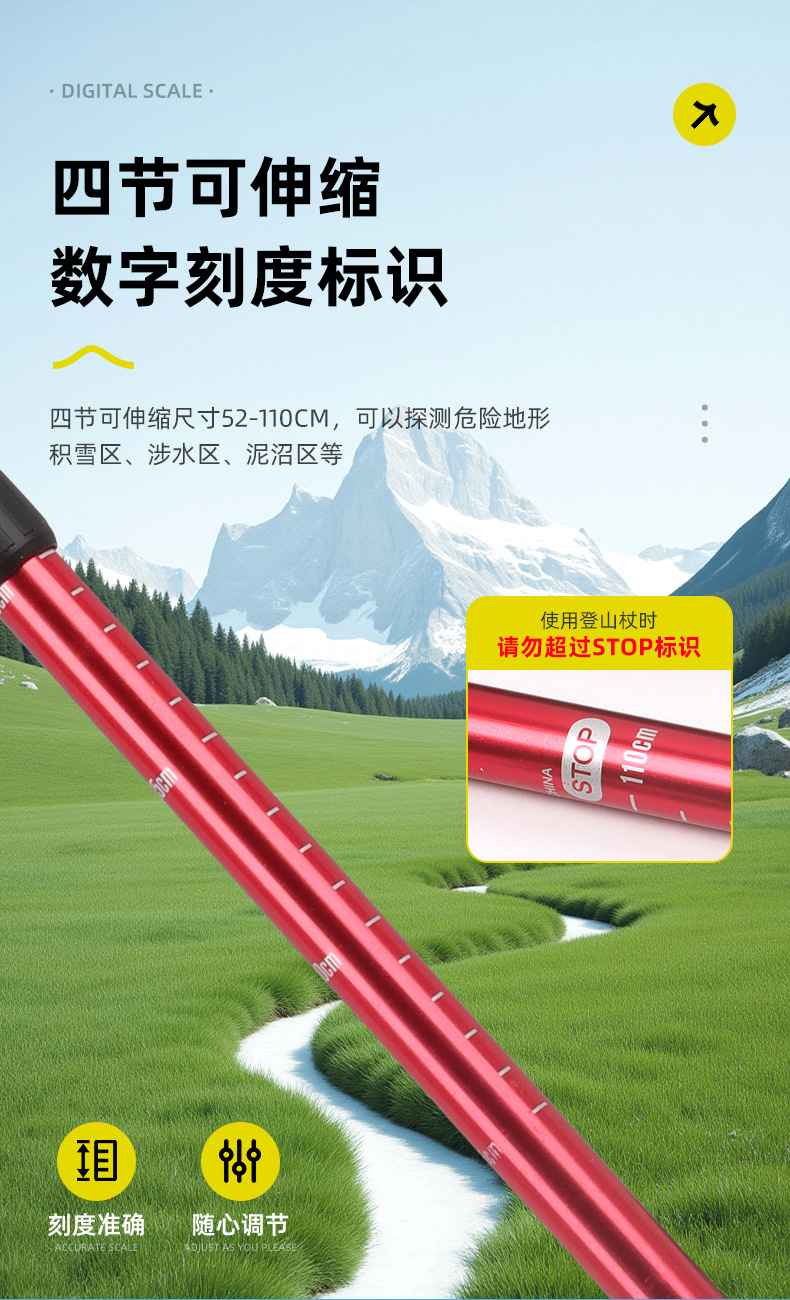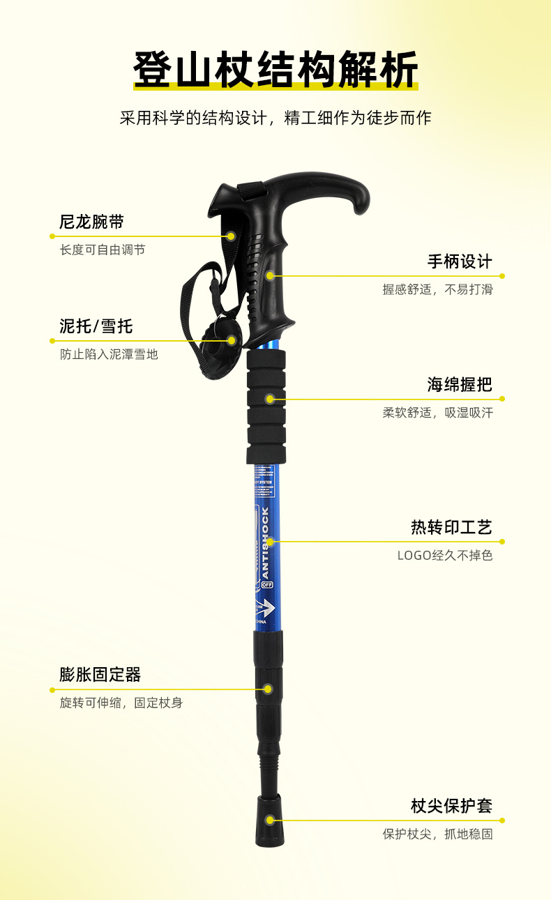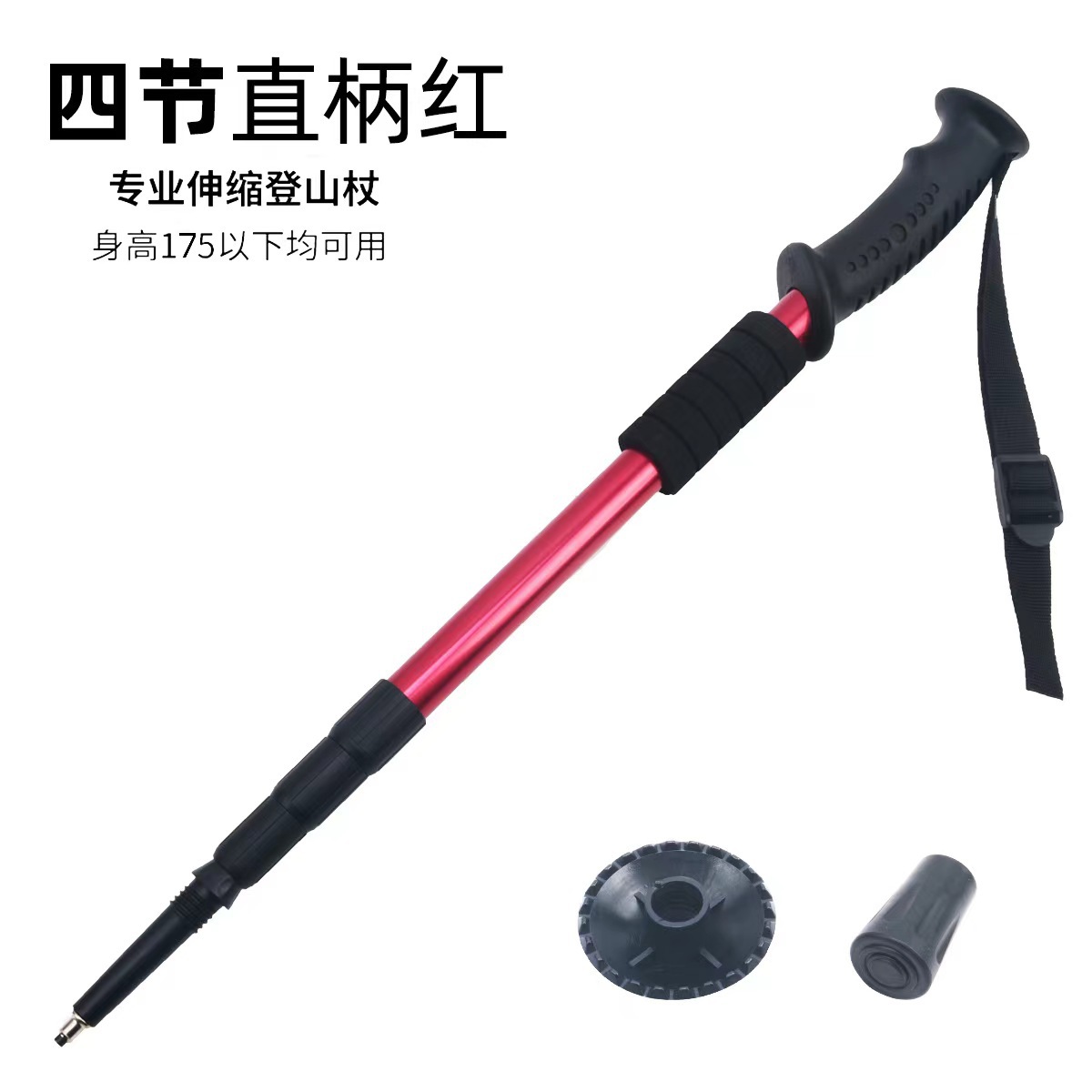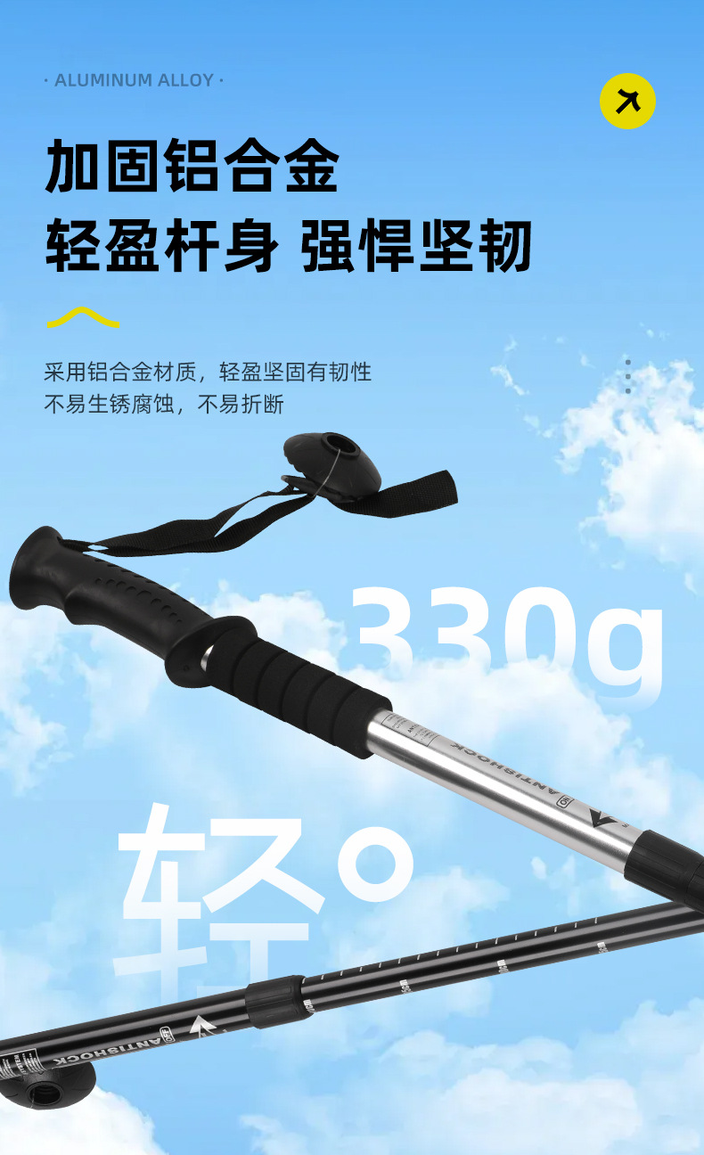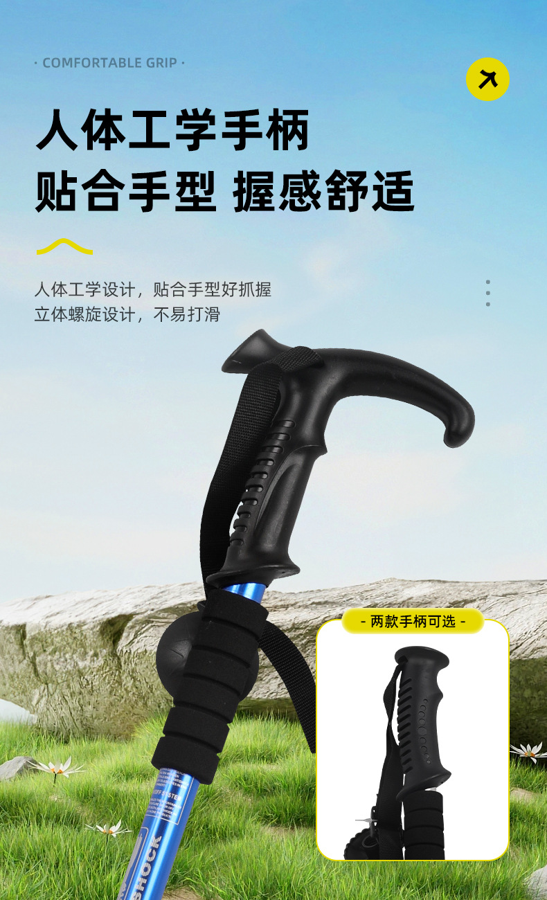 야외 하이킹 스틱 알루미늄 합금 T 자형 스트레이트 핸들 4 섹션 텔레스코픽 폴딩 워킹 스틱 초경량 하이킹 마운틴 클라이밍 미끄럼 방지 워킹 스틱