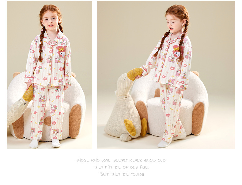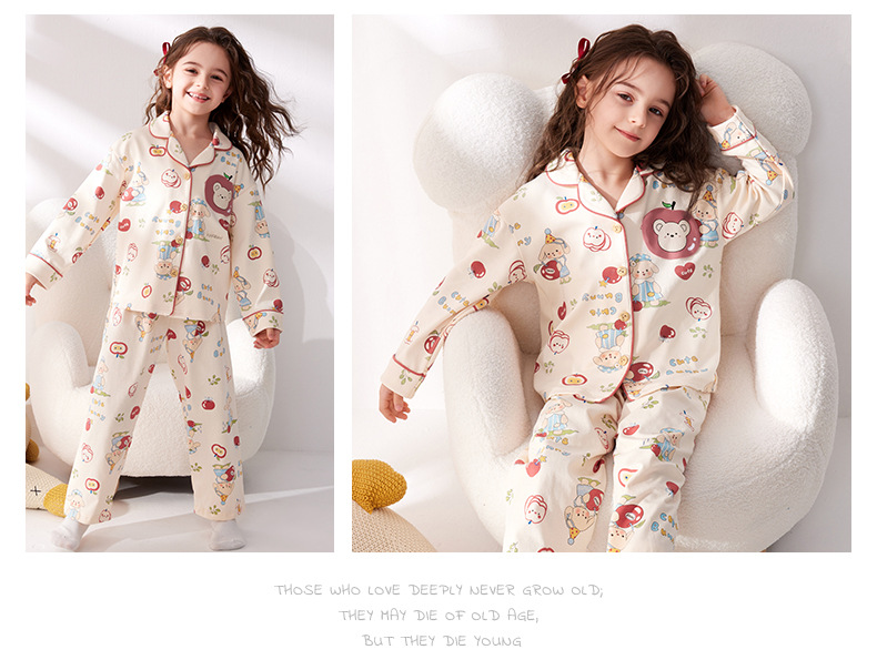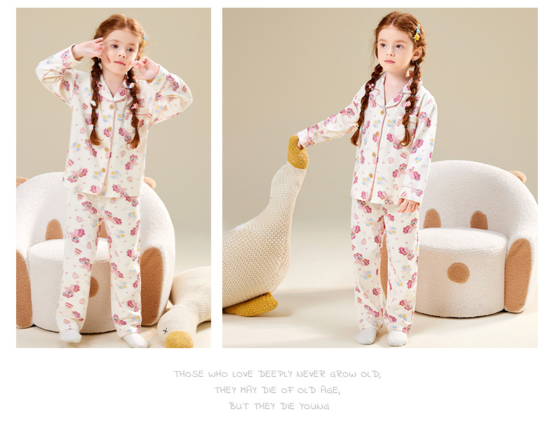 2025 새로운 어린이 잠옷 소녀 클래스 면화 긴 소매 봄과 가을 소녀의 만화 면화 홈 의류 세트