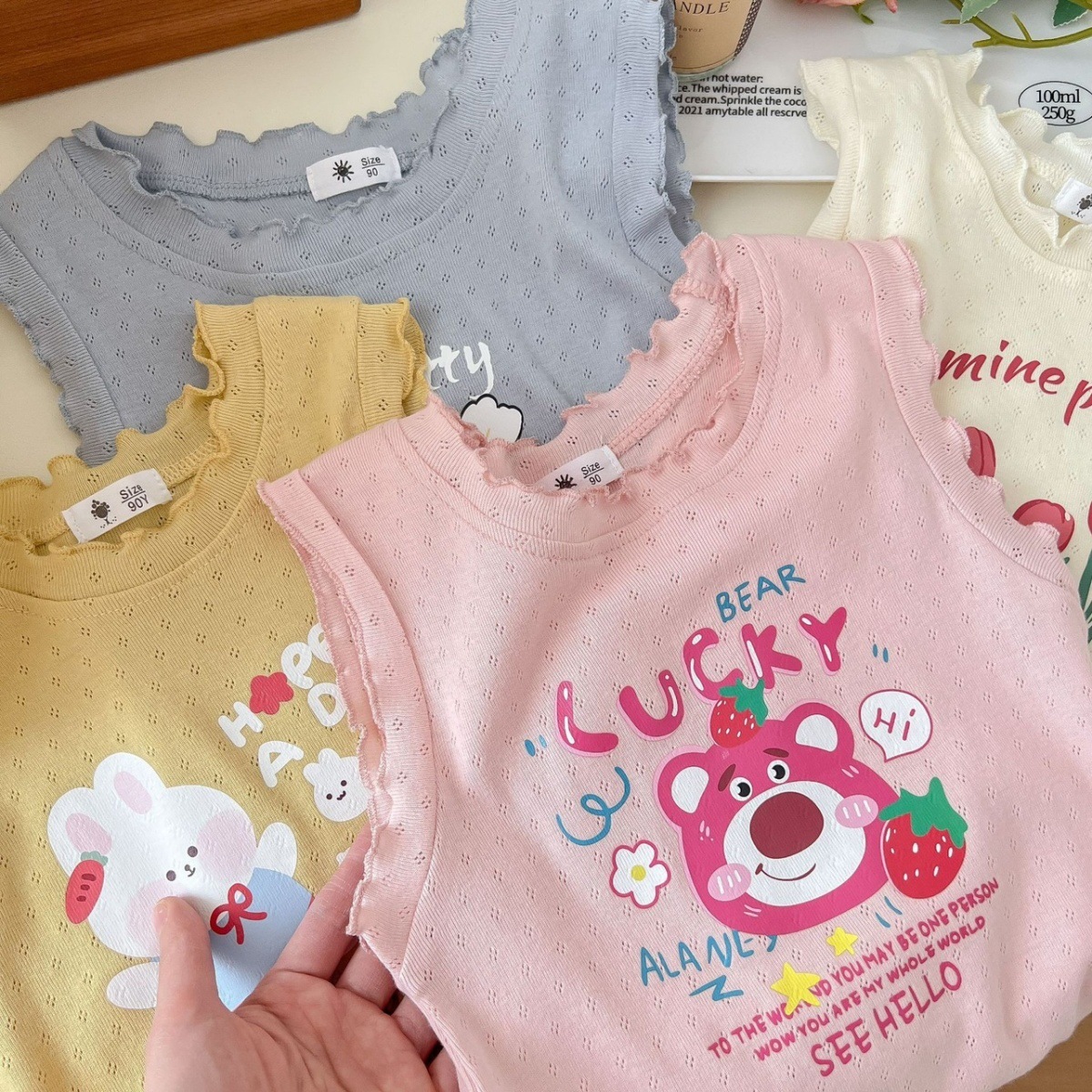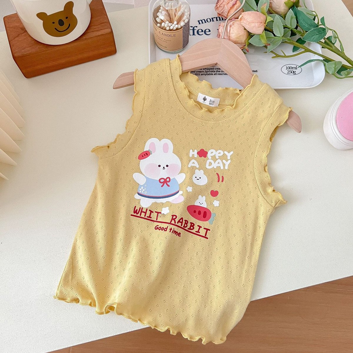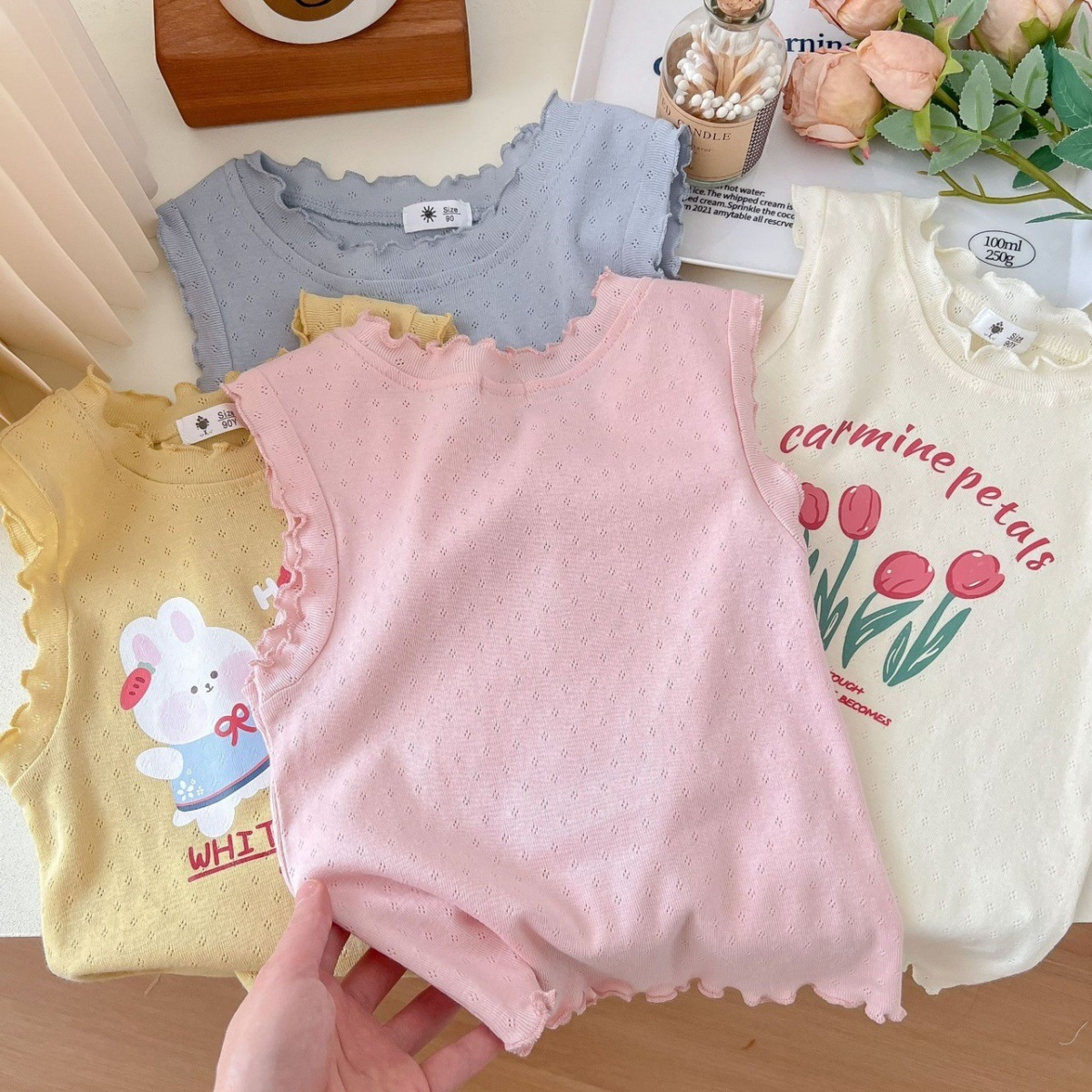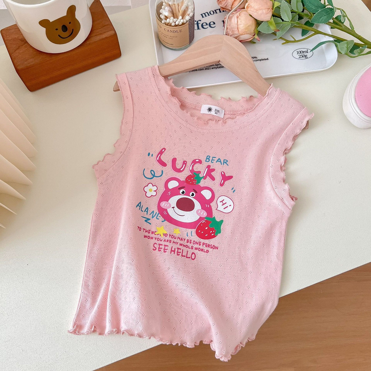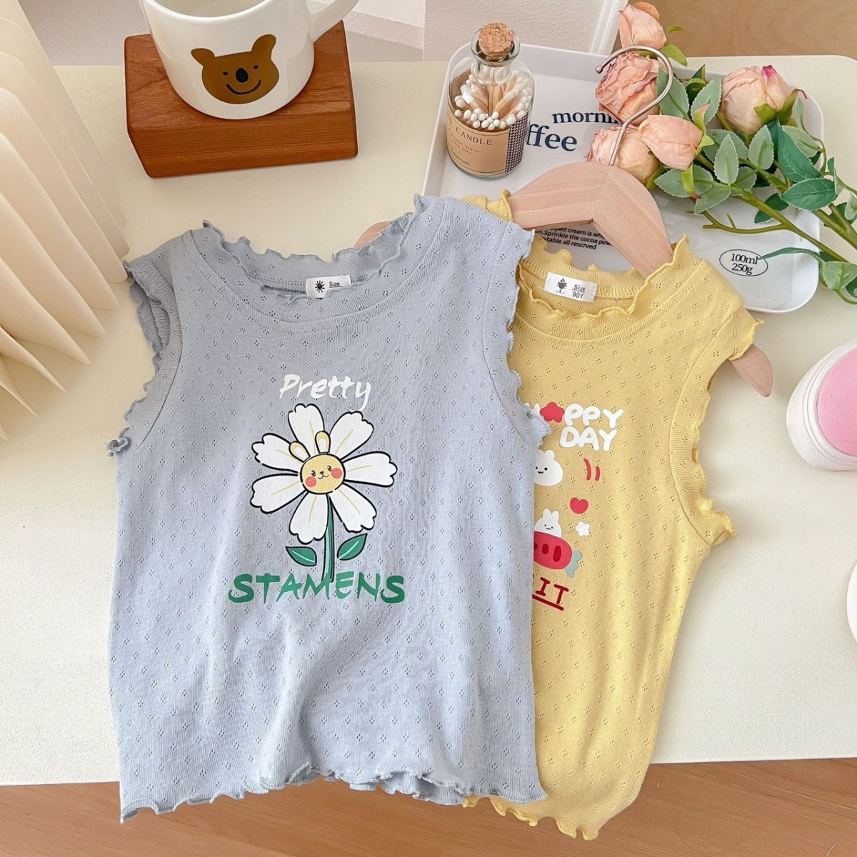여름 새로운 25 여름 어린이 레이스 귀여운 작은 조끼 소녀 아기 인쇄 만화 좋은 면 민소매 조끼스토어 가기