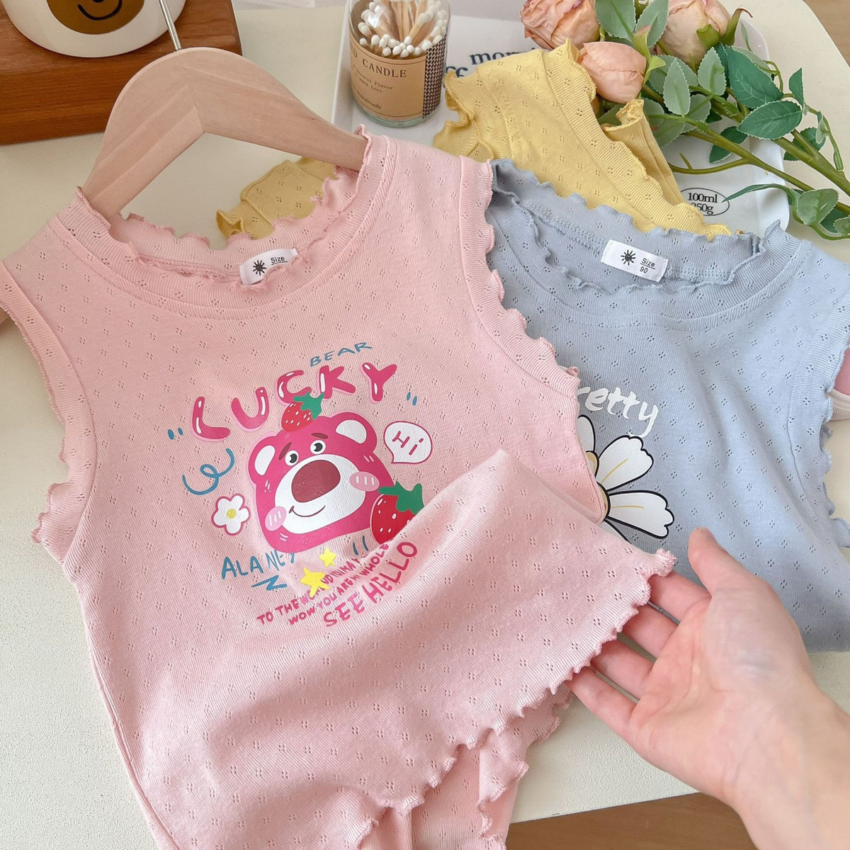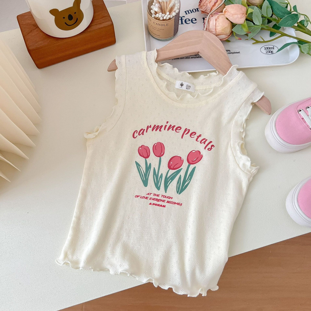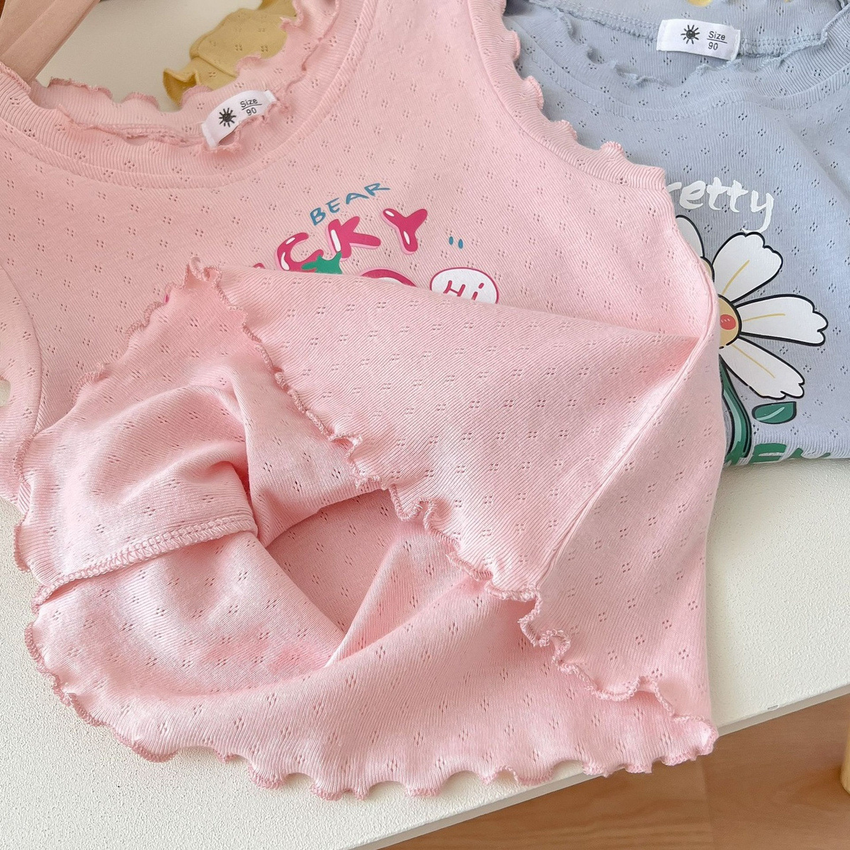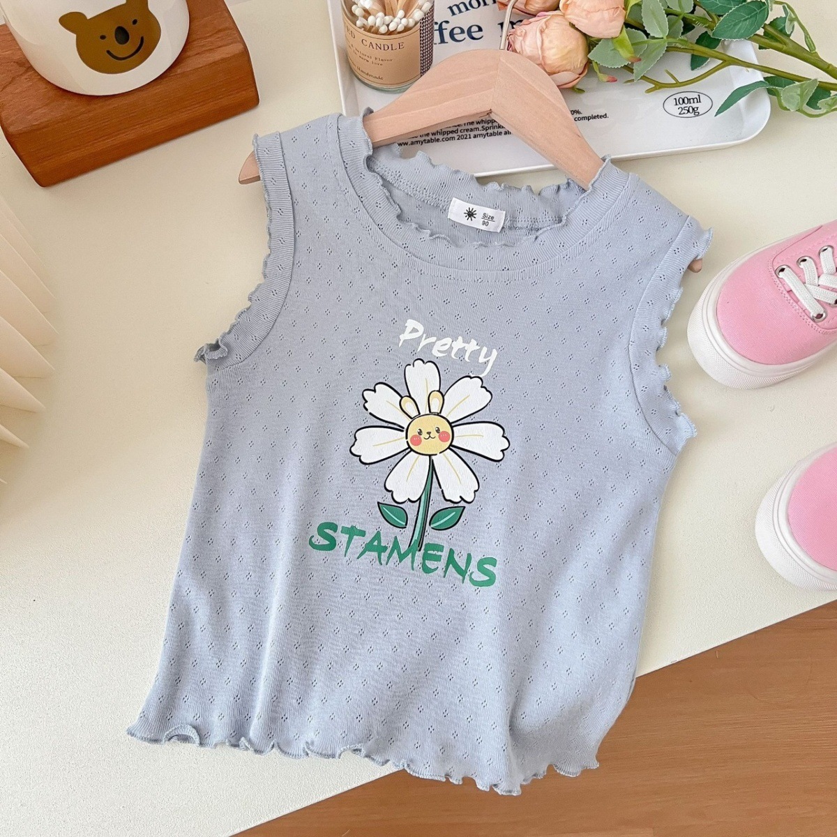 여름 새로운 25 여름 어린이 레이스 귀여운 작은 조끼 소녀 아기 인쇄 만화 좋은 면 민소매 조끼스토어 가기