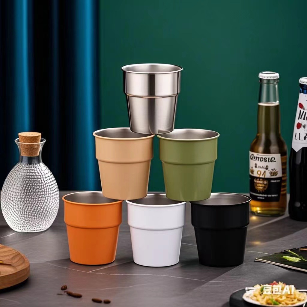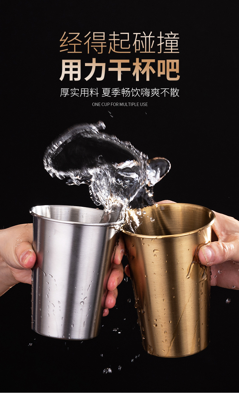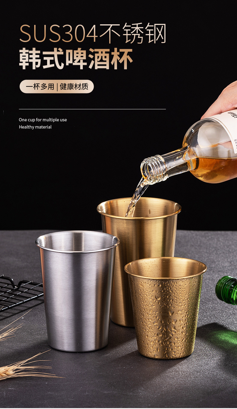 304 스테인레스 스틸 단일 레이어 골드 실버 맥주 컵 상업용 워터 컵 범용 차가운 음료 컵 야외 쌓을 수있는 컵