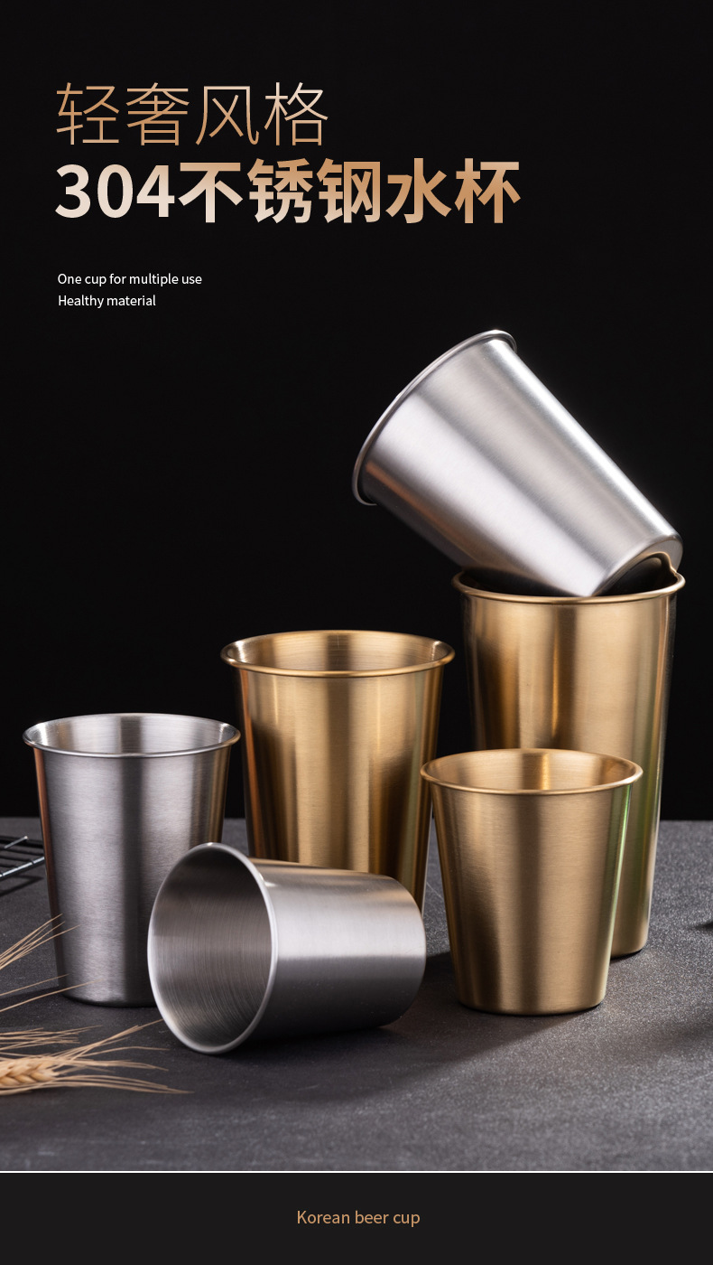 304 스테인레스 스틸 단일 레이어 골드 실버 맥주 컵 상업용 워터 컵 범용 차가운 음료 컵 야외 쌓을 수있는 컵스토어 가기