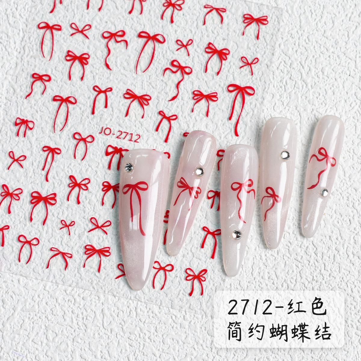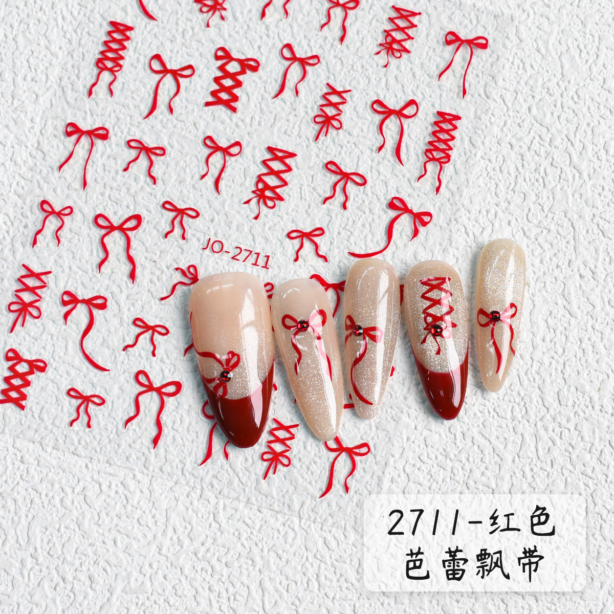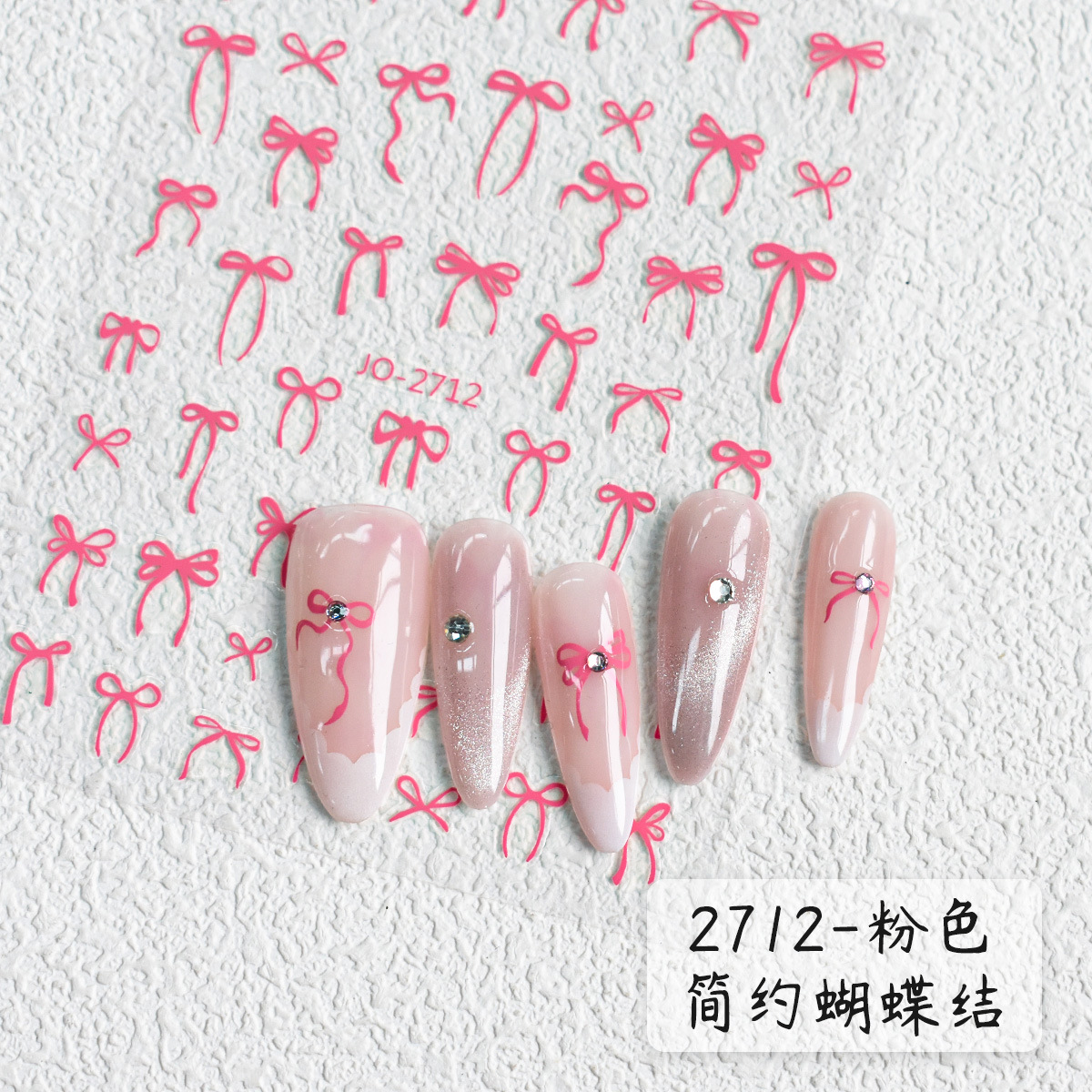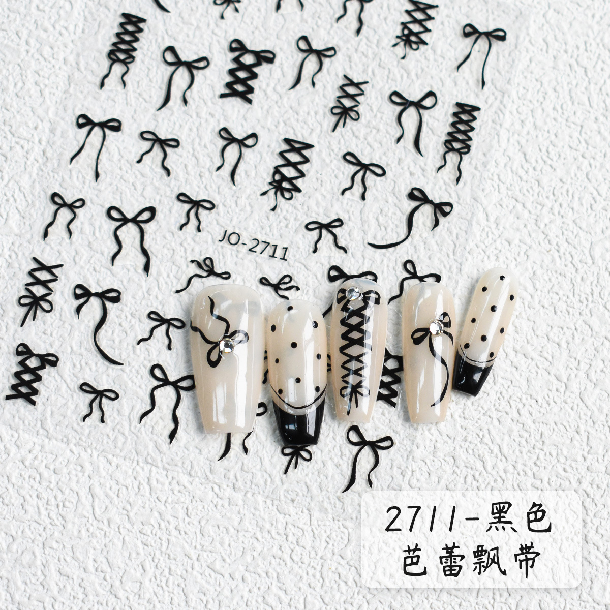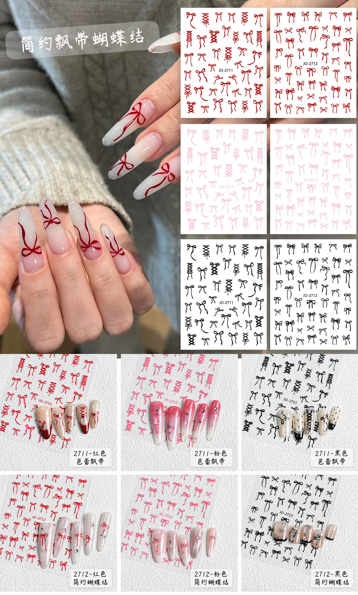 국경 간 뉴 보우 네일 아트 스티커 흑백 핑크 발레 리본 활 다시 접착제 착용 네일 스티커스토어 가기
