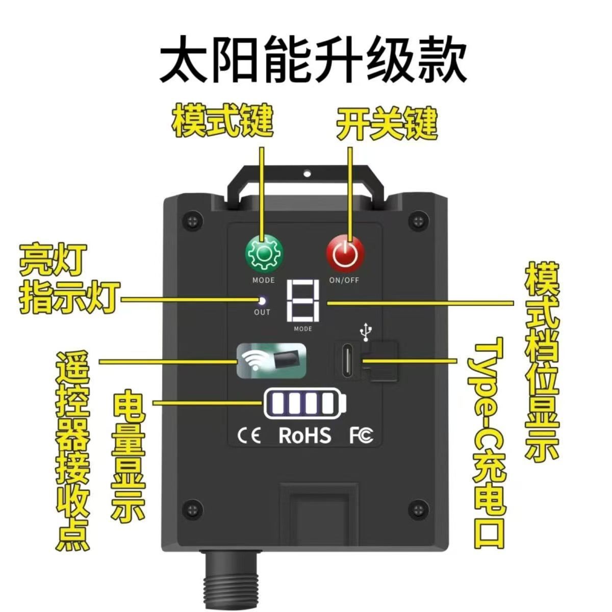 • 5.2m개의 조명 - 분리형 리모컨 태양광 + USB 충전 8개 플래시