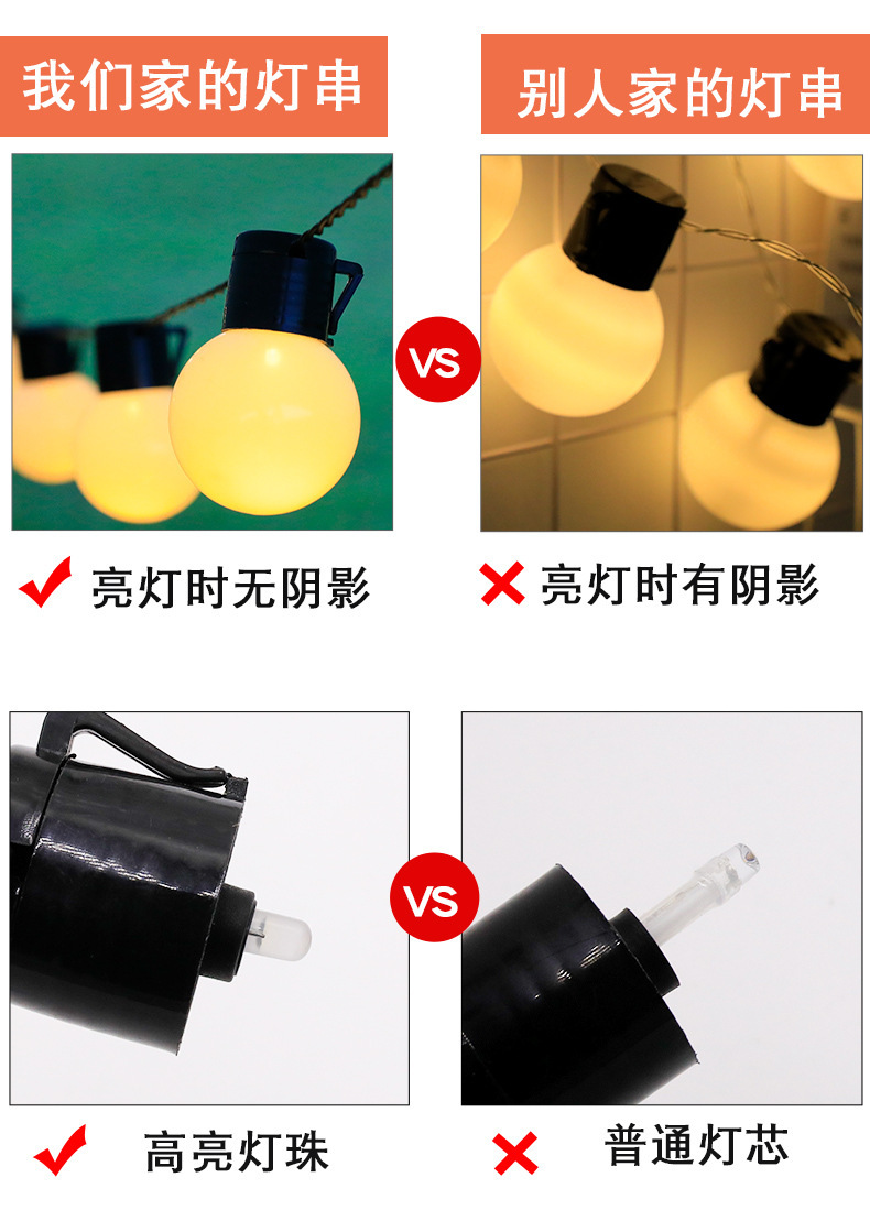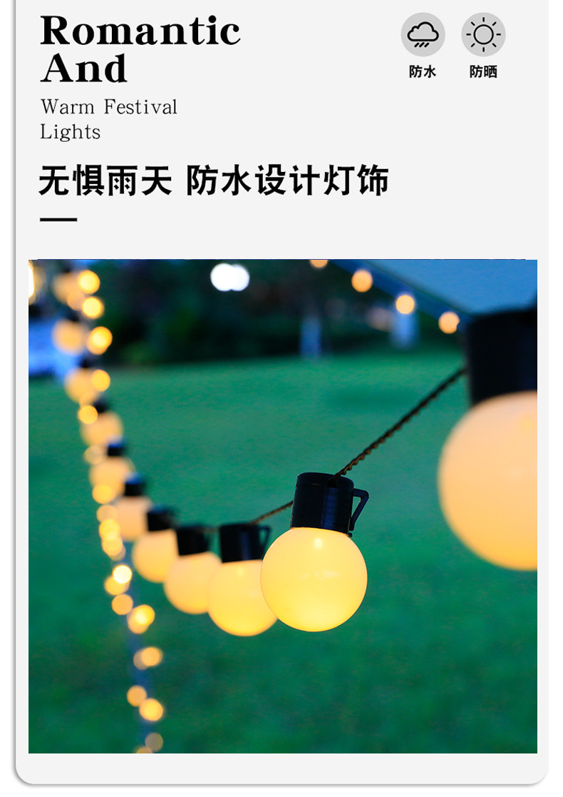 Led 전구 빛 끈 야외 캠핑 캐노피 태양 빛 문자열 결혼식 밤 시장 마구간 장식 분위기 빛