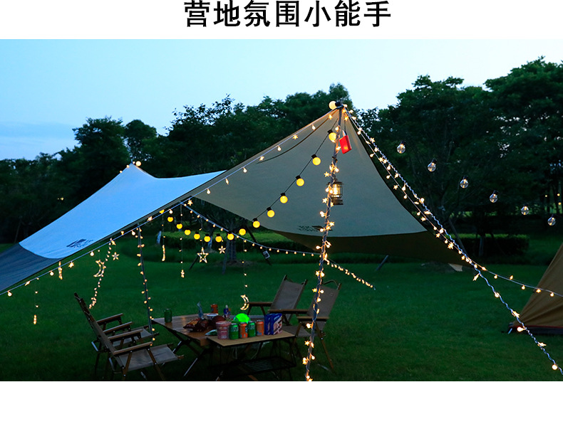 Led 전구 빛 끈 야외 캠핑 캐노피 태양 빛 문자열 결혼식 밤 시장 마구간 장식 분위기 빛스토어 가기