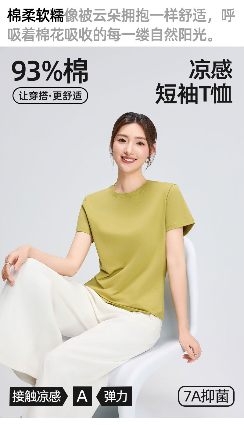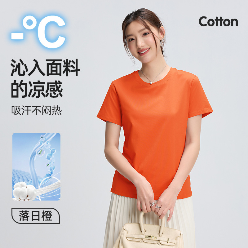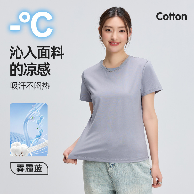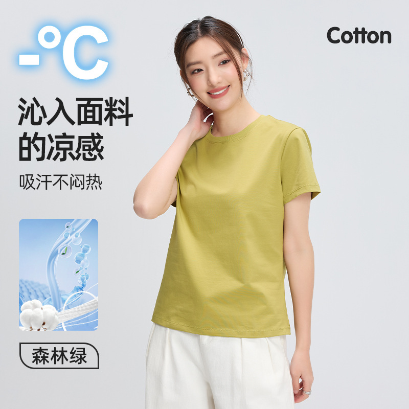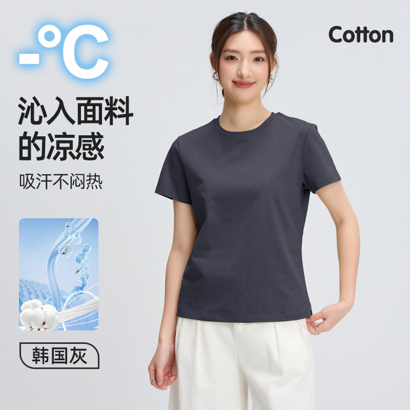 [7A 시원한 항균면] 솔리드 컬러 코튼 반팔 여성 한식 티셔츠 여름 오른쪽 어깨 시원한 타입 A 보텀 탑스토어 가기