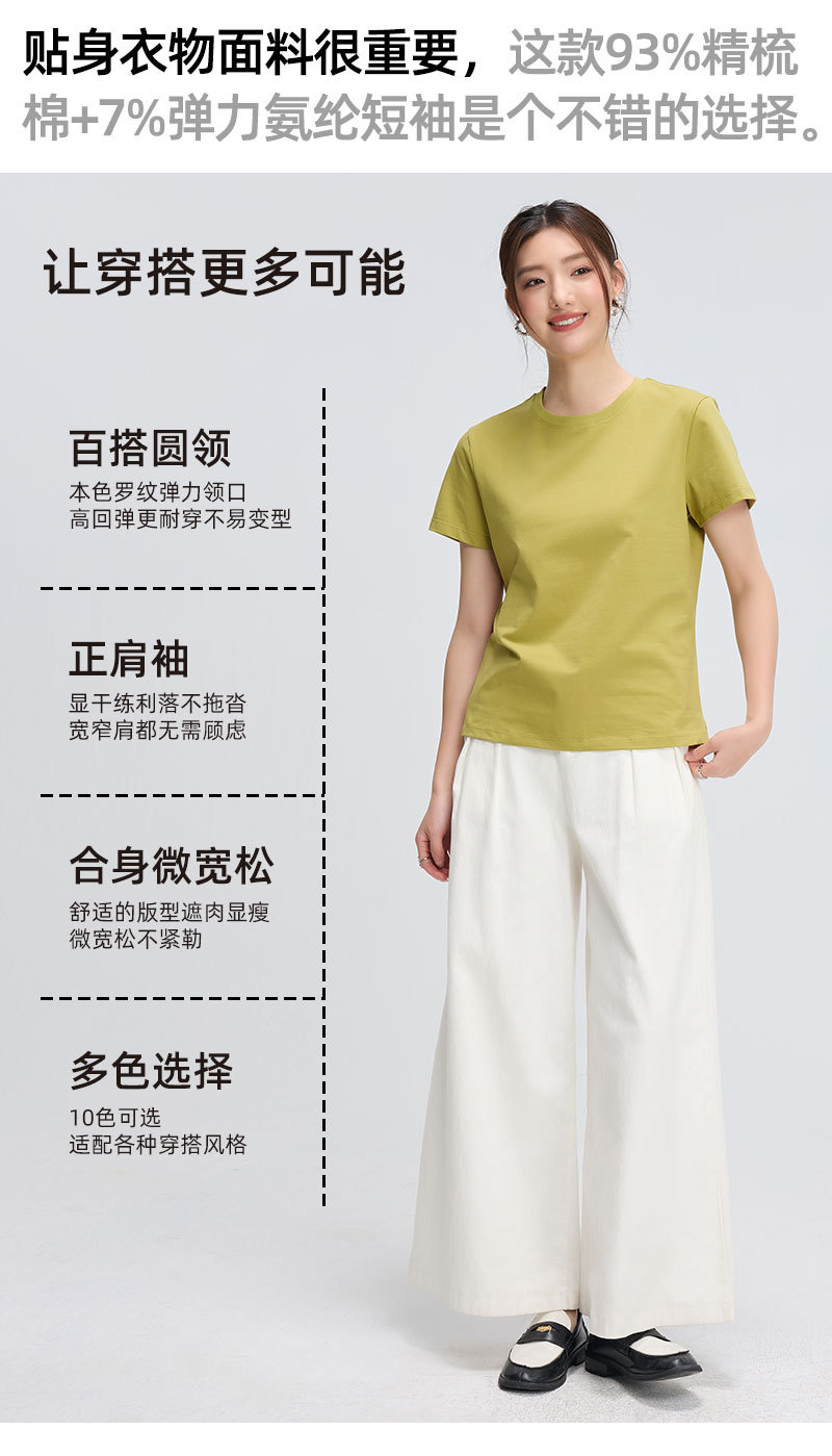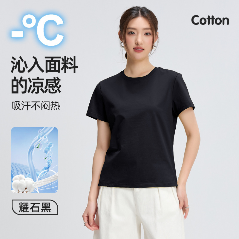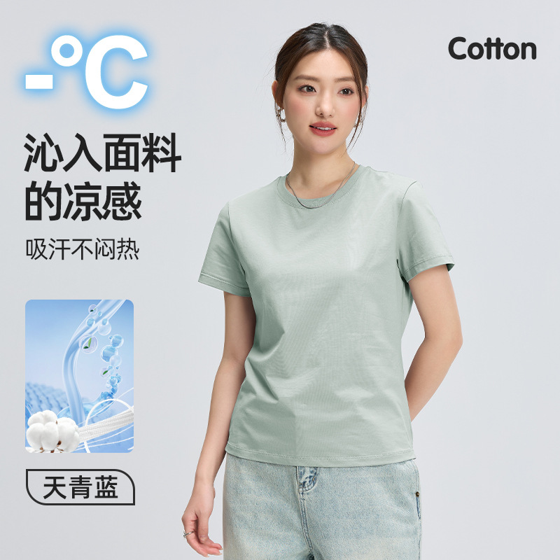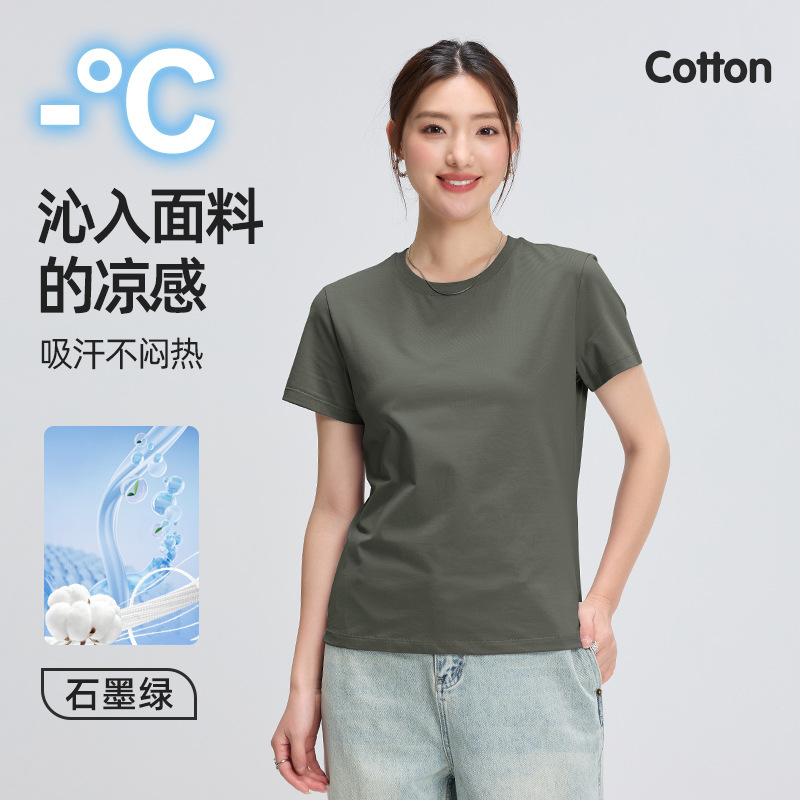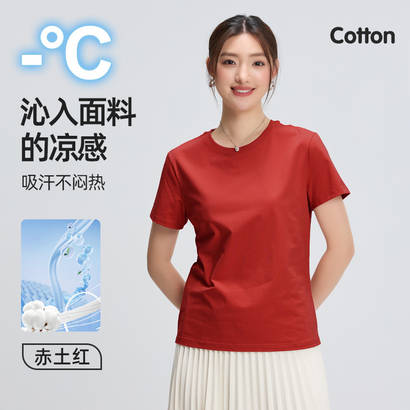 [7A 시원한 항균면] 솔리드 컬러 코튼 반팔 여성 한식 티셔츠 여름 오른쪽 어깨 시원한 타입 A 보텀 탑스토어 가기
