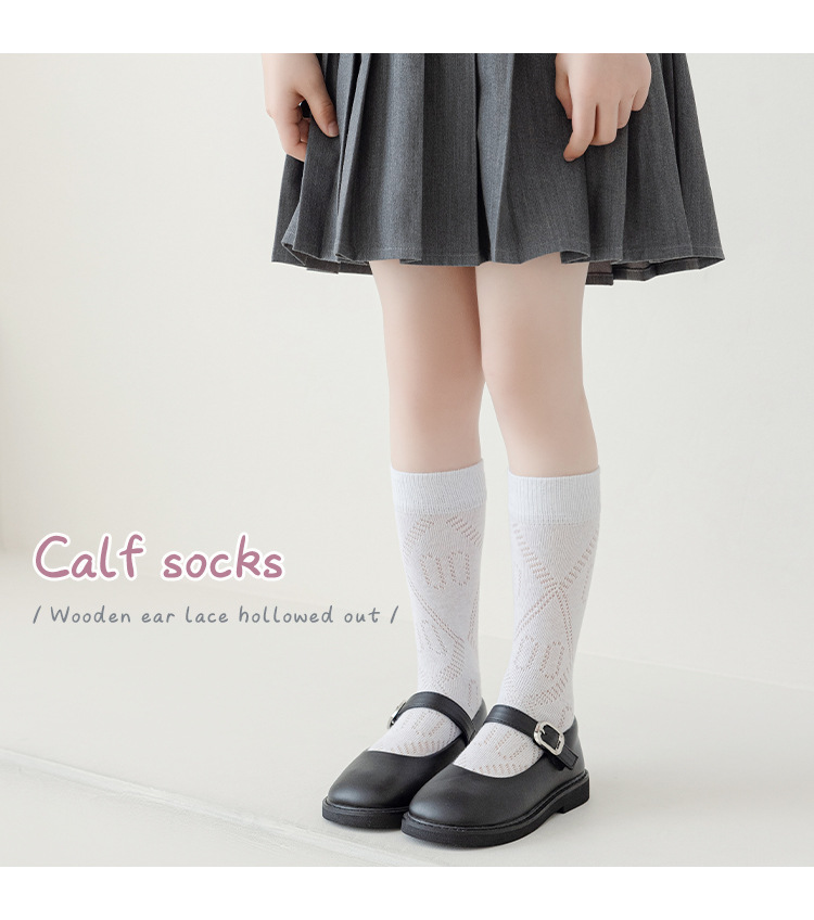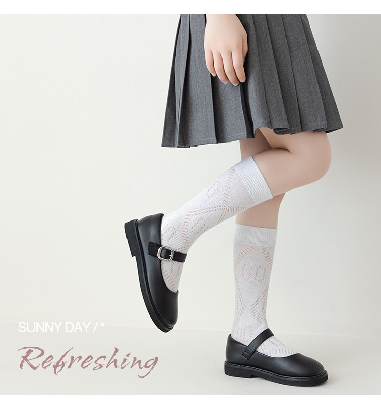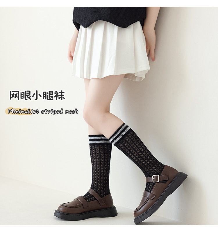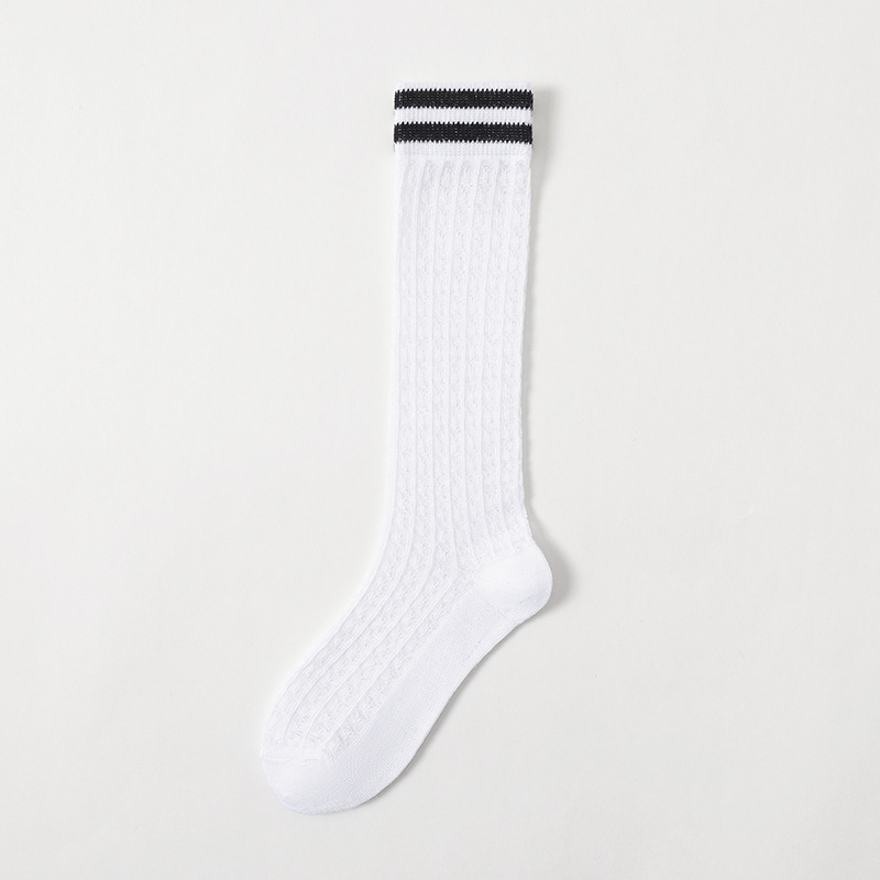 학생 스타킹 여름 얇은 메쉬 양말 두 바 줄무늬 종아리 양말 초박형 파일 양말 어린이 양말 흰색 양말