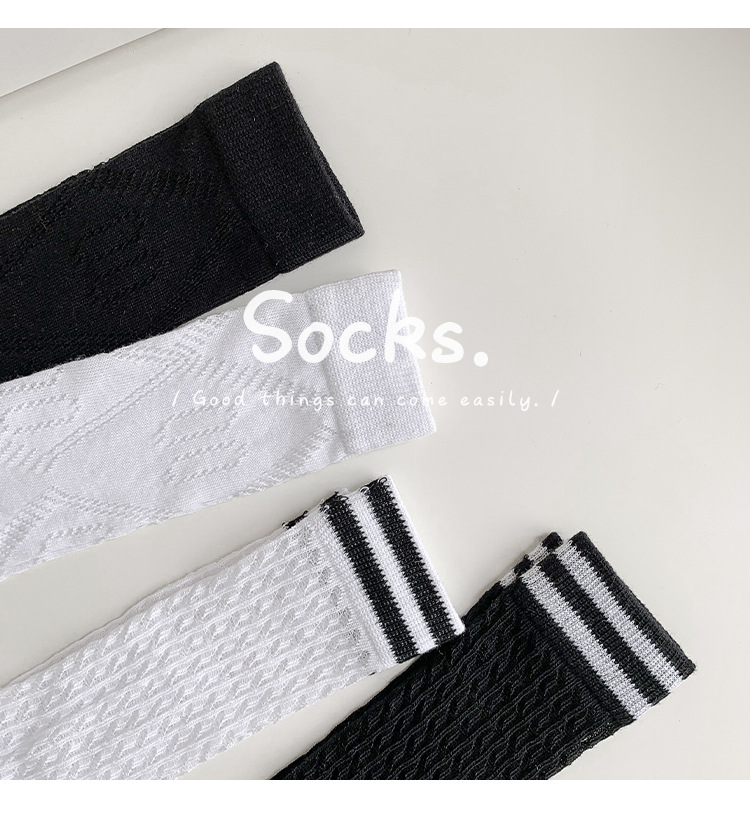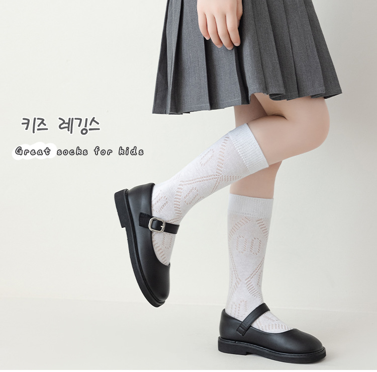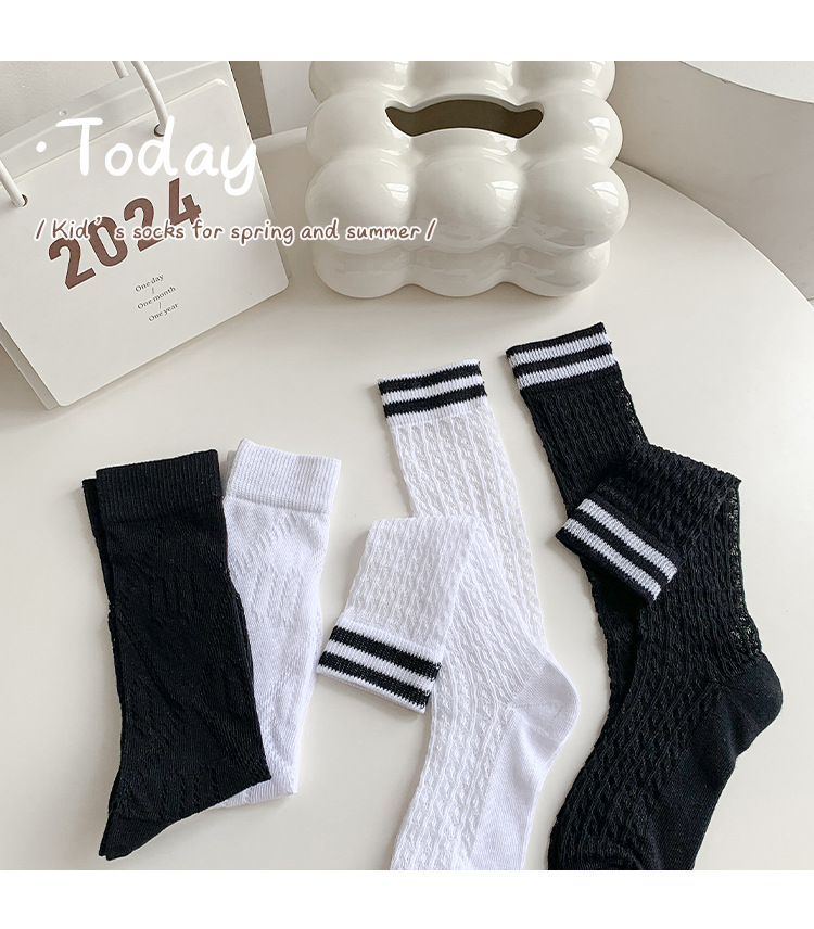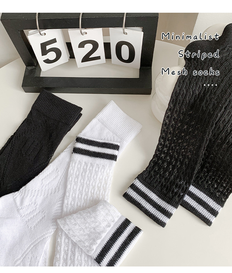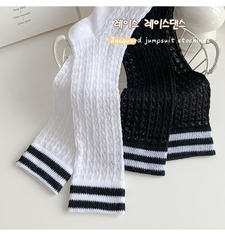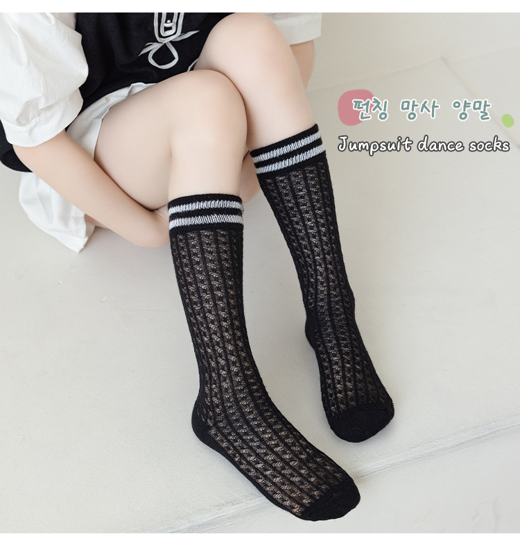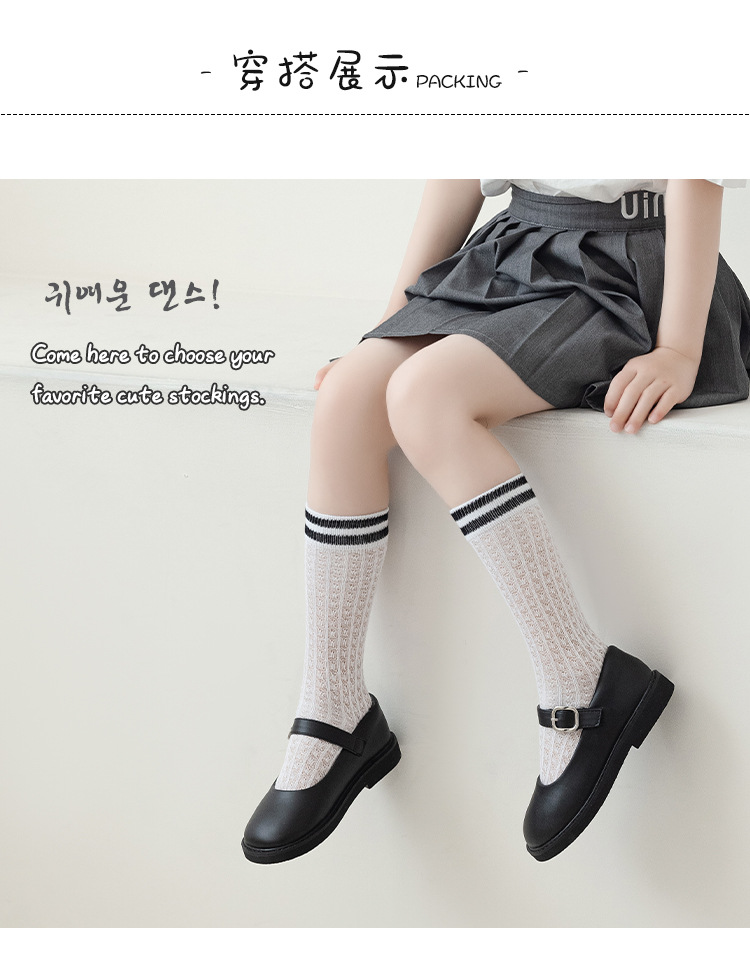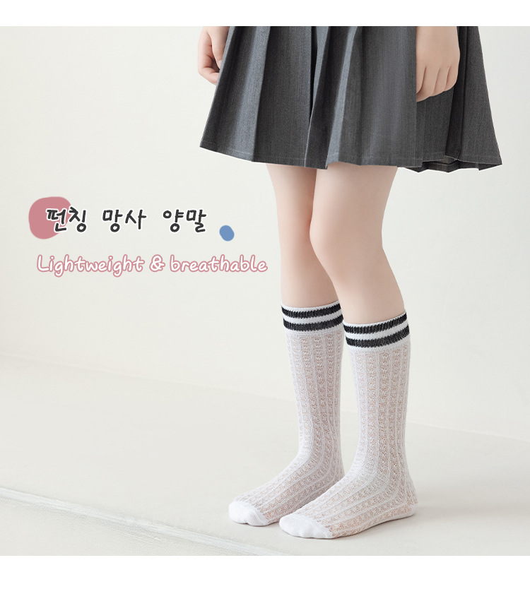 학생 스타킹 여름 얇은 메쉬 양말 두 바 줄무늬 종아리 양말 초박형 파일 양말 어린이 양말 흰색 양말스토어 가기