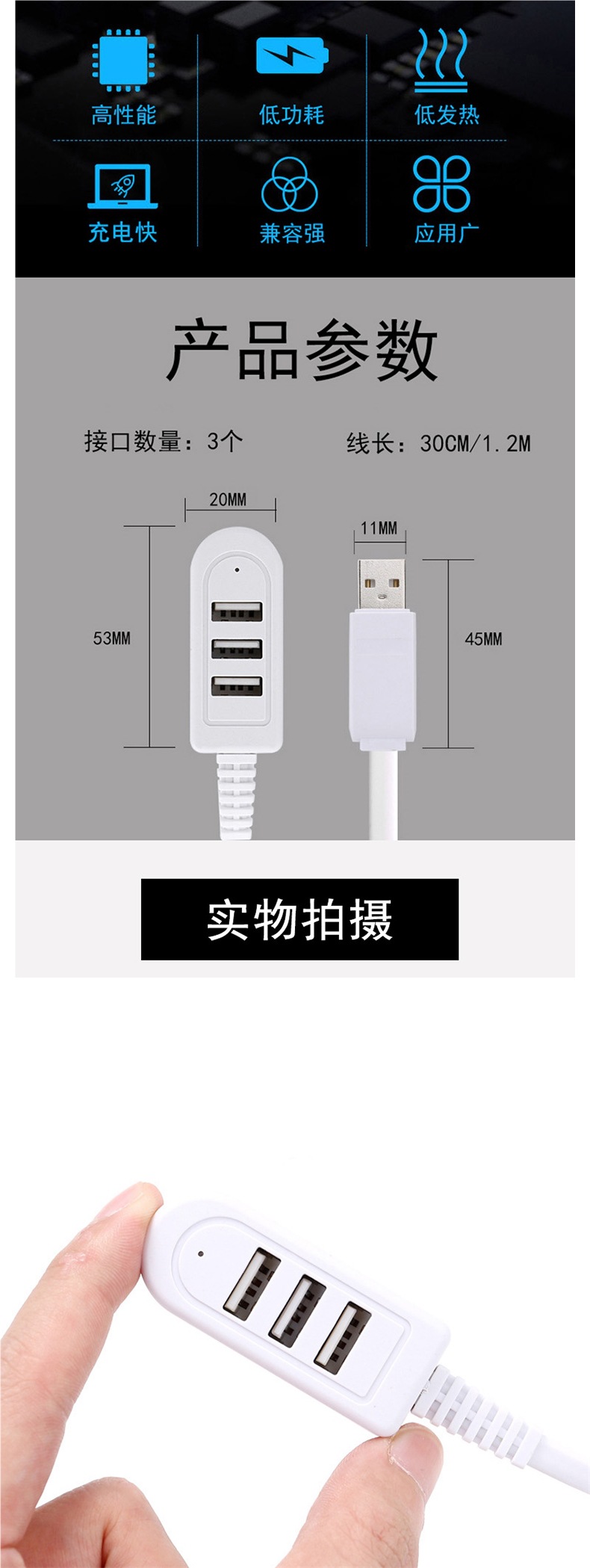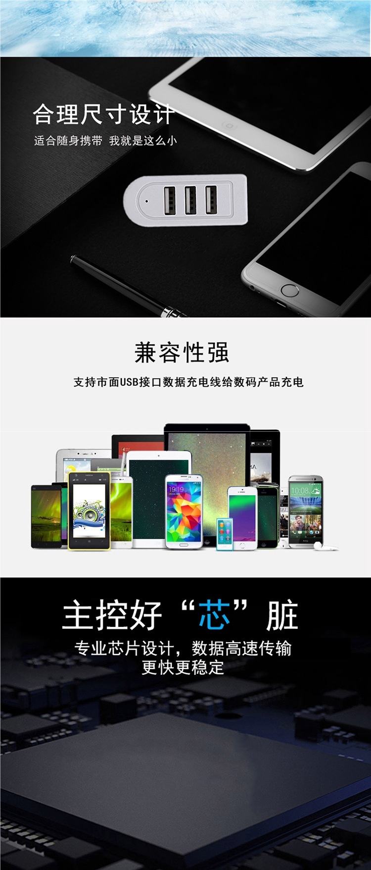 1:3 USB 인터페이스 확장기 차량용 충전기 허브 멀티 포트 변환 1:3 범용