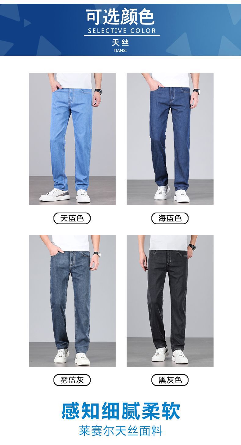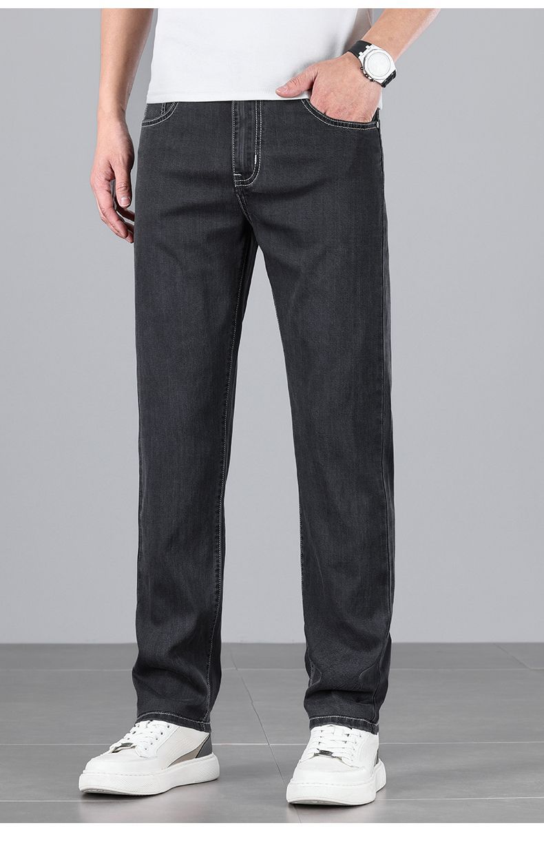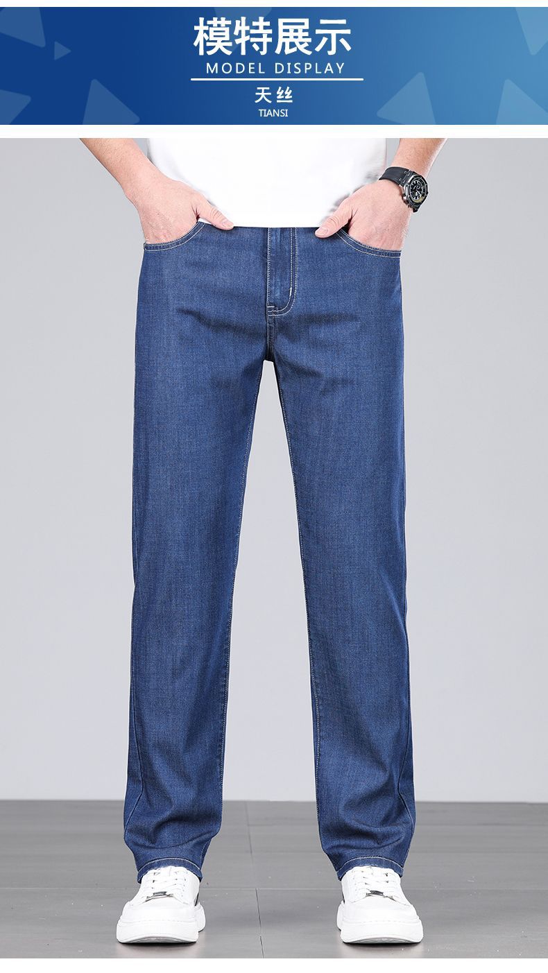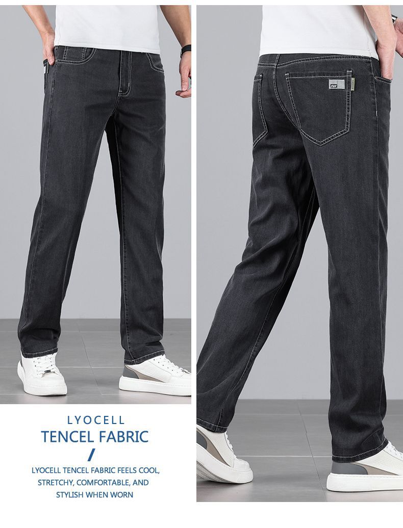 새로운 Lyocell Tens 여름 얇은 청바지 남성 높은 허리 느슨한 스트레이트 스트레치 비즈니스 남성 바지스토어 가기
