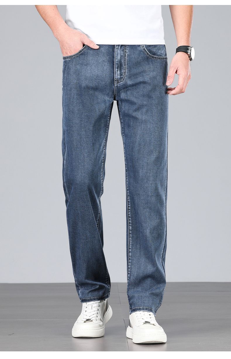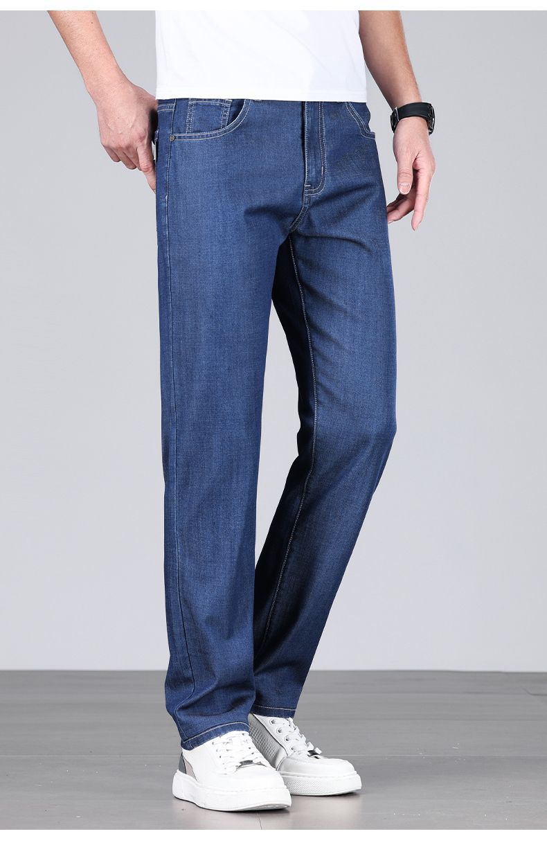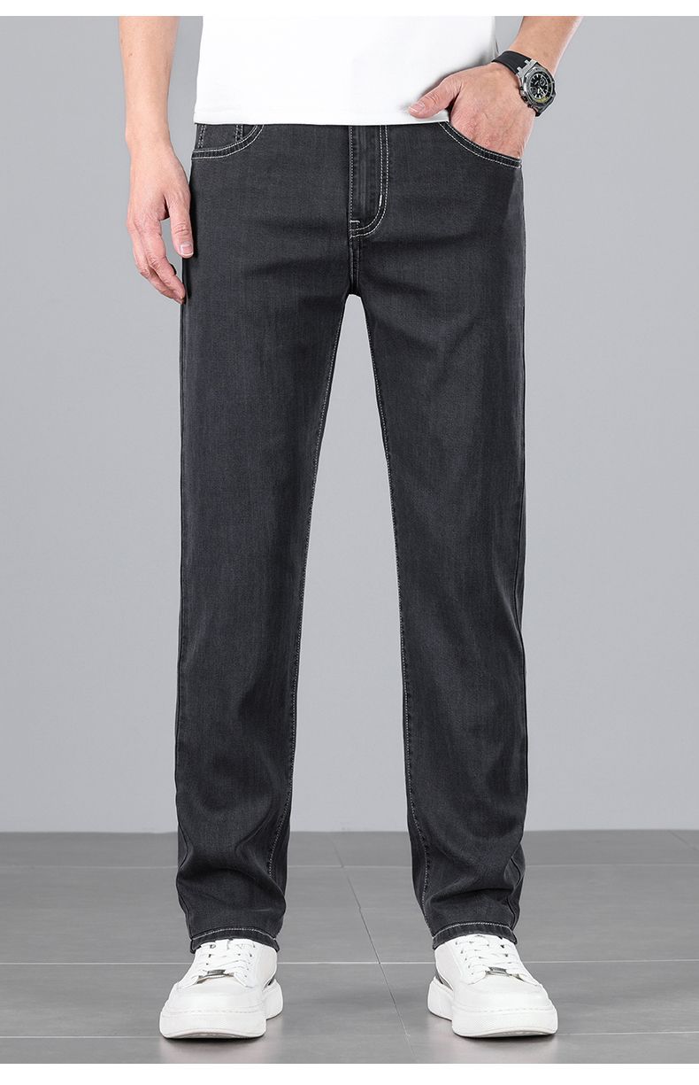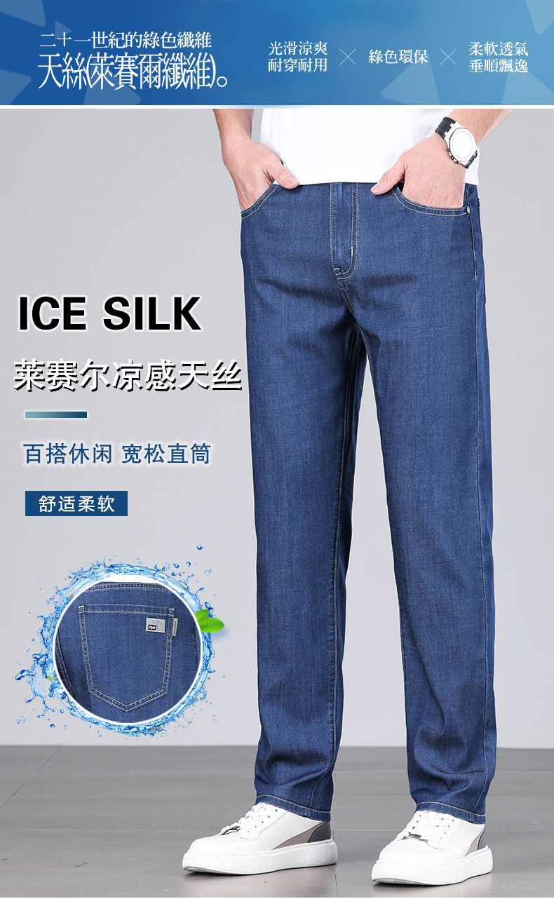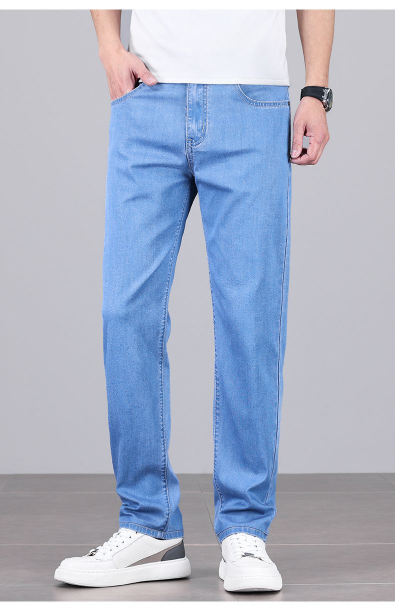 새로운 Lyocell Tens 여름 얇은 청바지 남성 높은 허리 느슨한 스트레이트 스트레치 비즈니스 남성 바지스토어 가기