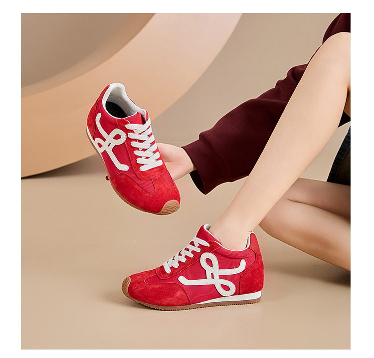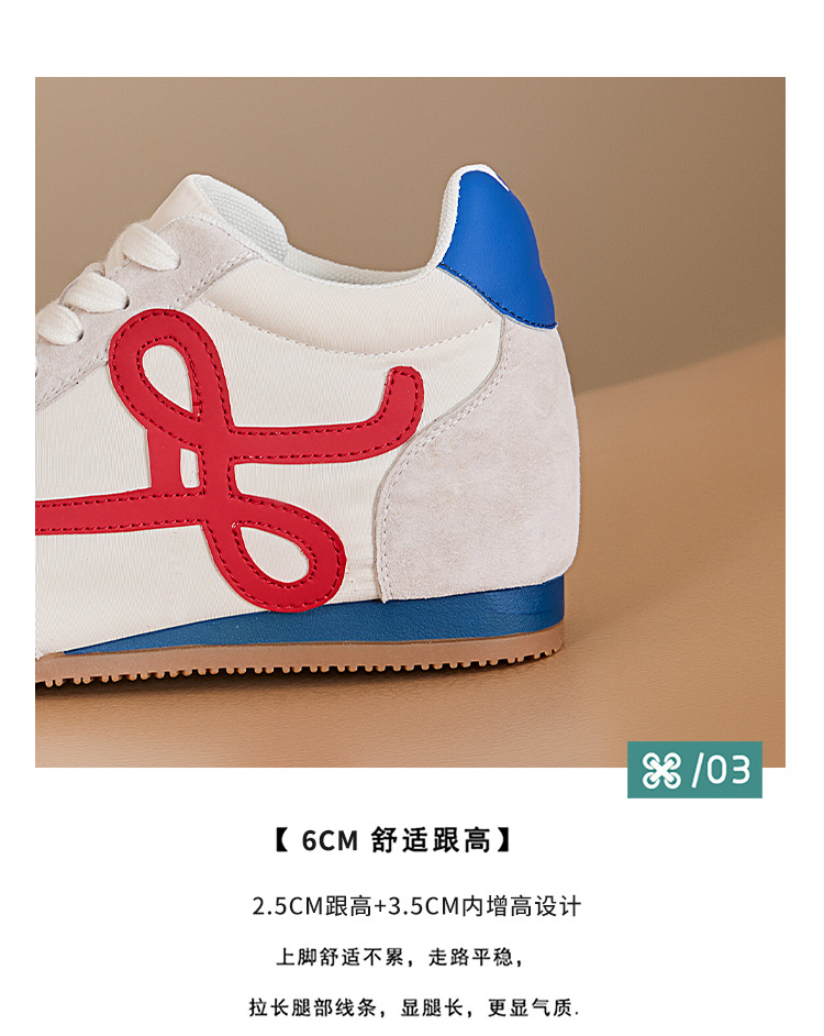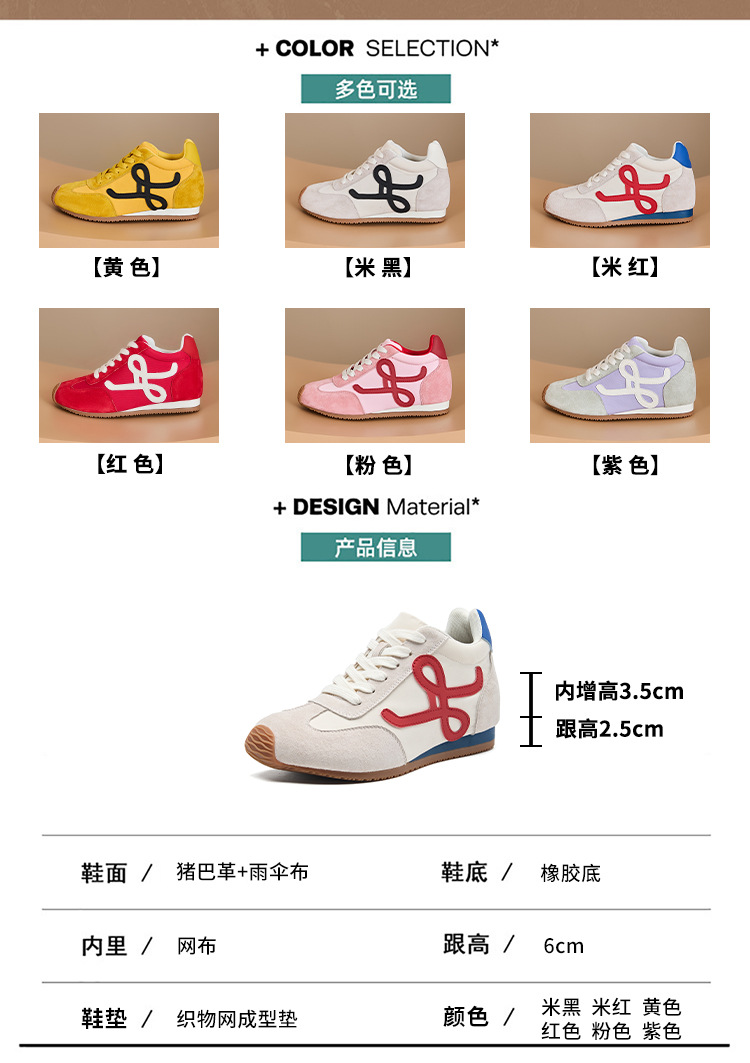 6cm 키높이 여성용 레트로 스타일 독일군 트레이닝화, 봄여름 통기성 좋은 만능 스포츠 캐주얼 아간 슈즈스토어 가기